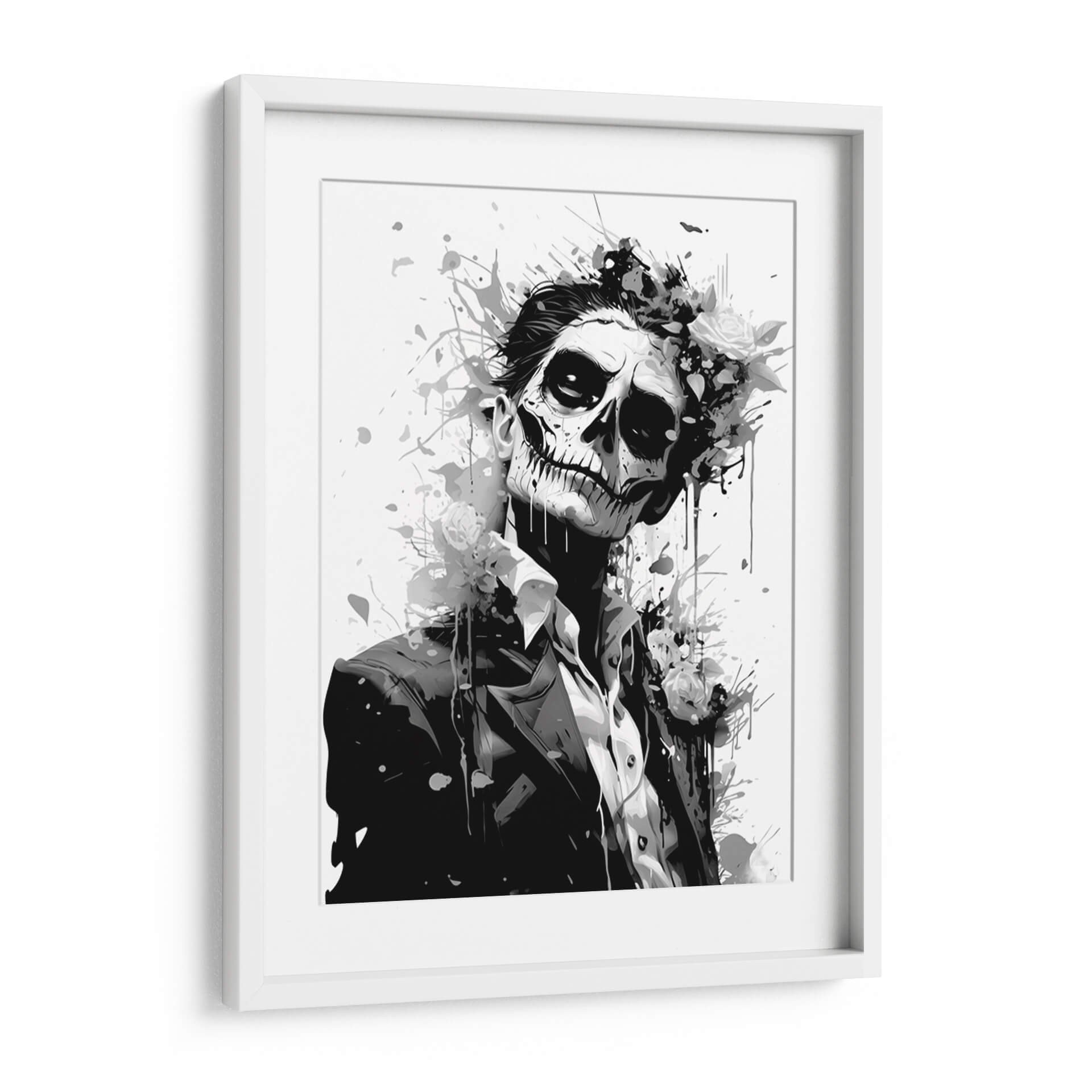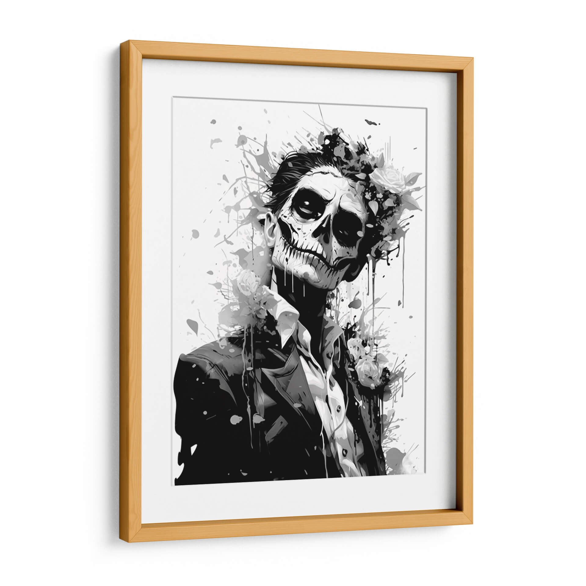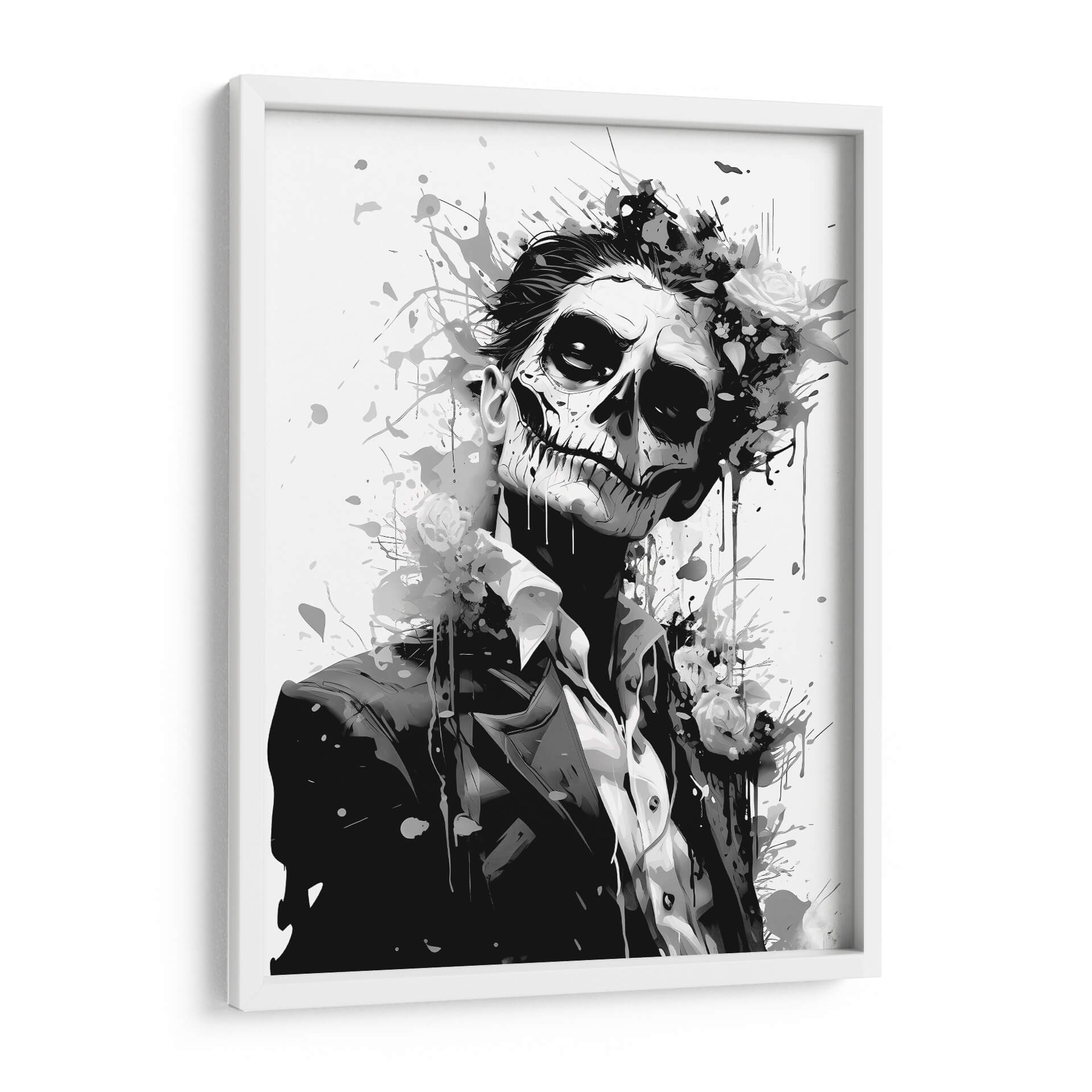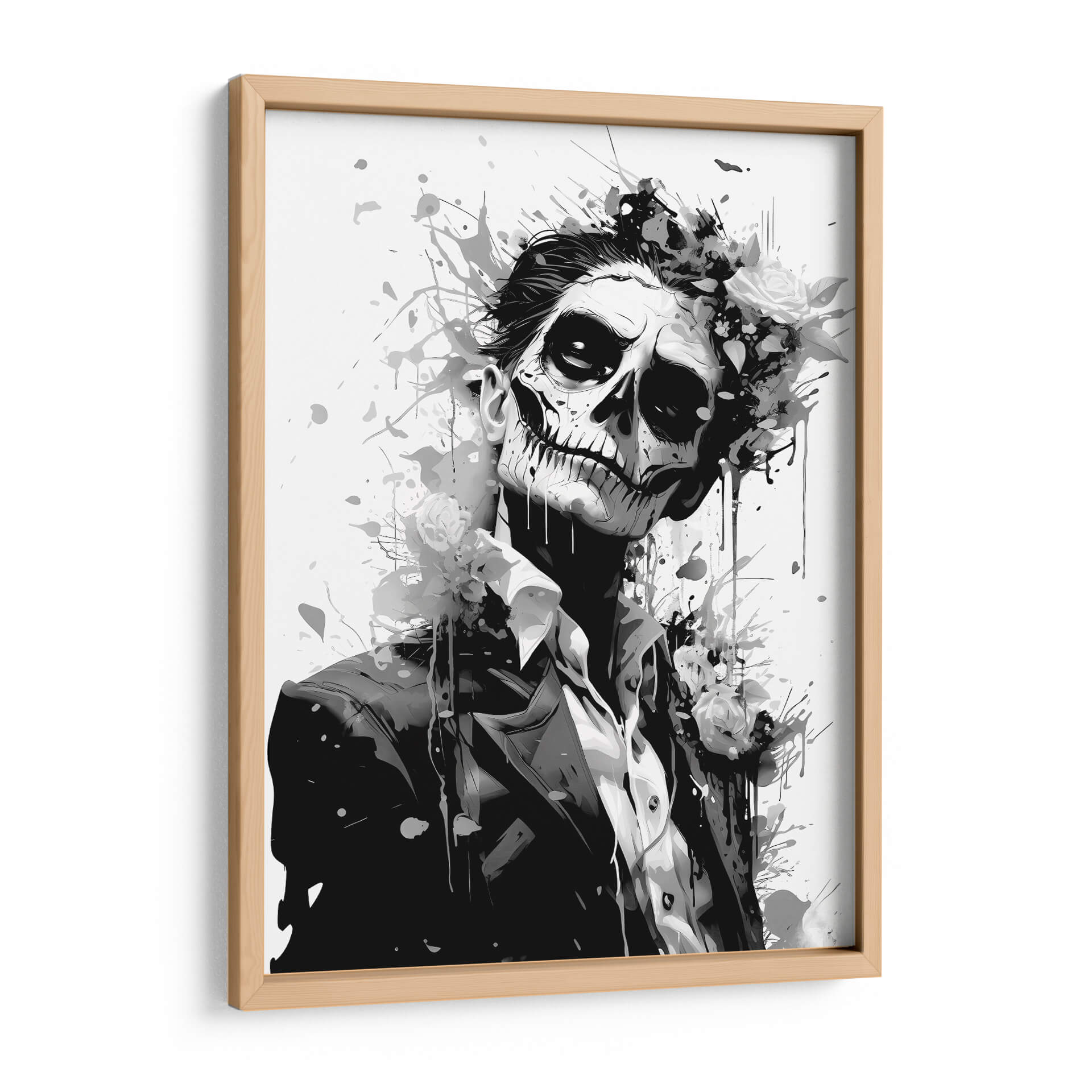 Sumérgete en la enigmática celebración del Día de Muertos con "El Catrín - Día de Muertos - 5", una obra de arte digital que desafía las convenciones. Este cuadro decorativo captura la esencia de la tradición mexicana con un giro contemporáneo y audaz. La pieza presenta una figura masculina estilizada con rasgos de calavera, adornada con delicadas flores y salpicaduras de tinta que evocan tanto la elegancia como la efímera naturaleza de la vida. La paleta monocromática en blanco, negro y grises crea una atmósfera dramática y sofisticada, permitiendo que los detalles de la composición resalten con una intensidad cautivadora. El estilo, que fusiona elementos realistas con una ejecución abstracta y expresiva, otorga a la obra una profundidad única. "El Catrín" es ideal para espacios que buscan un toque de carácter y un diálogo visual intrigante, como salas de estar modernas, estudios o incluso espacios comerciales que deseen proyectar una imagen vanguardista. Su impacto visual lo convierte en un punto focal garantizado, invitando a la reflexión sobre la dualidad entre la vida y la muerte, la belleza y lo macabro. Añade una pieza de arte que trasciende lo ordinario y celebra la rica herencia cultural con un diseño impactante.