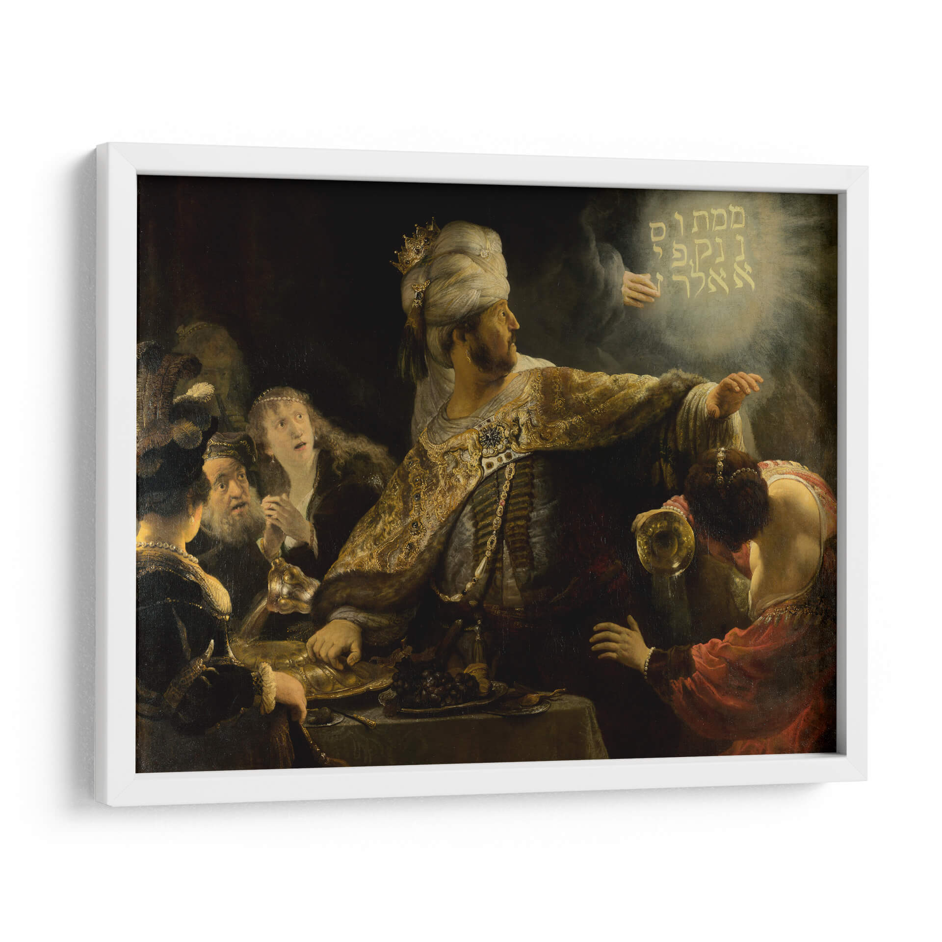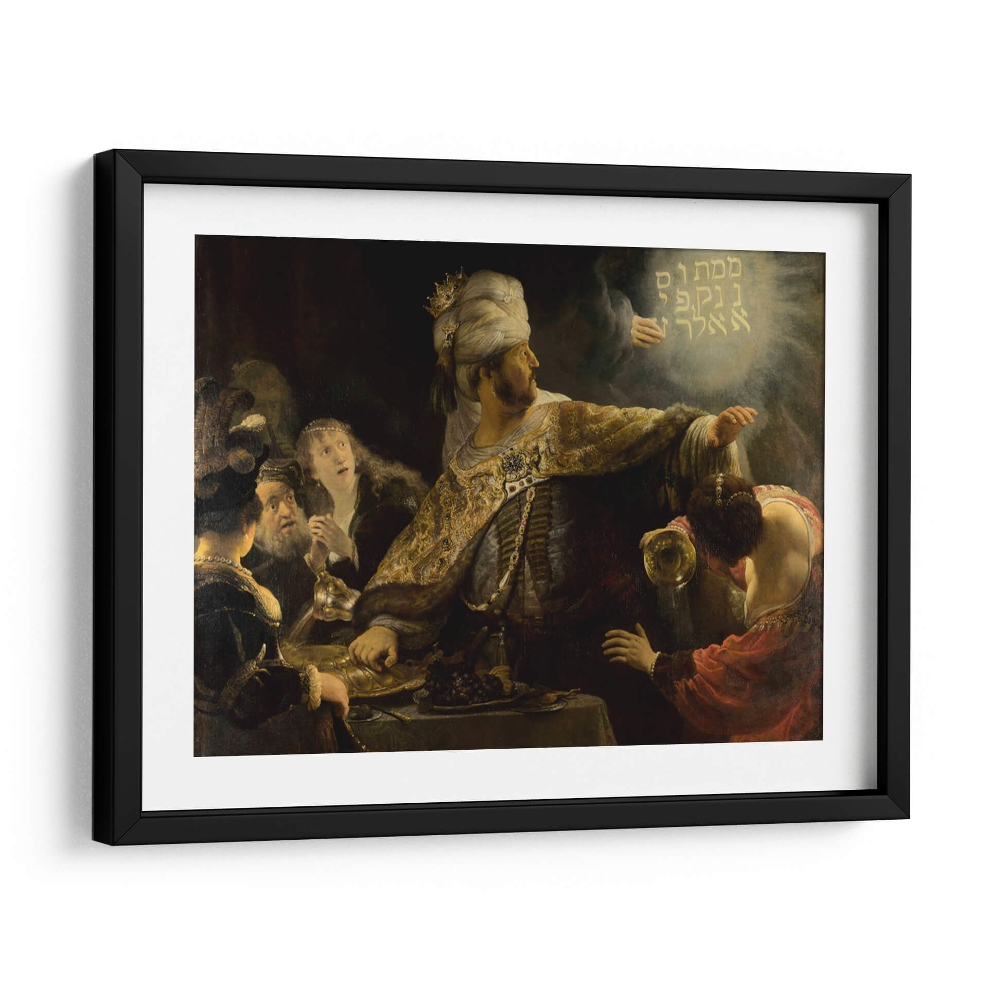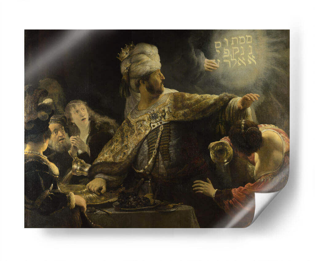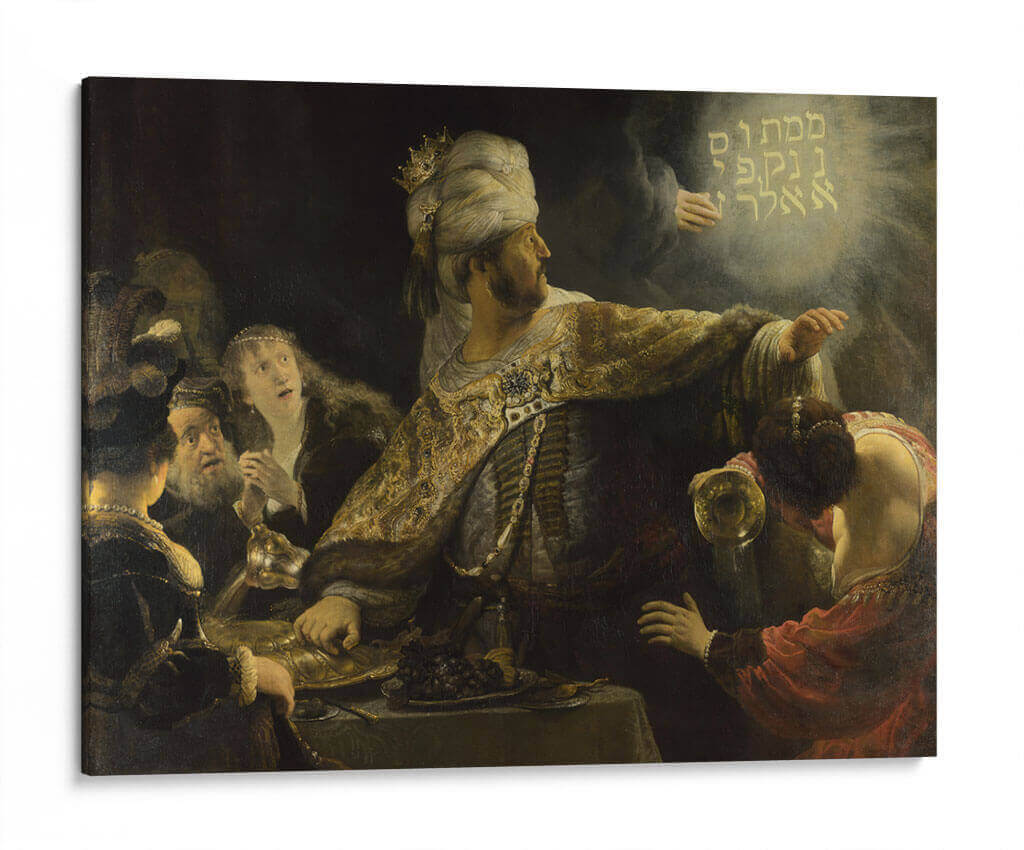 Sumérjase en la dramática escena de "El festín de Baltasar", una obra maestra de Rembrandt van Rijn que captura un momento de revelación divina y juicio inminente. Este cuadro decorativo transporta al espectador a un opulento banquete, donde la opulencia se ve interrumpida por un misterioso mensaje celestial. La paleta de colores, dominada por profundos oscuros contrastados con ricos dorados y toques vibrantes de rojo y blanco, crea una atmósfera de tensión y asombro. Las figuras, representadas con un realismo impactante, transmiten una mezcla de sorpresa, temor y desolación ante la Handwriting on the Wall. La composición, con el foco principal en Baltasar y la aparición espectral, guía la mirada del espectador a través de la narrativa. Ideal para espacios que buscan un toque de dramatismo histórico y reflexión, este cuadro decorativo es perfecto para añadir profundidad y carácter a un salón, estudio o comedor, invitando a la conversación y a la contemplación sobre el destino y la fugacidad del poder.