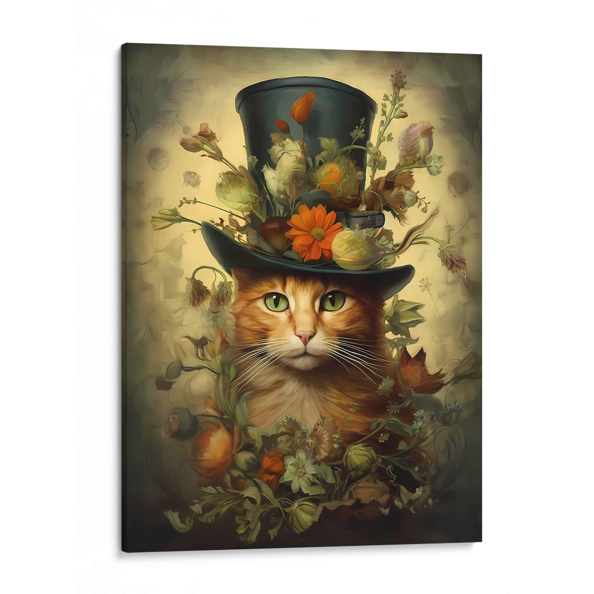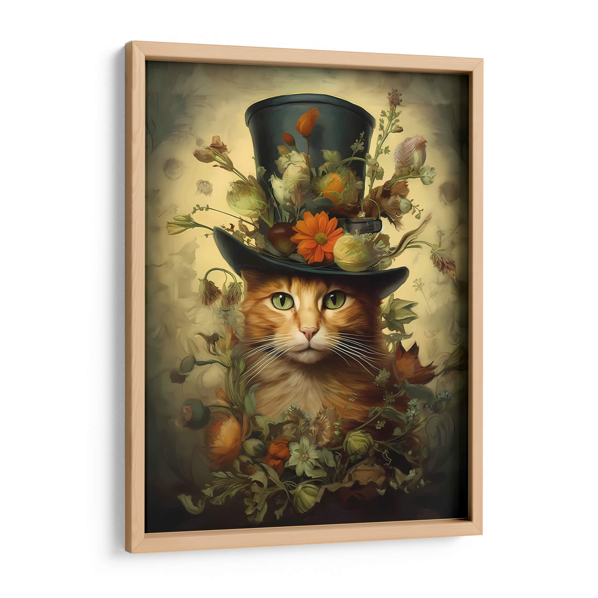 Embellece tu hogar con "El Gato", una cautivadora obra de arte de Jessica CA que fusiona la elegancia felina con la exuberancia floral. Este cuadro decorativo presenta un majestuoso gato atigrado, cuyos penetrantes ojos verdes capturan la mirada, coronado por un sombrero de copa adornado con una rica variedad de flores y follaje. La paleta de colores, dominada por tonos tierra, verdes musgo y toques vibrantes de naranja, crea una atmósfera rica y ligeramente misteriosa, evocando la nostalgia de un jardín secreto. El estilo pictórico, con pinceladas que sugieren una acuarela o un óleo delicado, aporta profundidad y textura, haciendo que cada detalle, desde el pelaje del gato hasta los pétalos de las flores, cobre vida. La composición, centrada en el rostro del felino y enmarcada por elementos botánicos, genera un punto focal intrigante. "El Gato" es ideal para espacios que buscan un toque de sofisticación, encanto y un guiño a la naturaleza, perfecto para salas de estar, estudios o incluso un dormitorio con personalidad. Transforma tu pared en una declaración de estilo con esta pieza única que evoca curiosidad y admiración.