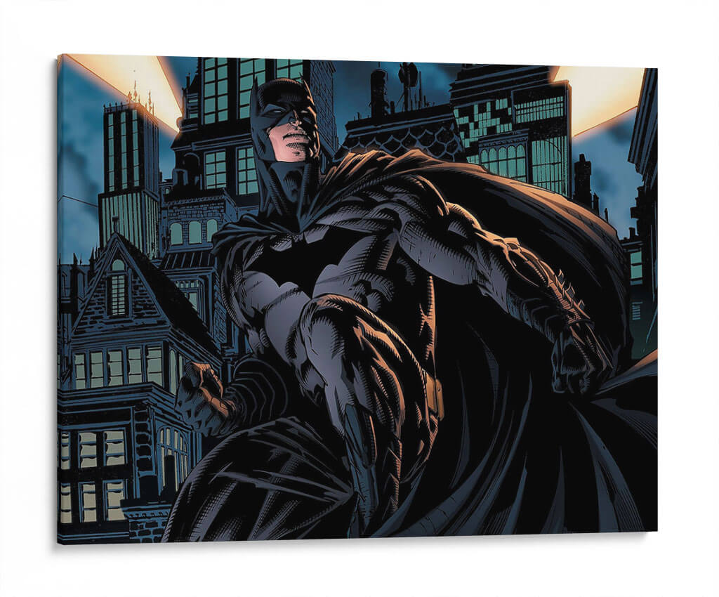 Sumérgete en la atmósfera urbana y misteriosa de "El hombre de Gotham", un cuadro decorativo que captura la esencia de un vigilante en acción. Esta obra presenta una figura icónica, detalladamente renderizada con un traje oscuro que se funde con las sombras de una ciudad nocturna. La composición dinámica, con el personaje emergiendo de la penumbra, crea una sensación de suspense y poder. La paleta de colores se centra en tonos oscuros y fríos, con sutiles toques de luz que resaltan la musculatura y el dramatismo de la escena. El fondo, compuesto por siluetas de edificios arquitectónicos y luces tenues, evoca la complejidad de una metrópoli en la que reina la justicia. Este cuadro es ideal para añadir un toque de intriga y fuerza a tu sala de estar, estudio u oficina, resonando con aquellos que aprecian el heroísmo y la resiliencia. Un elemento decorativo perfecto para espacios que buscan un carácter distintivo y una narrativa visual impactante, este cuadro decorativo es una pieza de conversación que evoca la dualidad entre la oscuridad y la luz.
