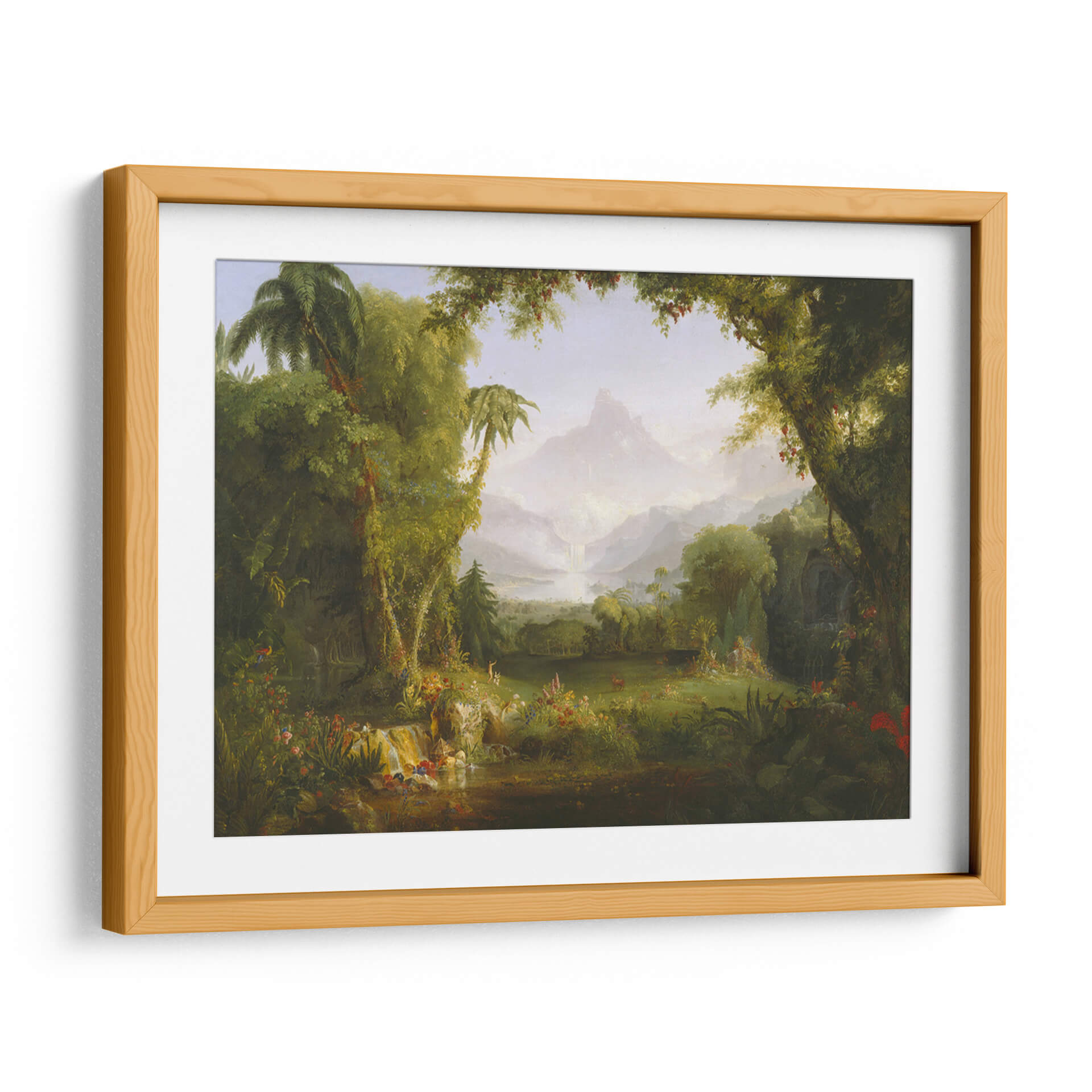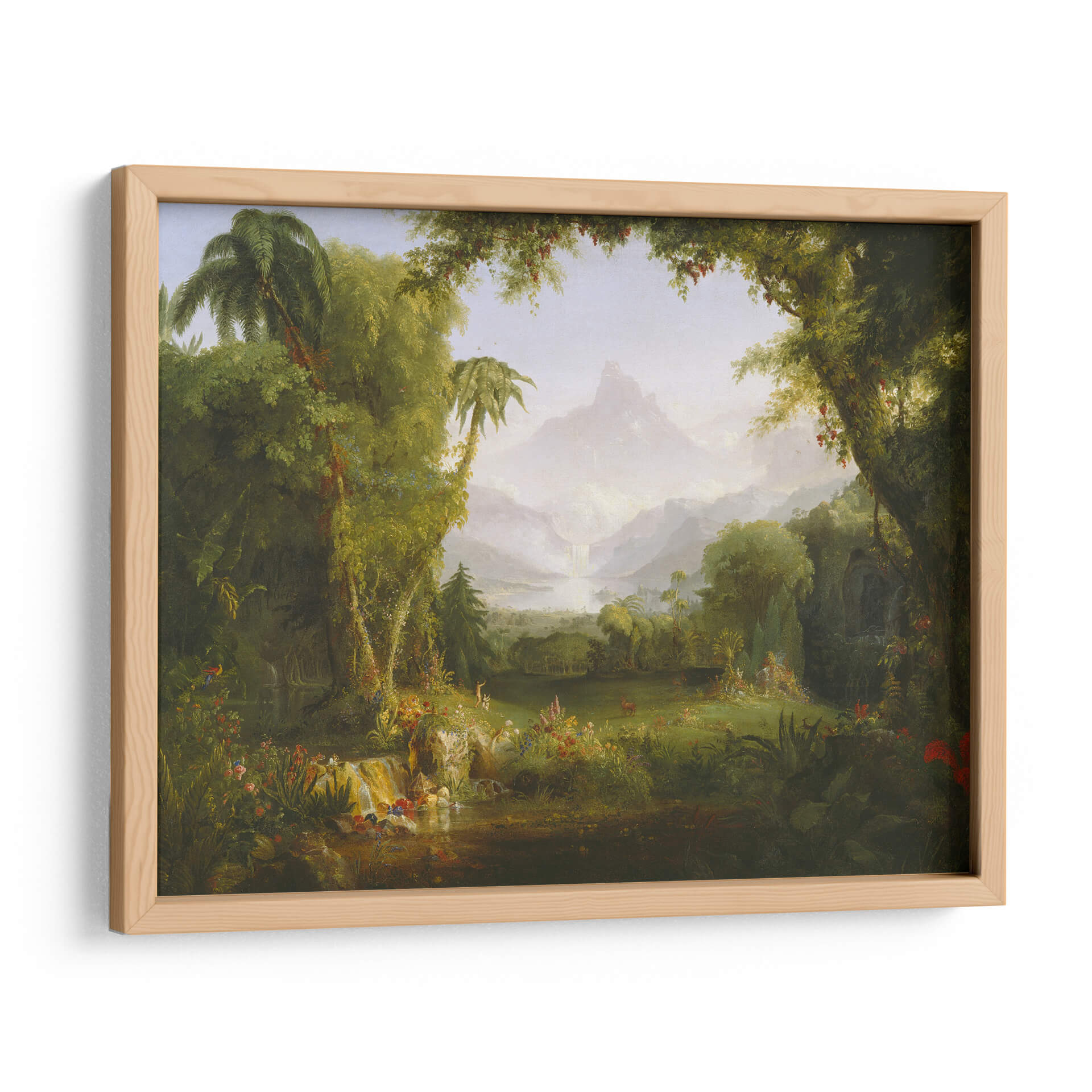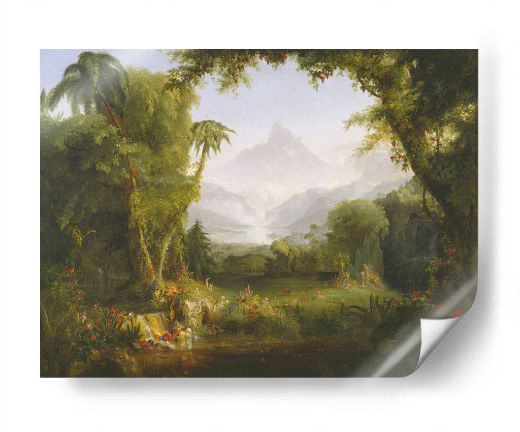 Adéntrate en la exuberancia y la serenidad de "El Jardín del Edén", una obra maestra que evoca la belleza prístina de la naturaleza en su estado más puro. Este cuadro decorativo transporta al espectador a un paraíso terrenal, donde cascadas serpenteantes descienden hacia un lago sereno, rodeado de una vegetación exuberante y árboles majestuosos. La paleta de colores, dominada por verdes profundos, tonos tierra y toques vibrantes de flores, crea una atmósfera de paz y asombro. La composición, con sus intrincados detalles y su vasto paisaje de fondo, invita a la contemplación y la admiración. "El Jardín del Edén" es ideal para infundir calma y una conexión con la naturaleza en cualquier espacio, ya sea una sala de estar, un estudio o un dormitorio. Transforma tu hogar en un santuario personal con esta pieza de arte inspiradora, perfecta para quienes buscan añadir un toque de belleza natural y trascendental a su decoración. Un cuadro decorativo que no solo embellece, sino que también eleva el espíritu, ofreciendo una ventana a un mundo idílico y lleno de vida, capturado magistralmente por Thomas Cole.