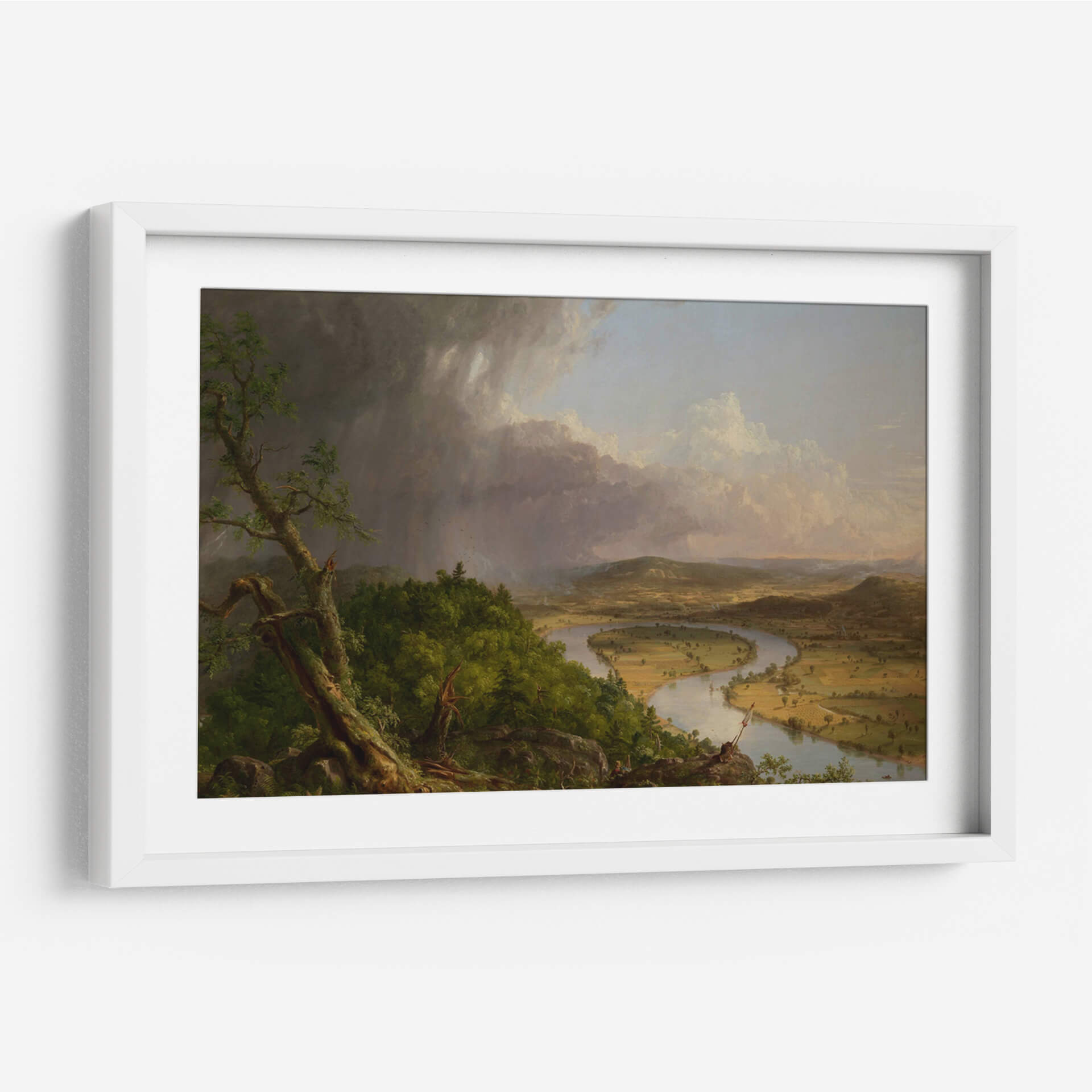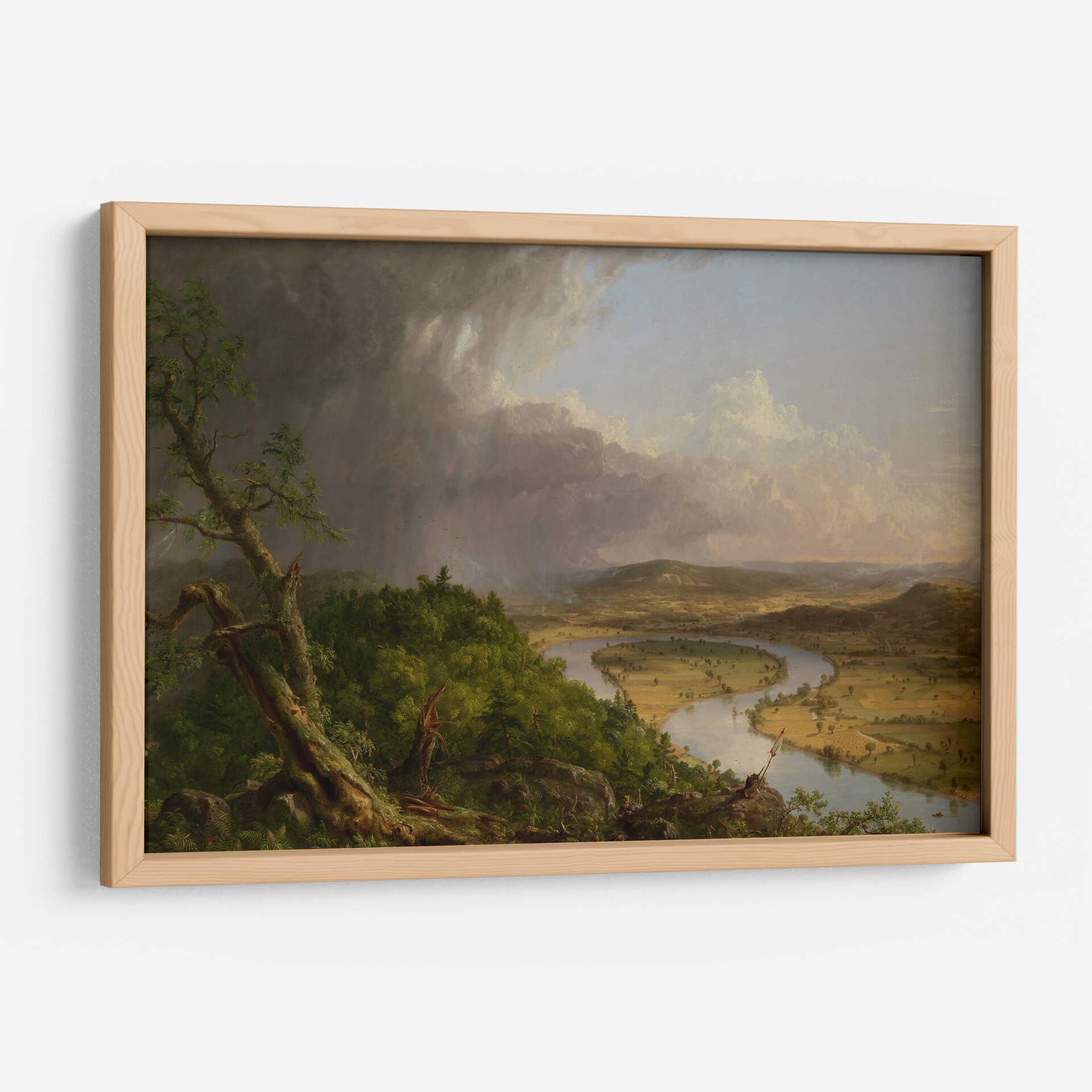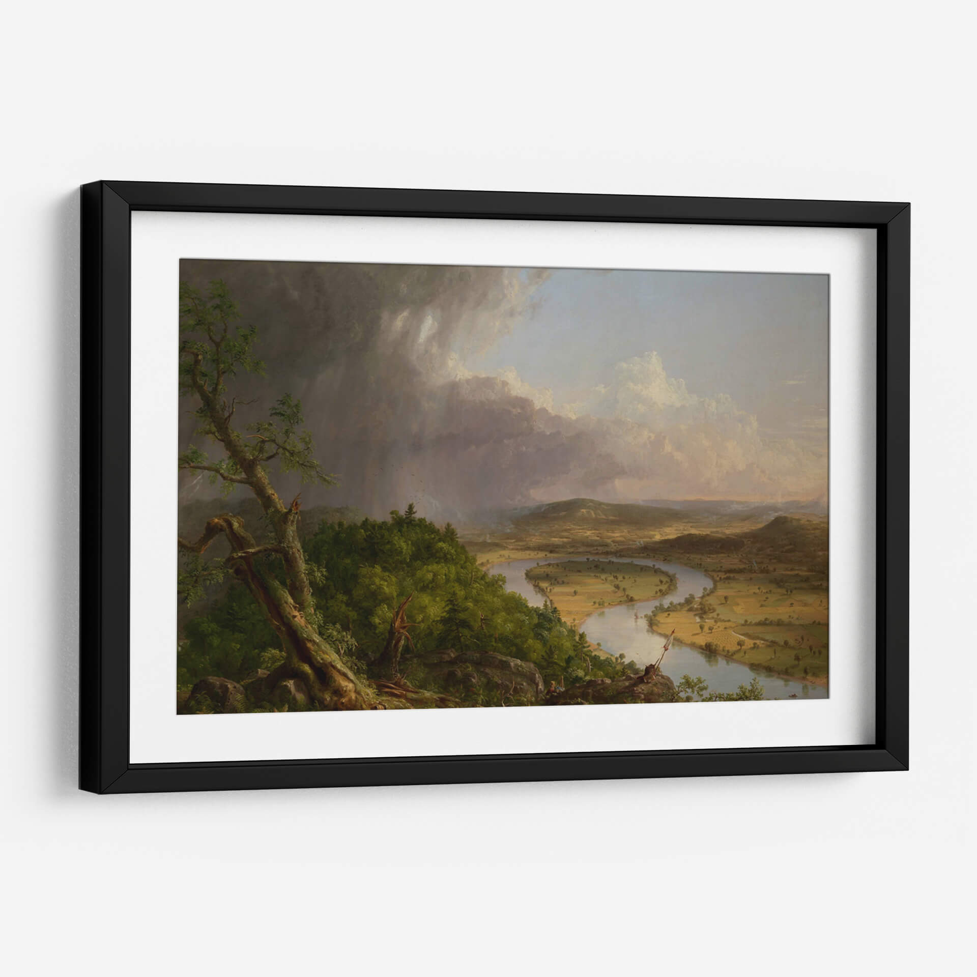 Sumérgete en la majestuosidad de "El Meandro" de Thomas Cole, un cuadro decorativo que captura la esencia de la naturaleza en su máxima expresión. Esta obra maestra, con su detallado paisaje, te transporta a un valle sereno donde un río serpentea a través de prados dorados, enmarcado por colinas ondulantes y un cielo dramático con nubes tormentosas que se disipan. Los tonos verdes profundos de la vegetación exuberante contrastan con los ocres y amarillos de la tierra, creando una atmósfera de poder y tranquilidad. La composición, que se extiende en una vista panorámica desde un promontorio rocoso, invita a la contemplación y a la reflexión sobre la grandeza del mundo natural. "El Meandro" es una pieza ideal para añadir un toque de serenidad y epicidad a tu sala de estar, estudio u oficina, evocando una sensación de aventura y descubrimiento. Su estilo paisajístico clásico, enriquecido por el manejo magistral de la luz y la sombra, asegura que este cuadro decorativo sea un punto focal que inspire y calme, convirtiendo cualquier espacio en una galería personal. Añade esta obra de arte a tu colección y experimenta la profunda conexión con la naturaleza que Thomas Cole supo plasmar.