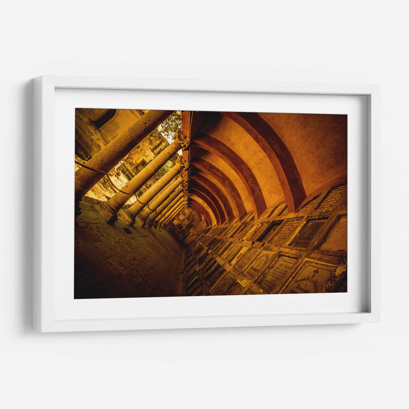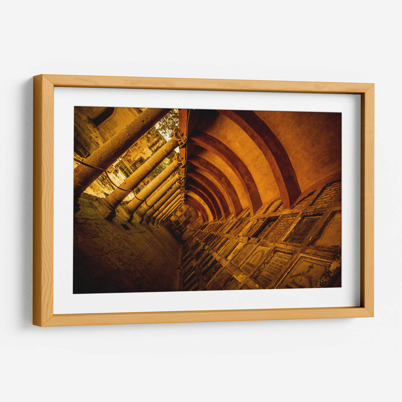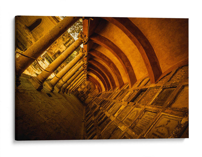 Sumérgete en la atmósfera evocadora de 'El Panteón de Belén I', una obra maestra fotográfica que captura la majestuosidad y el misterio de la arquitectura histórica. Esta pieza visual, creada por el artista Jaime López Portillo, te transporta a un espacio de profundo carácter y resonancia, dominado por imponentes columnas y arcos que se pierden en la perspectiva. La paleta de colores cálidos, con predominio de tonos ocres y dorados, confiere a la imagen una sensación de antigüedad y solemnidad, realzada por la luz que se filtra, creando juegos de sombras y profundidades. La composición, con su arquitectura simétrica y el juego de líneas, invita a la contemplación y la reflexión sobre el paso del tiempo y la historia. Este cuadro decorativo es ideal para aquellos que buscan añadir un toque de elegancia atemporal y un punto focal intrigante a sus espacios, ya sea en un hogar con carácter, una biblioteca privada o un estudio que aspire a la distinción. 'El Panteón de Belén I' no es solo una imagen, es una invitación a explorar la belleza arquitectónica y la narrativa visual que solo el arte puede ofrecer, transformando cualquier ambiente en una galería personal llena de historia y estilo.