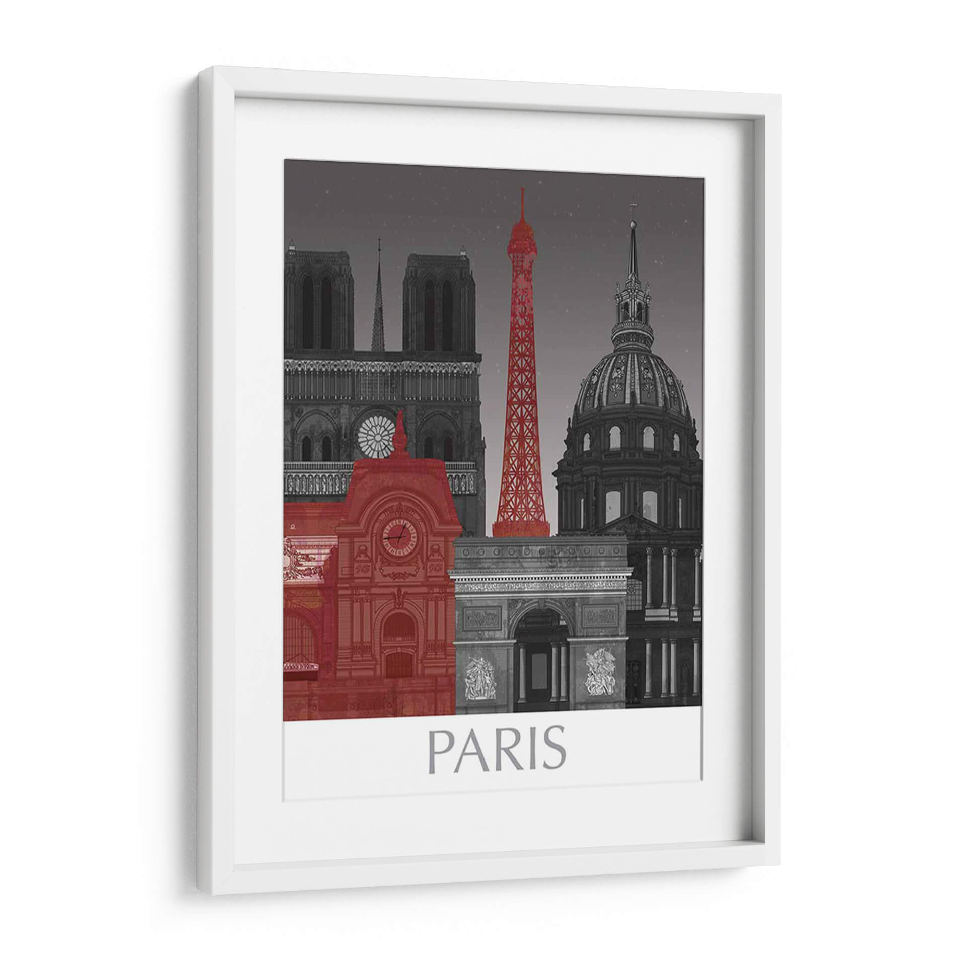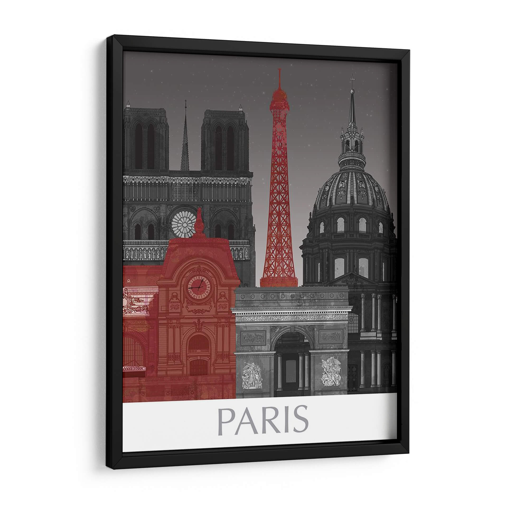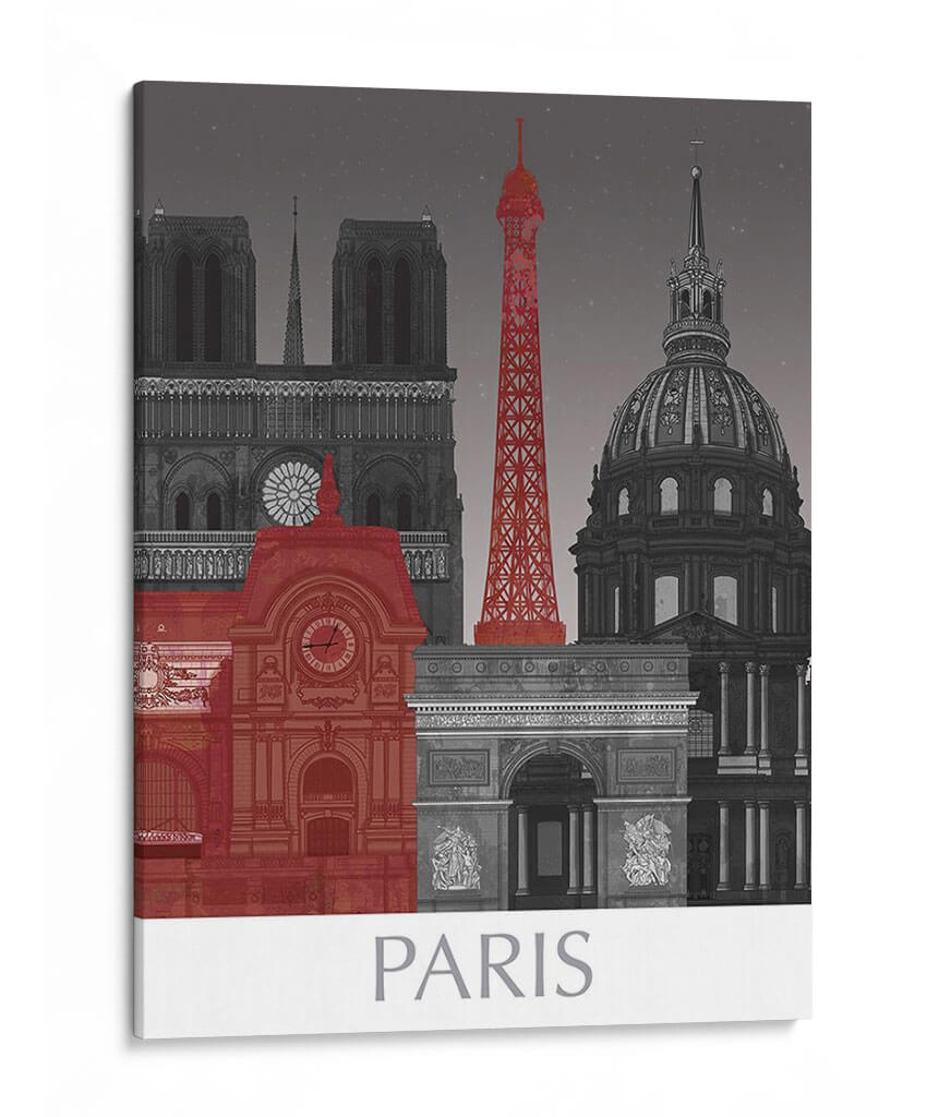 Embárcate en un viaje visual a la Ciudad de la Luz con "Elevaciones de París por Noche Roja", una cautivadora obra de arte que redefine los icónicos monumentos parisinos. Esta pieza, con su distintiva paleta de colores, presenta una audaz explosión de rojo que contrasta vívidamente con una base predominantemente monocromática en escala de grises. La composición presenta una silueta estilizada de la ciudad, destacando edificios emblemáticos como la Torre Eiffel, Notre Dame y el Arco del Triunfo, cada uno renderizado con un detalle intrincado que evoca la majestuosidad arquitectónica de París. El uso del rojo no es meramente decorativo; infunde a la escena una energía electrizante, un toque de pasión y modernidad que se cierne sobre la histórica grandiosidad. La noche estrellada de fondo, sutilmente representada, añade una capa de misticismo y elegancia, invitando a la contemplación. Este cuadro decorativo es perfecto para aquellos que buscan añadir un toque de sofisticación urbana y un punto de conversación a su hogar u oficina. Ideal para salas de estar modernas, estudios o comedores, "Elevaciones de París por Noche Roja" promete ser un punto focal vibrante que inspira y transporta, capturando la esencia del encanto parisino con una perspectiva artística única y contemporánea. Añade esta pieza única a tu colección y deja que París ilumine tus espacios.
