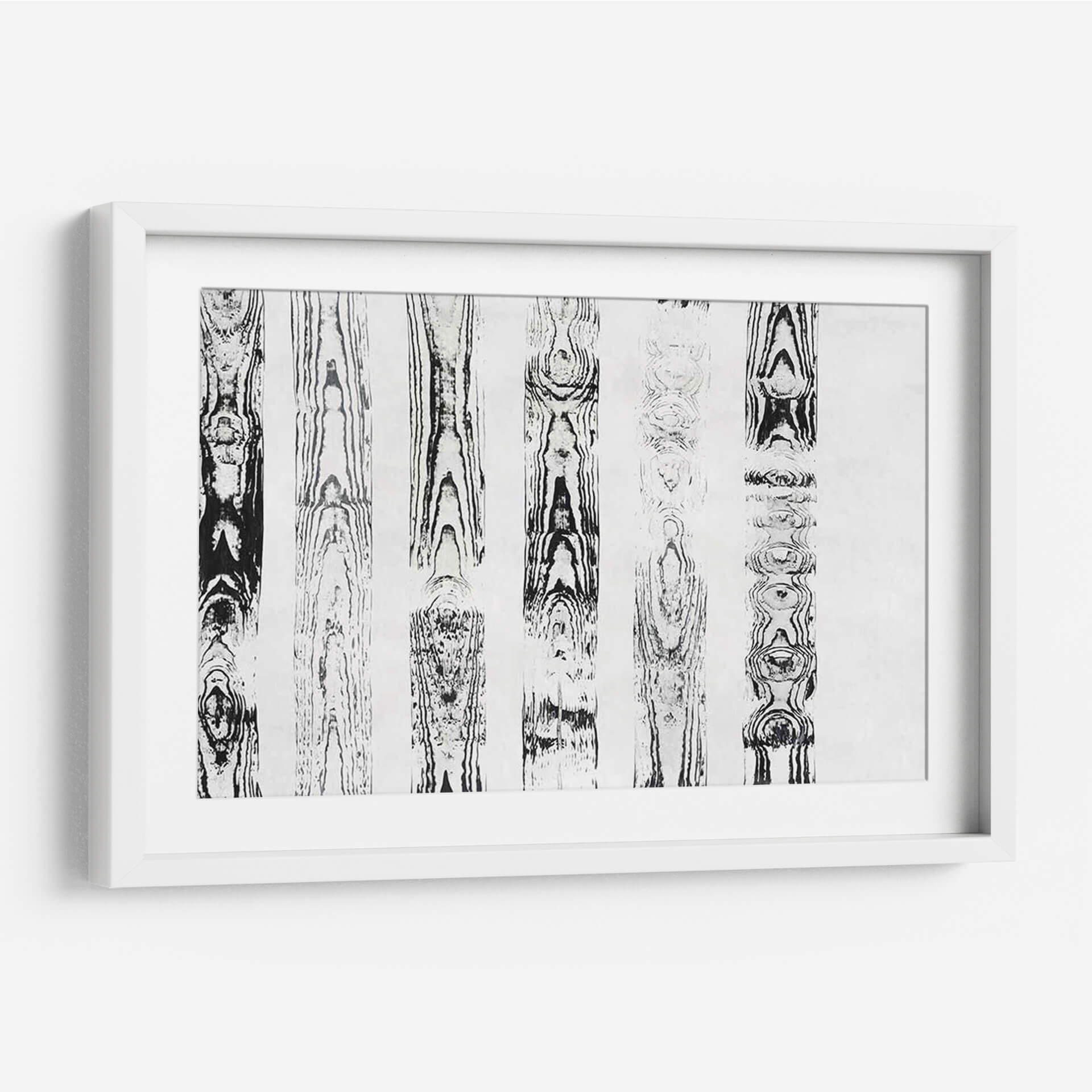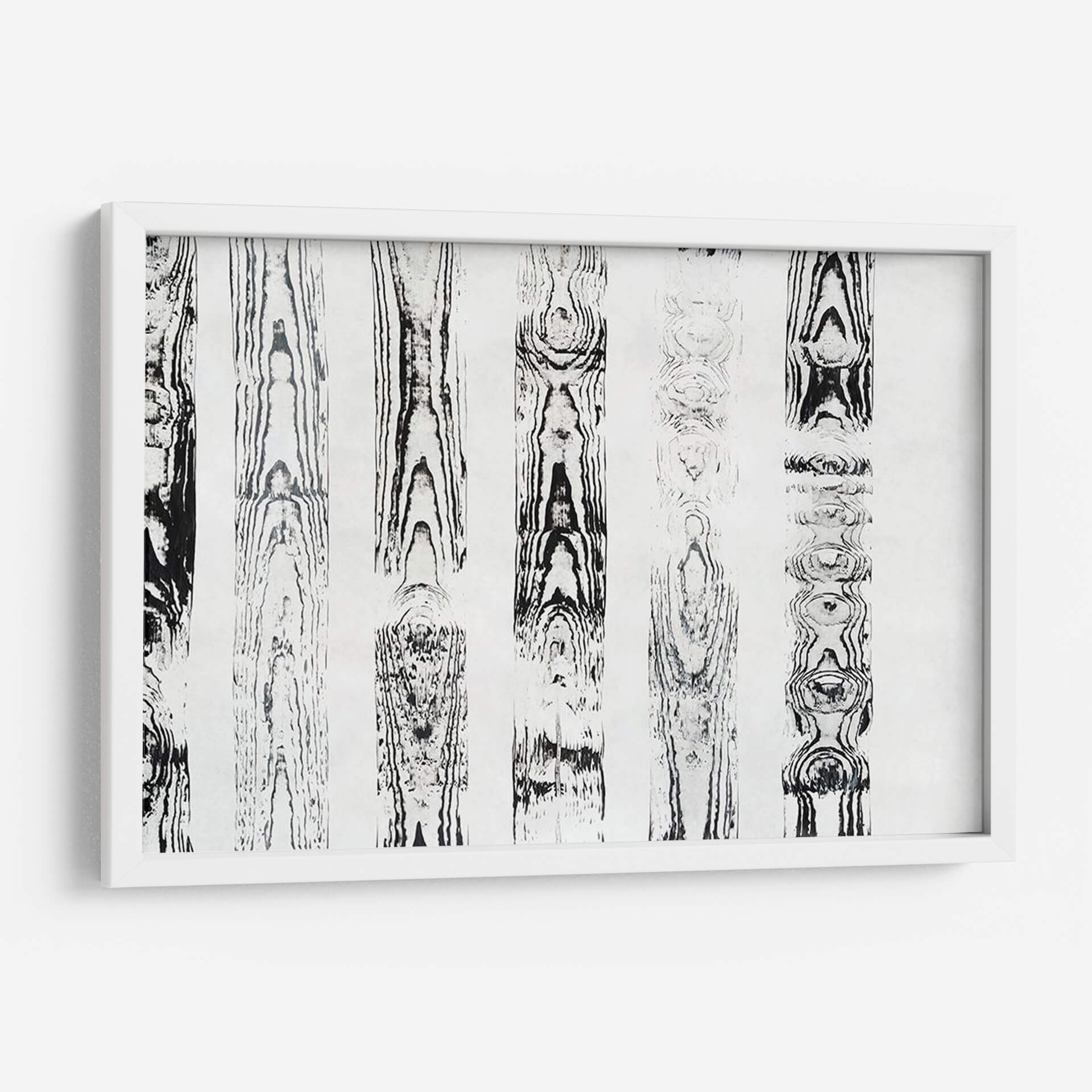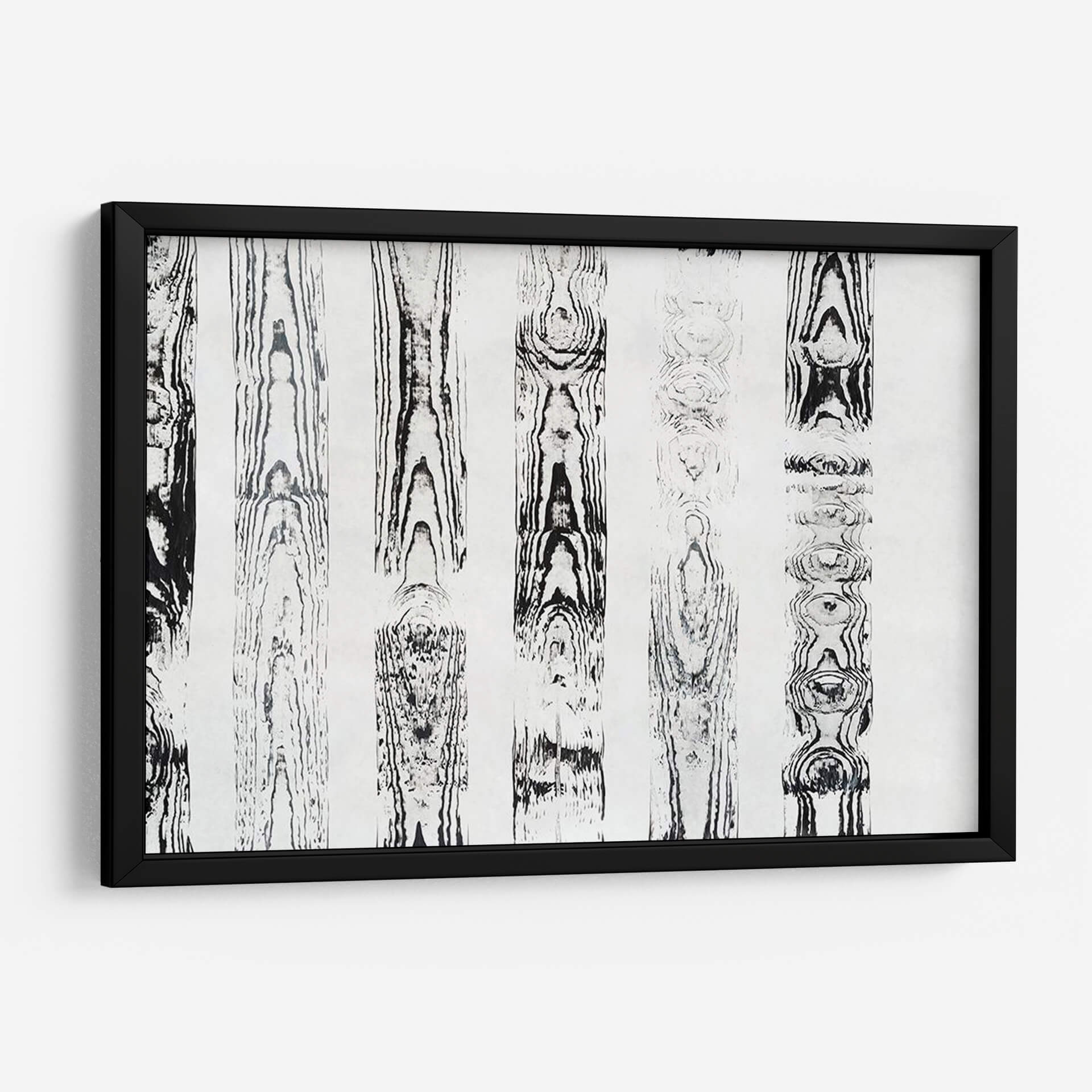 Sumérgete en la textura y el patrón orgánico de "Endgrain III", una obra de arte contemporáneo que evoca la belleza intrínseca de la madera. Esta pieza abstracta, creada por Vanna Lam, presenta una serie de columnas verticales con intrincados diseños que imitan las vetas de la madera, ejecutados en una paleta monocromática de blancos y negros profundos. La composición, que recuerda a un bosque estilizado o a un estudio de patrones naturales, ofrece una sensación de calma y orden. Cada sección vertical revela una complejidad única, con nodos y flujos que invitan a la contemplación. Ideal para espacios que buscan un toque de elegancia natural y sofisticación minimalista, "Endgrain III" es perfecto para añadir profundidad visual a salones modernos, oficinas serenas o dormitorios tranquilos. Su diseño atemporal y su estilo abstracto lo convierten en una adición versátil y cautivadora para cualquier decoración interior, aportando una conexión terrenal y una estética depurada que equilibra perfectamente la fuerza visual con la serenidad.
