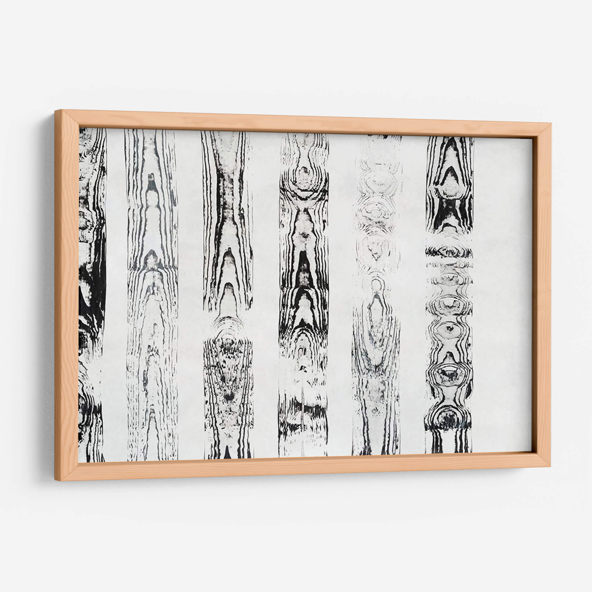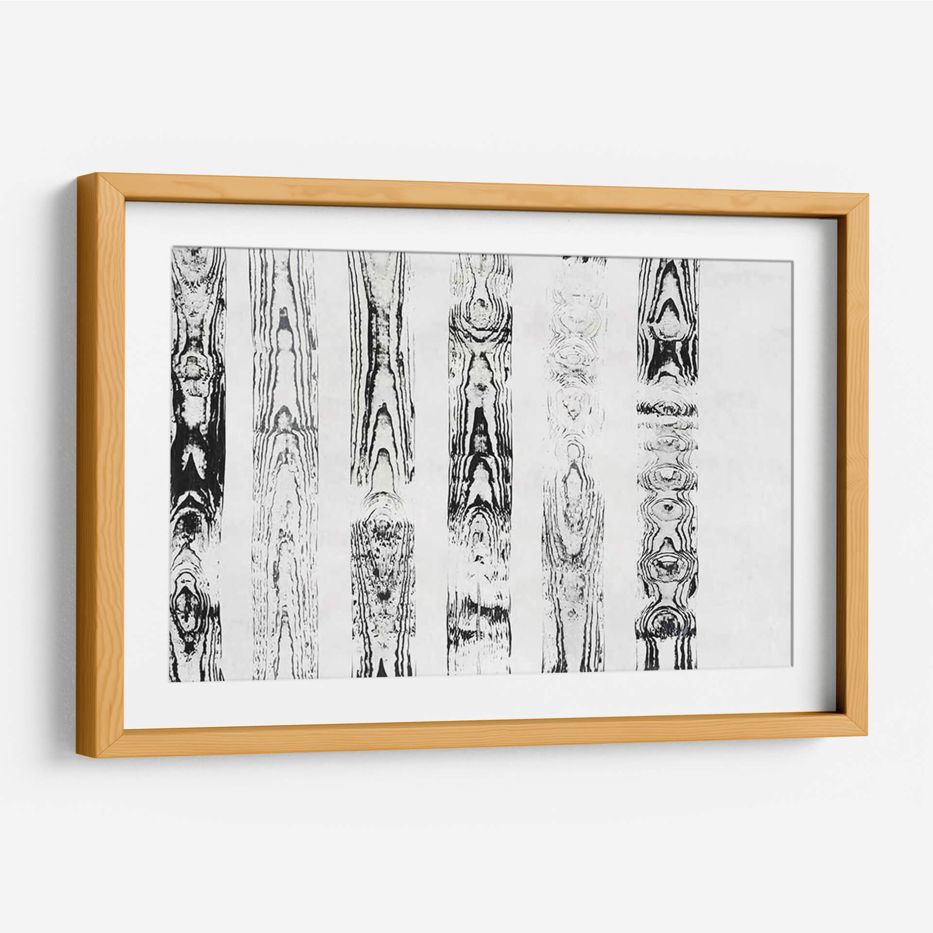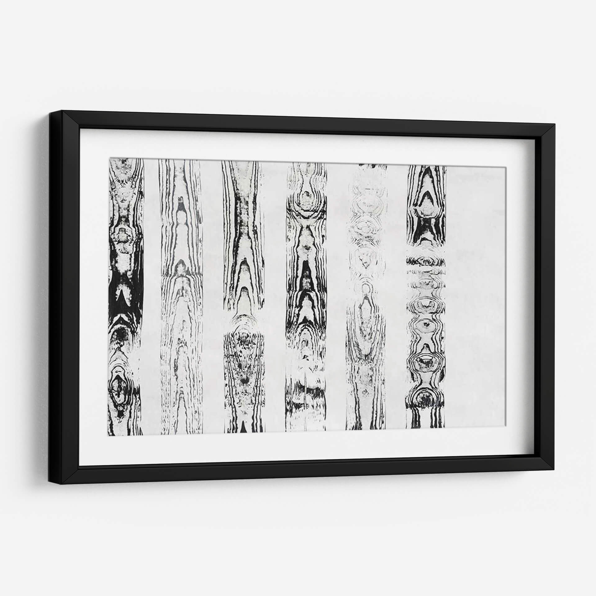 Sumérgete en la textura y el patrón orgánico de "Endgrain III", una obra de arte contemporáneo que evoca la belleza intrínseca de la madera. Esta pieza abstracta, creada por Vanna Lam, presenta una serie de columnas verticales con intrincados diseños que imitan las vetas de la madera, ejecutados en una paleta monocromática de blancos y negros profundos. La composición, que recuerda a un bosque estilizado o a un estudio de patrones naturales, ofrece una sensación de calma y orden. Cada sección vertical revela una complejidad única, con nodos y flujos que invitan a la contemplación. Ideal para espacios que buscan un toque de elegancia natural y sofisticación minimalista, "Endgrain III" es perfecto para añadir profundidad visual a salones modernos, oficinas serenas o dormitorios tranquilos. Su diseño atemporal y su estilo abstracto lo convierten en una adición versátil y cautivadora para cualquier decoración interior, aportando una conexión terrenal y una estética depurada que equilibra perfectamente la fuerza visual con la serenidad.