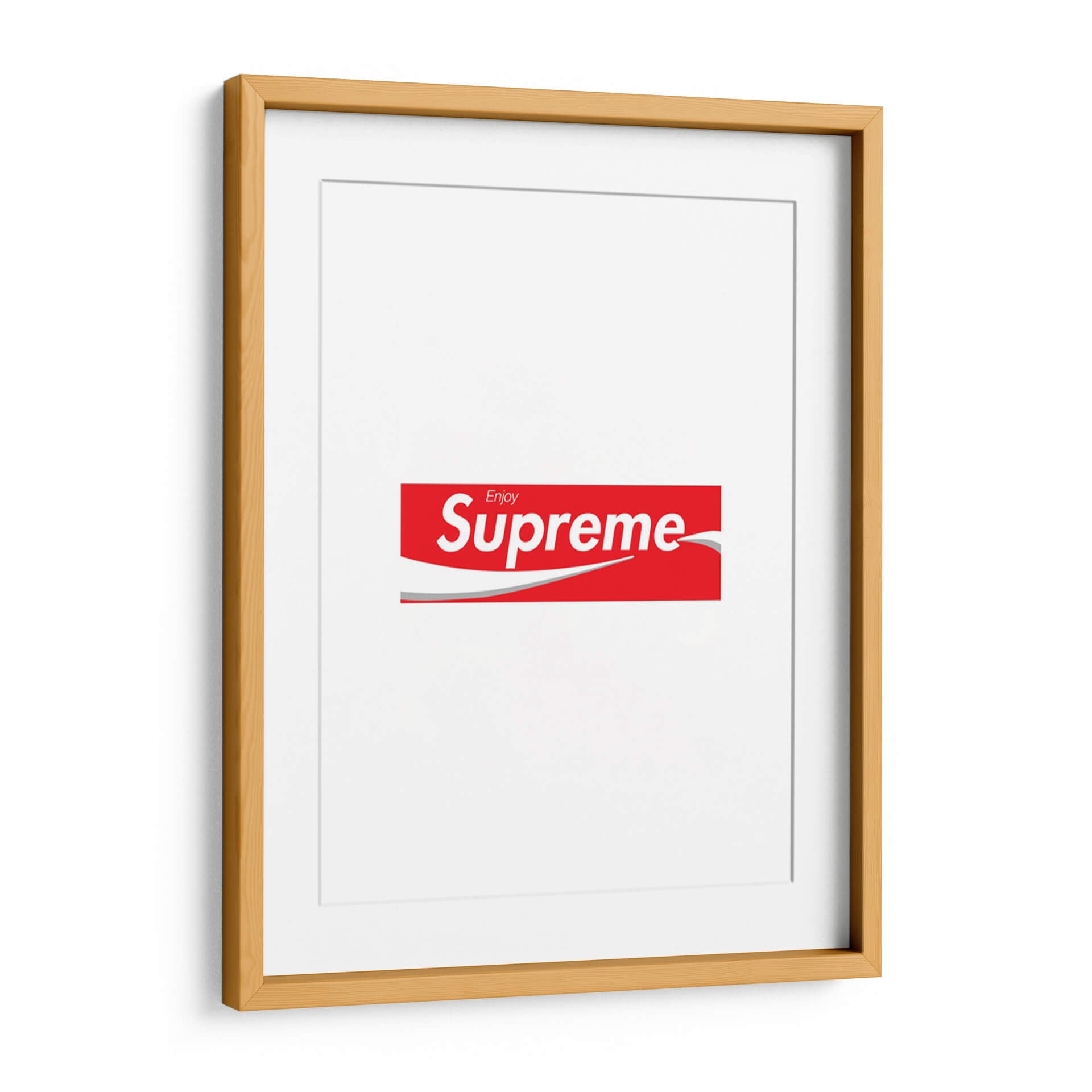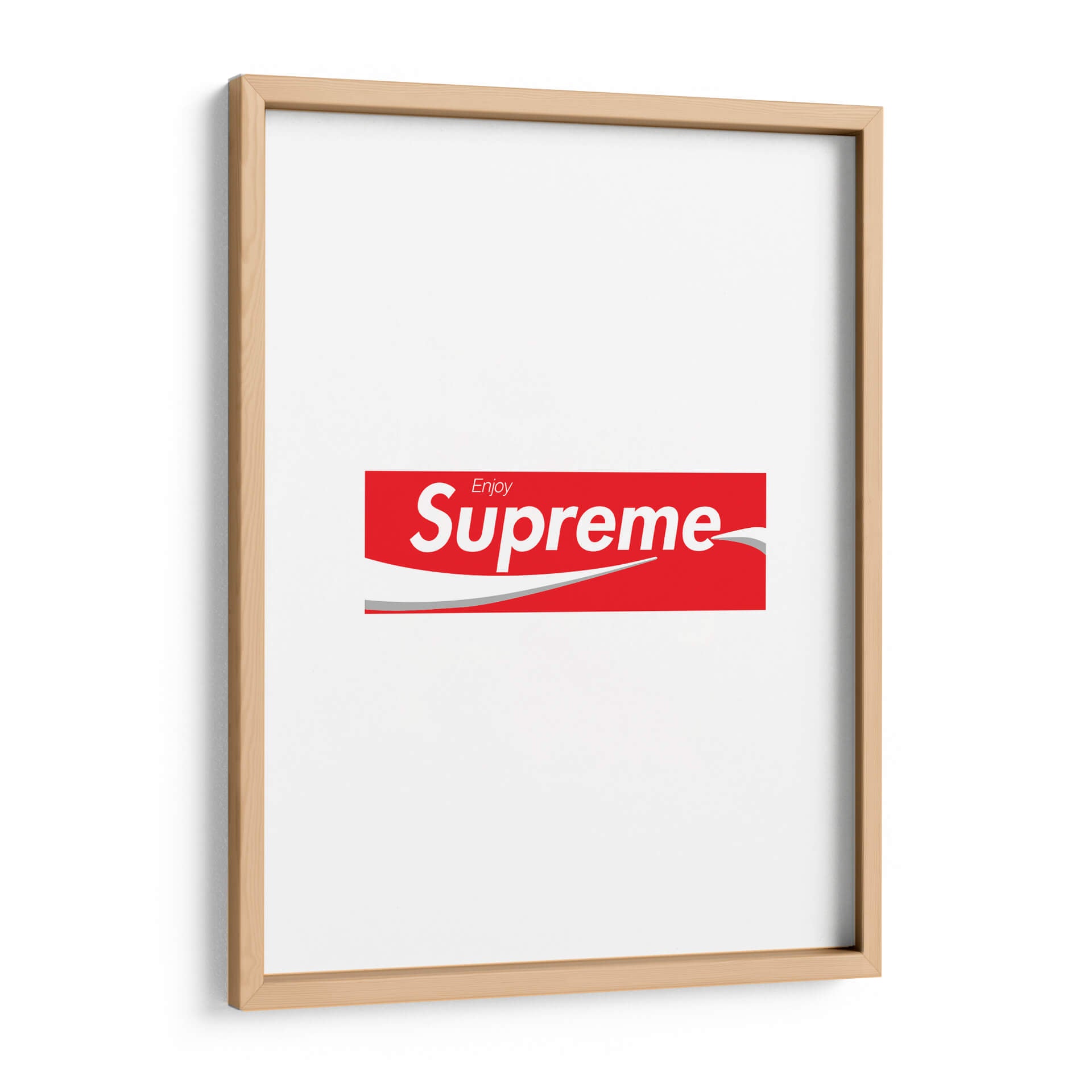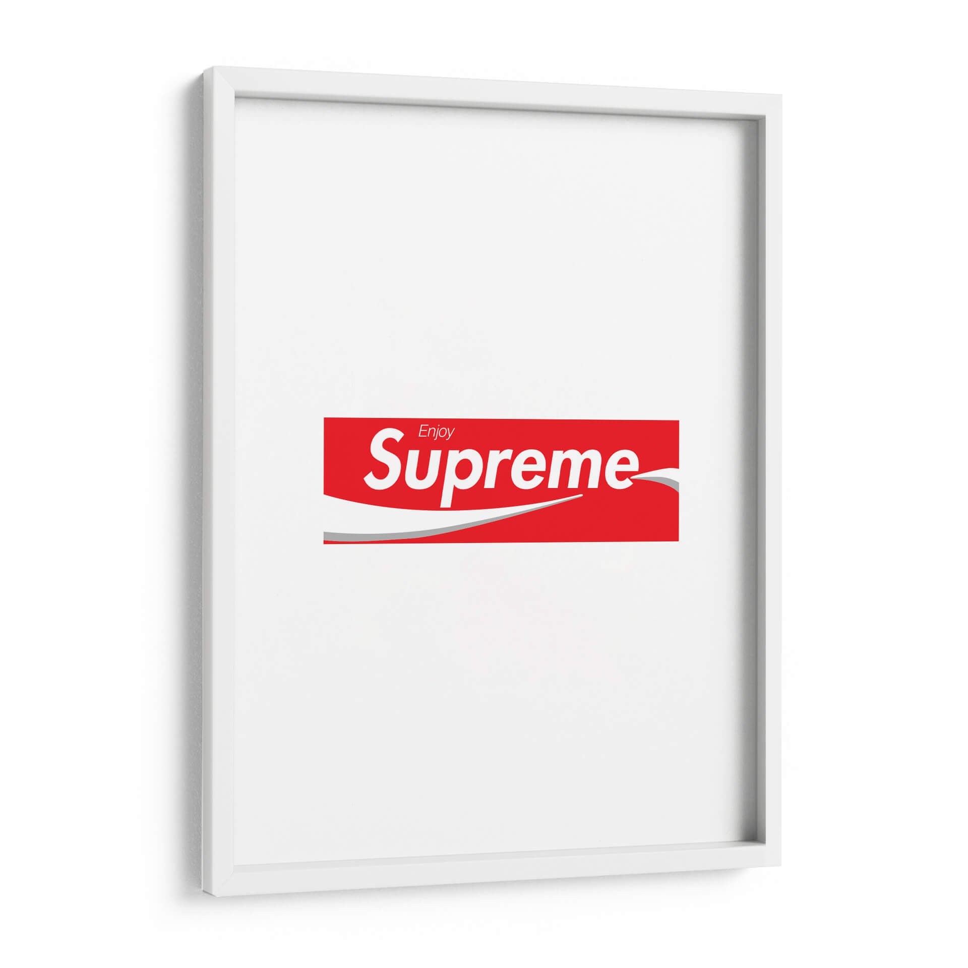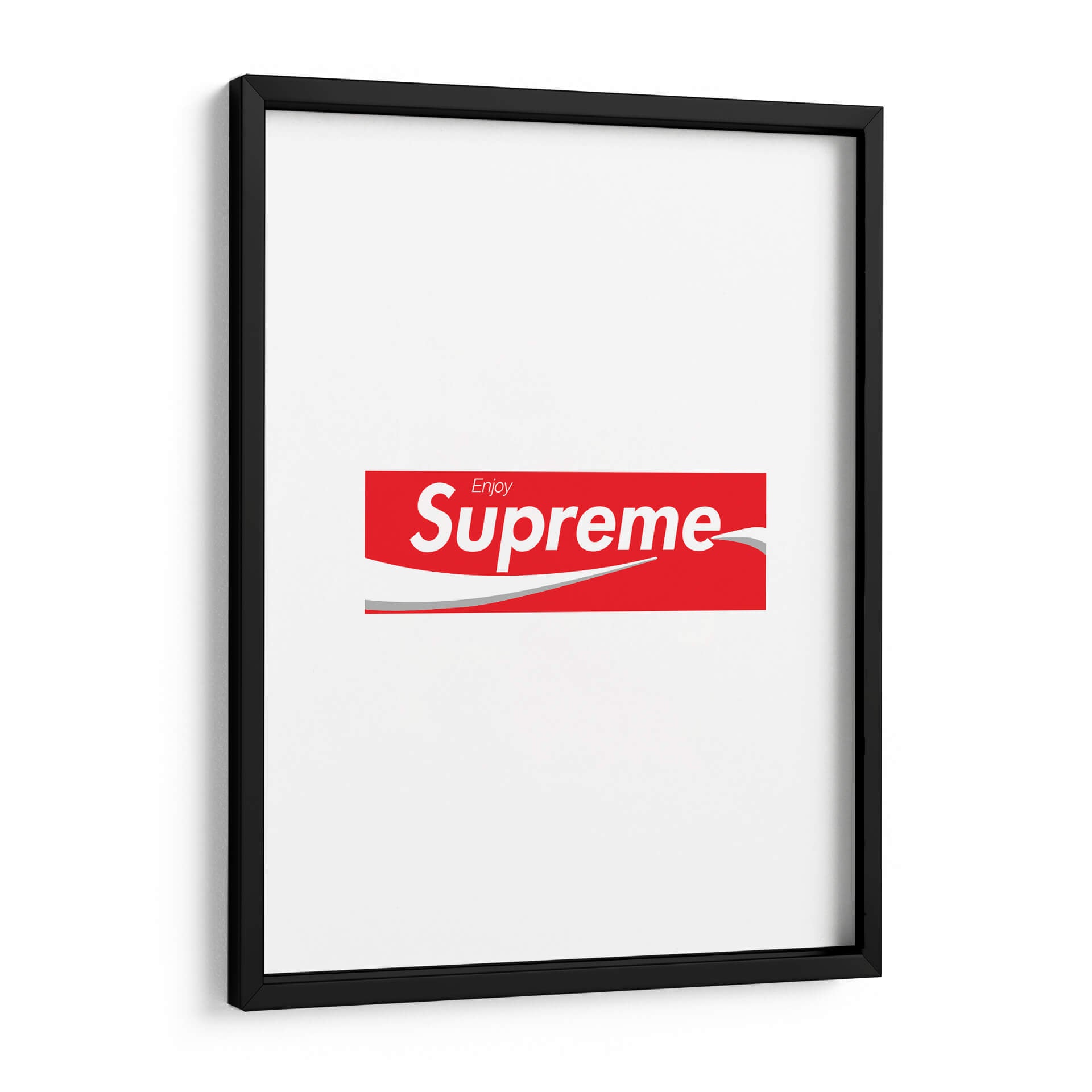 Este llamativo cuadro decorativo presenta una audaz y reconocible caja de logo en rojo vibrante, con el texto "Enjoy Supreme" en blanco nítido. La composición minimalista, centrada en el icónico diseño, evoca una sensación de energía contemporánea y un guiño a la cultura pop. Los colores primarios, rojo y blanco, crean un contraste poderoso que atrae la mirada y añade un toque moderno a cualquier espacio. Es una pieza ideal para aquellos que aprecian el diseño gráfico audaz y los elementos icónicos de la moda urbana. Este cuadro es perfecto para inyectar personalidad y un estilo urbano a una sala de estar, un estudio o una oficina. Su diseño limpio y directo lo convierte en un punto focal versátil que complementa una amplia gama de estilos de decoración, desde el industrial hasta el contemporáneo. Añade un toque de actitud y un diseño gráfico impactante a tus paredes con esta obra de arte única.