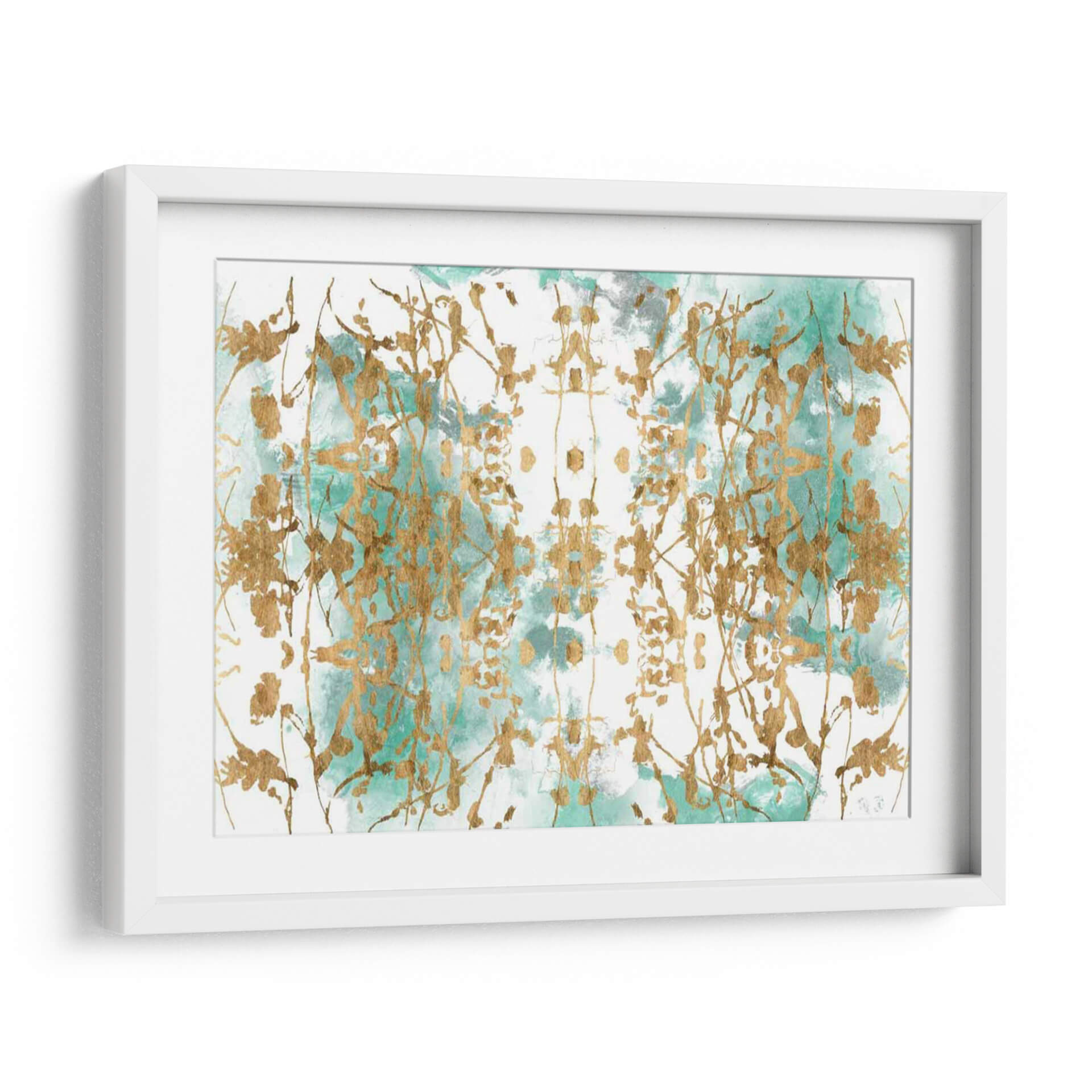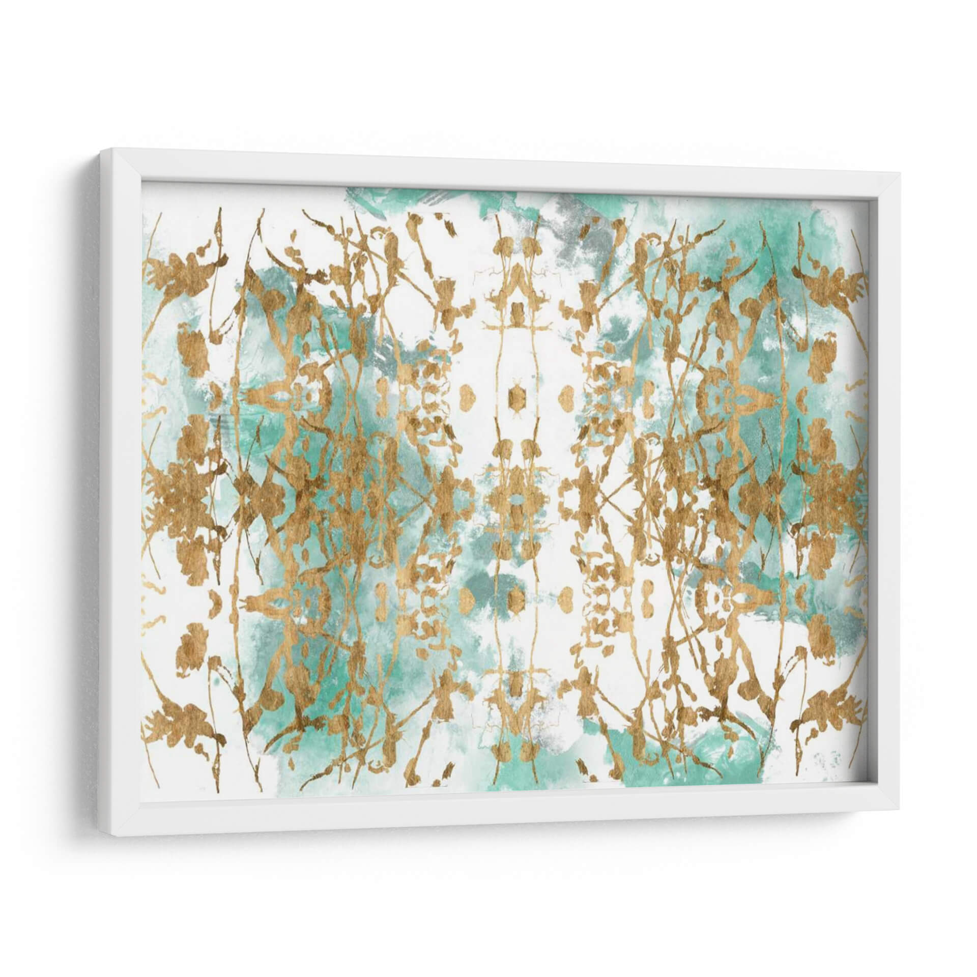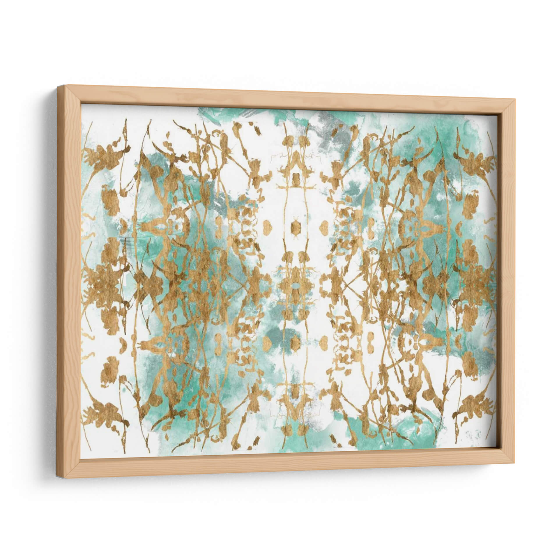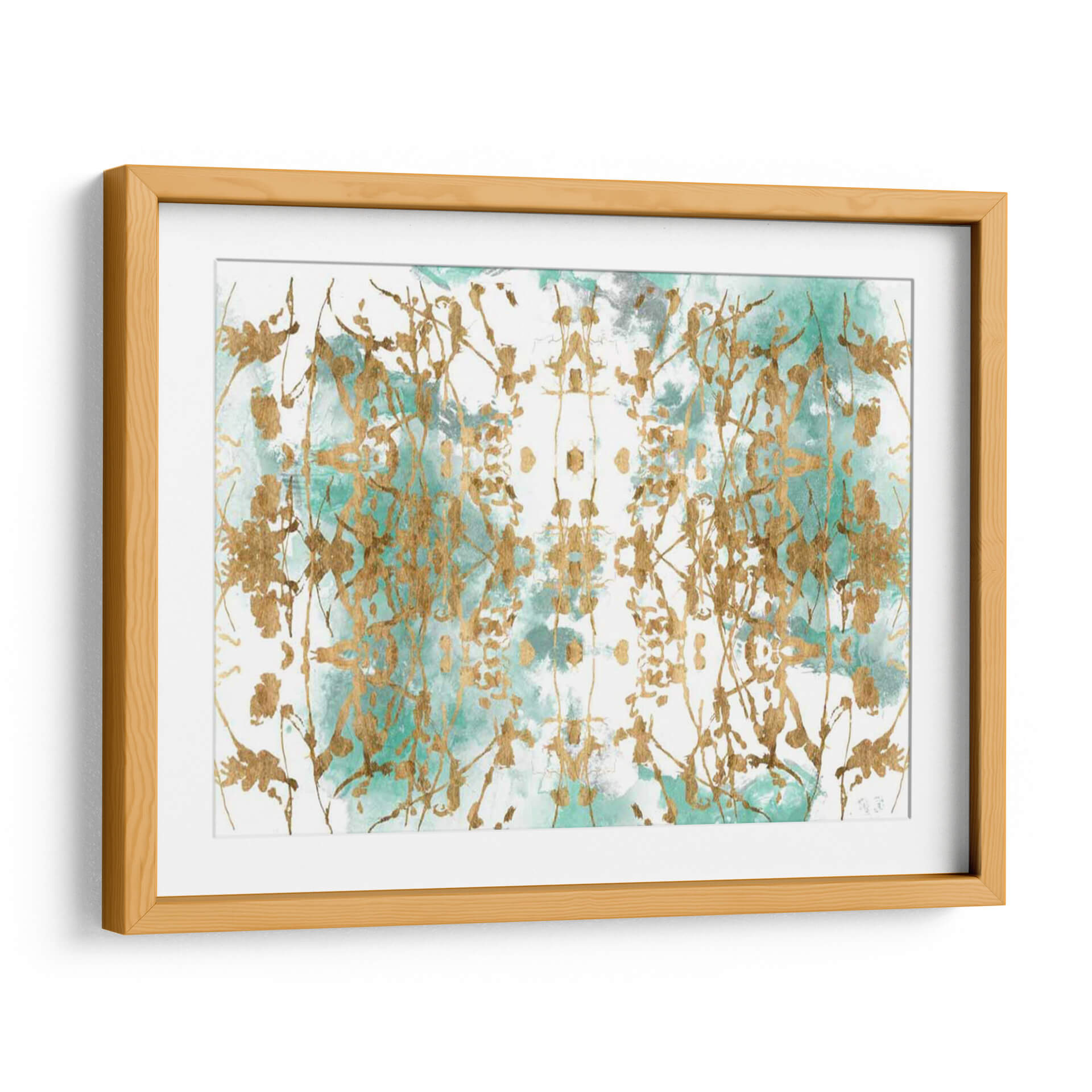 Sumérgete en la etérea belleza de "Espejo Verde I", una obra de arte contemporáneo que fusiona lo orgánico y lo abstracto con un toque de lujo. La pieza se caracteriza por una delicada pincelada dorada que evoca ramas o enredaderas, creando un patrón simétrico y cautivador sobre un fondo de acuarela en tonos verdes y grises. La técnica de aplicación del dorado añade una dimensión de riqueza y sofisticación, haciendo que la luz juegue sobre la superficie y aporte profundidad a la composición. El contraste entre la fluidez del color y la precisión de las líneas doradas genera una sensación de movimiento y equilibrio. "Espejo Verde I" es ideal para añadir un punto focal elegante a cualquier espacio, desde una sala de estar moderna hasta un sereno dormitorio o una oficina inspiradora. Su paleta de colores versátil permite integrarla fácilmente en diversas decoraciones, aportando un aire de calma y refinamiento. Esta obra es una invitación a la contemplación, perfecta para quienes buscan arte que evoque la naturaleza de una forma abstracta y lujosa, añadiendo un toque de distinción y serenidad a tu hogar u oficina. Transforma tus paredes con este cuadro decorativo que combina arte abstracto y elementos naturales de manera sofisticada.