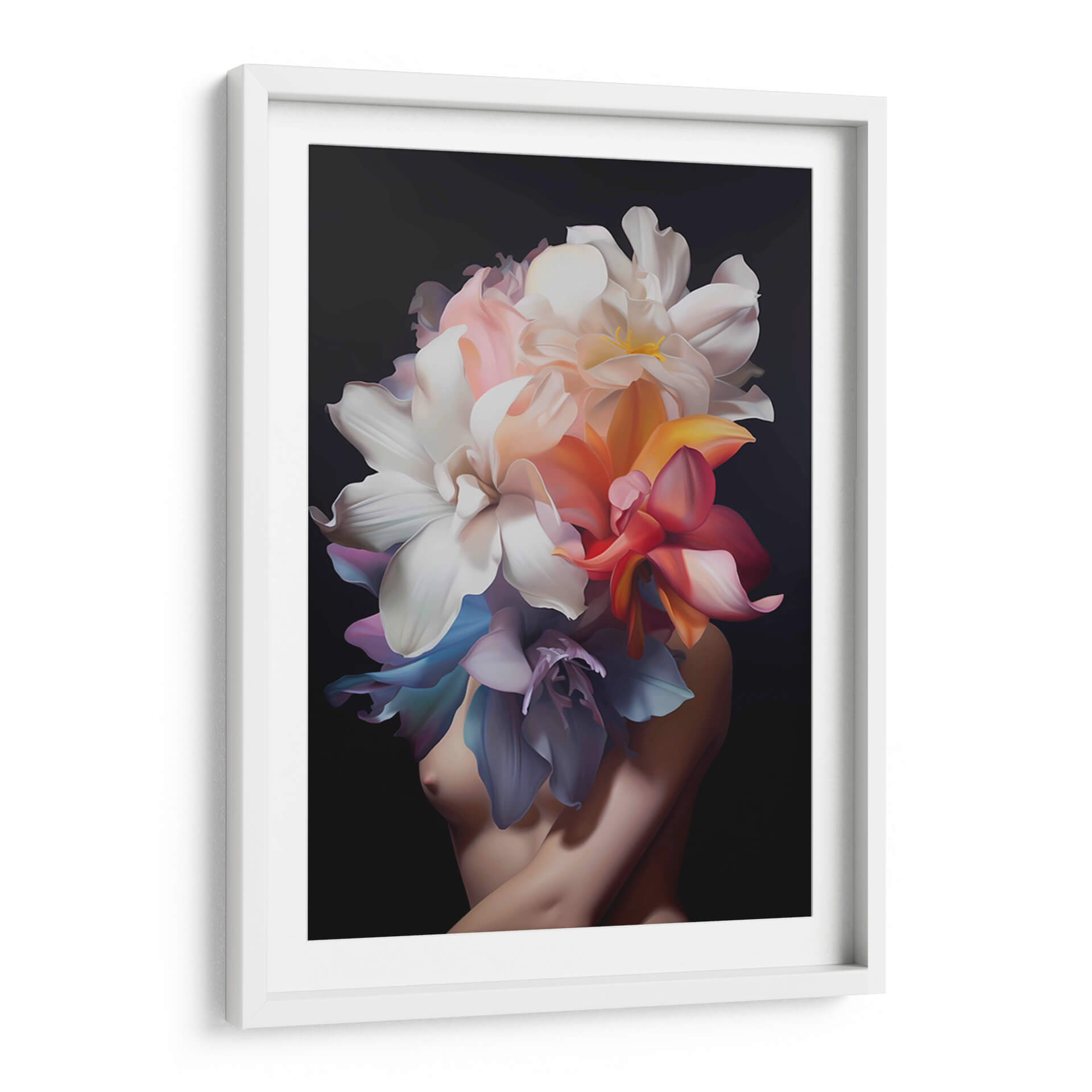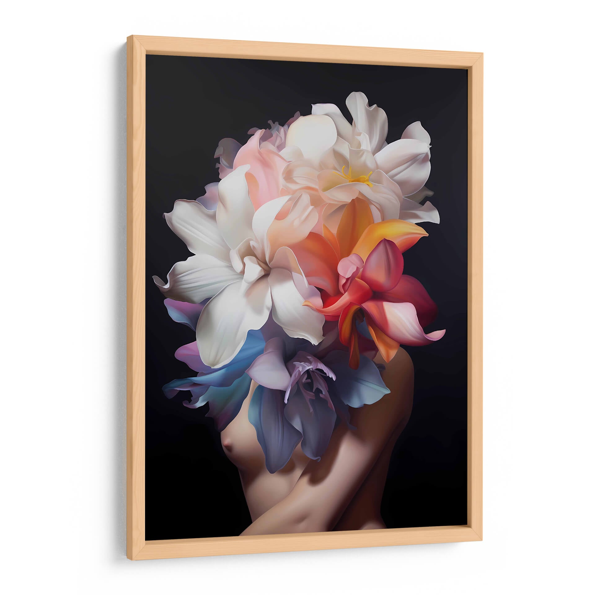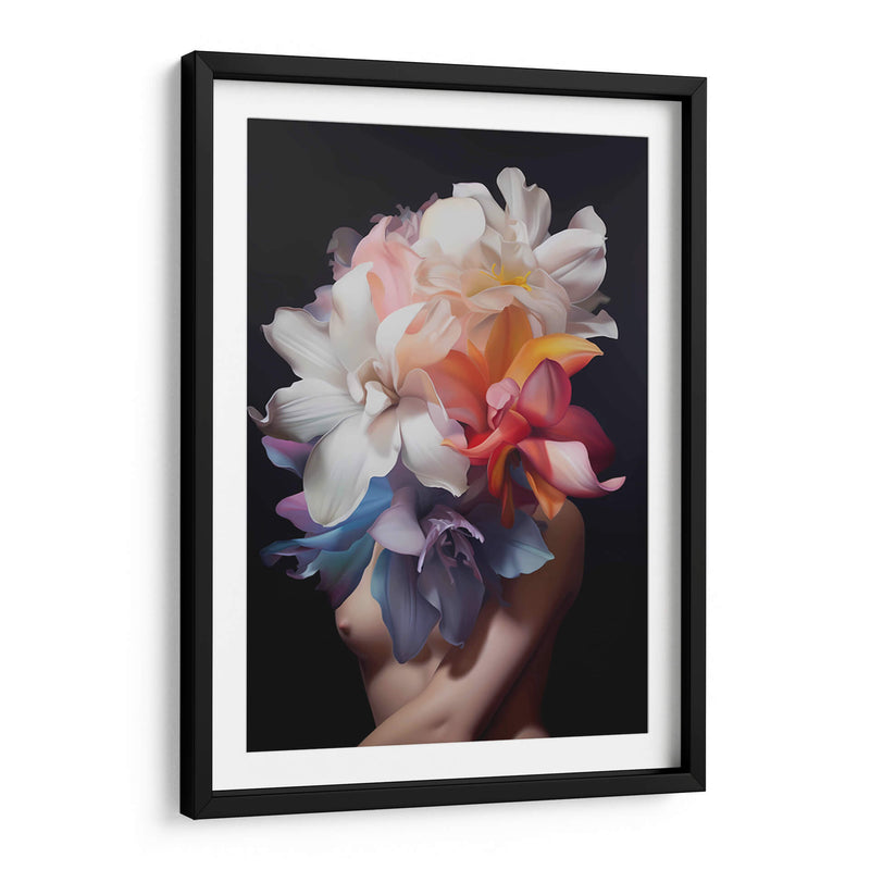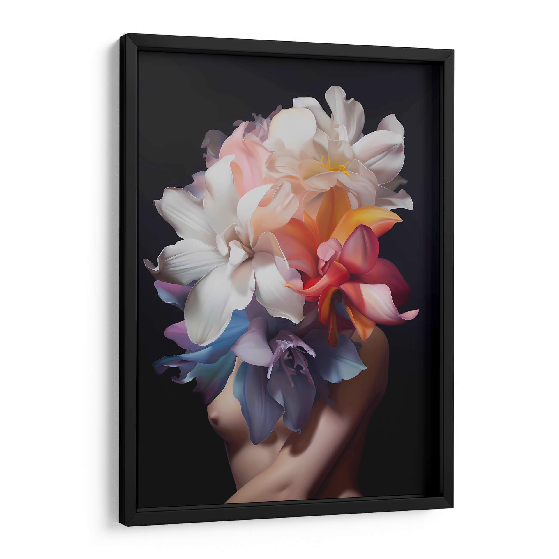 Sumérgete en la cautivadora obra 'Estetica VIII' de Sara Flores, una pieza que fusiona la delicadeza de la flora con la expresión artística del cuerpo humano. Esta obra maestra contemporánea presenta una explosión de flores vibrantes y etéreas que emergen y se entrelazan, creando un contraste fascinante con el fondo oscuro y minimalista. Los pétalos se despliegan en una paleta de colores que va desde blancos puros y rosas suaves hasta naranjas cálidos y azules profundos, añadiendo profundidad y emoción a la composición. La delicada representación de la piel humana, sutilmente insinuada bajo el exuberante dosel floral, aporta una capa de sensualidad y vulnerabilidad, invitando a la contemplación. 'Estetica VIII' es ideal para aquellos que buscan añadir un toque de sofisticación y misterio a su hogar u oficina. Su estilo único, que combina realismo en la representación de las flores con un enfoque conceptual en la figura, la convierte en una pieza de arte decorativo de pared que no pasará desapercibida. Transforma tu espacio con este cuadro decorativo que evoca belleza, naturaleza y la complejidad de la forma humana, creando un ambiente de elegancia y reflexión.