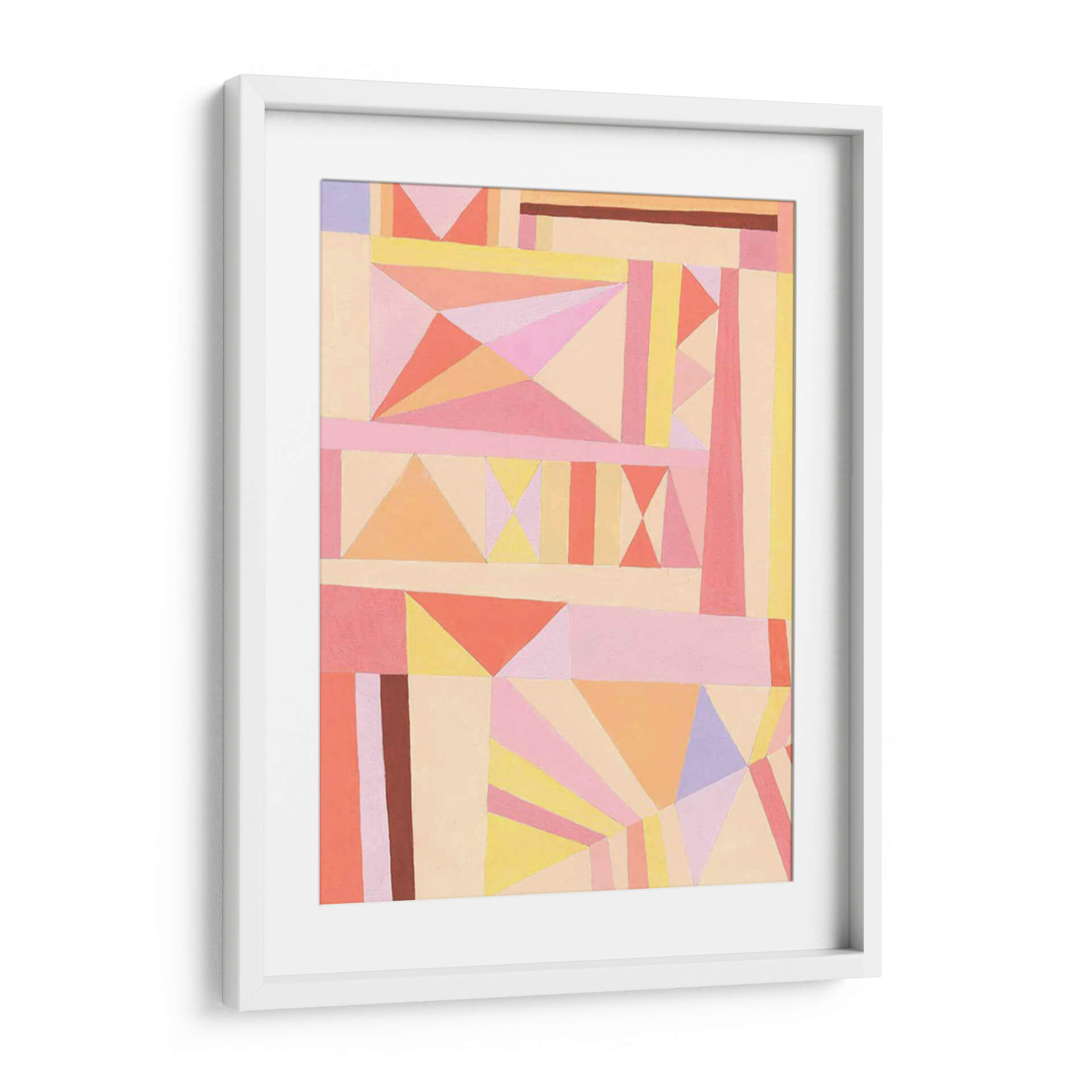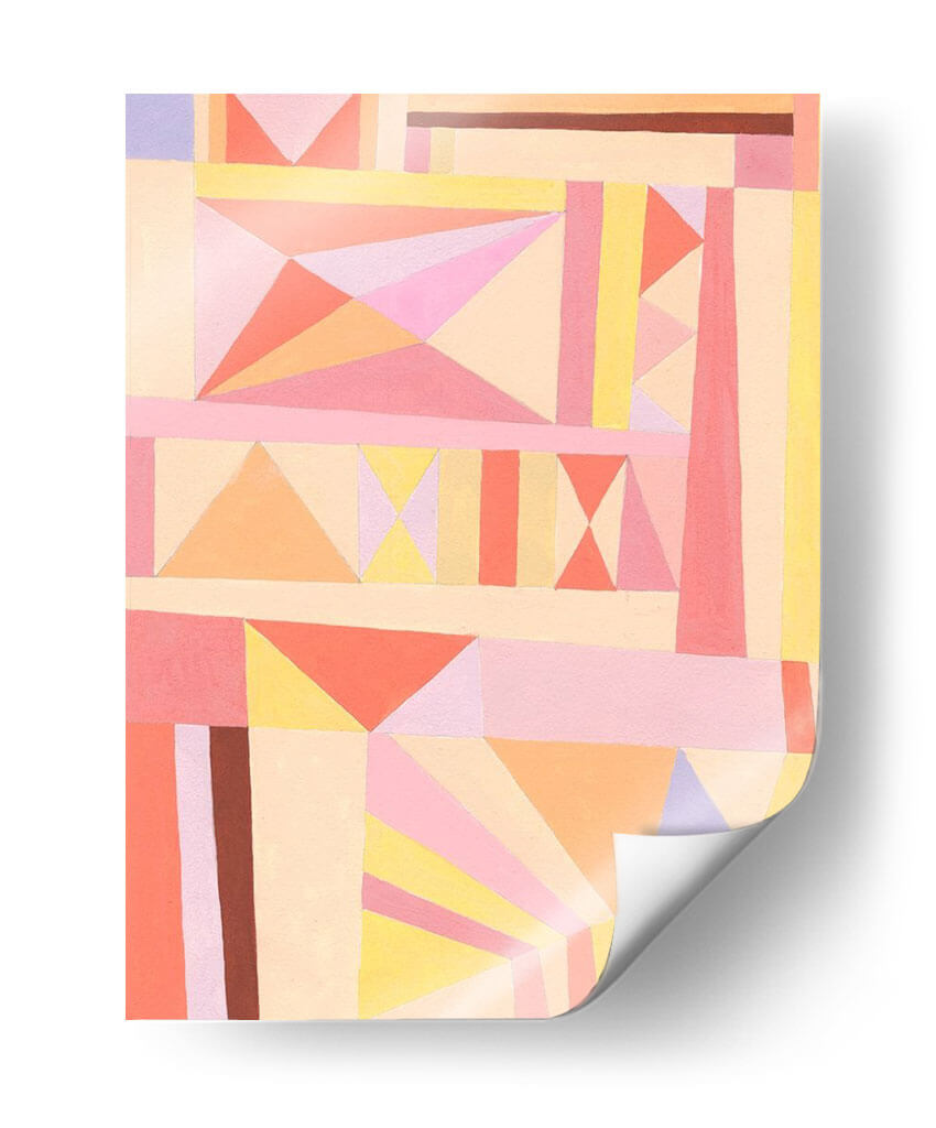 Sumérgete en la delicadeza geométrica de "Estructura De Rubor I", una obra de Nikki Galapon que redefine la abstracción contemporánea. Este cuadro decorativo es una sinfonía de formas y colores pastel que evoca una sensación de calma y sofisticación. La composición, intrincadamente tejida con triángulos, rectángulos y líneas que se entrelazan, crea un patrón visual dinámico pero sereno. La paleta de colores, dominada por suaves tonos rosados, melocotón, amarillo pálido y toques de lavanda, infunde una atmósfera de calidez y tranquilidad, perfecta para cualquier espacio que busque un acento de elegancia discreta. La maestría de Galapon reside en su habilidad para construir una estructura visual compleja que, sin embargo, se siente ligera y aireada. "Estructura De Rubor I" no es solo una pieza de arte, sino una invitación a la contemplación, ideal para añadir un toque de color suave y un diseño moderno a tu sala de estar, dormitorio o estudio. Transforma tu hogar en una galería personal con este vibrante pero sutil cuadro decorativo que irradia una energía positiva y un diseño vanguardista.