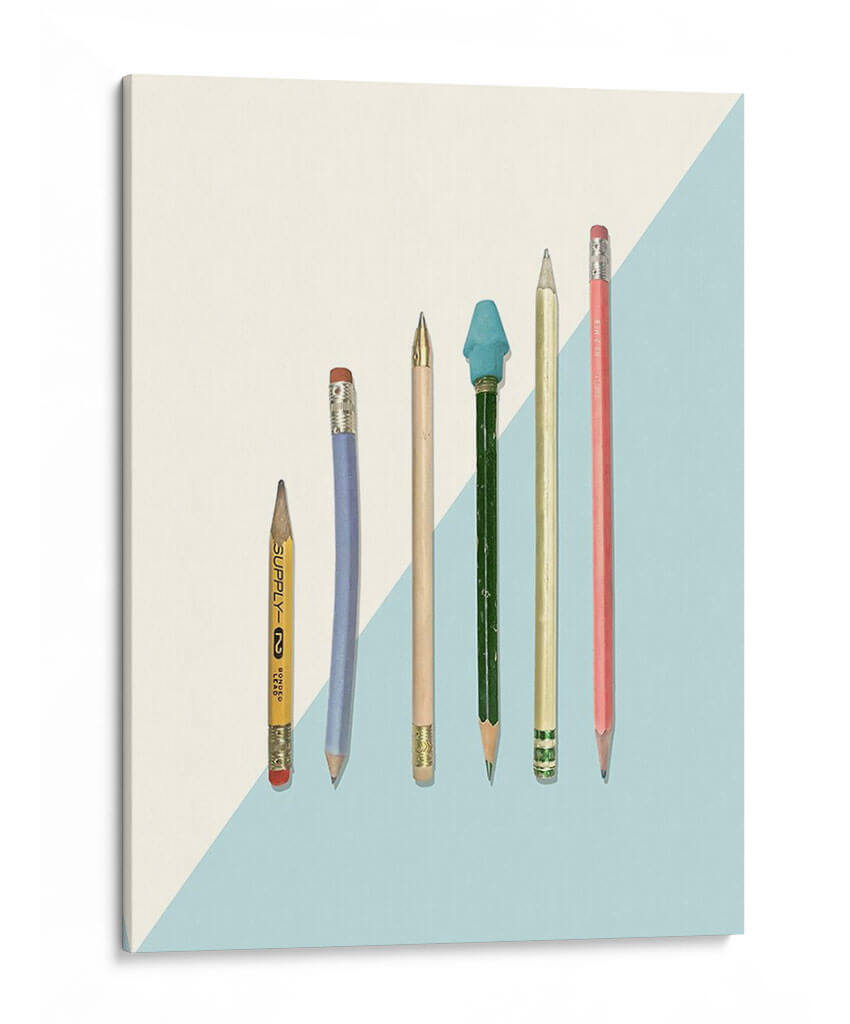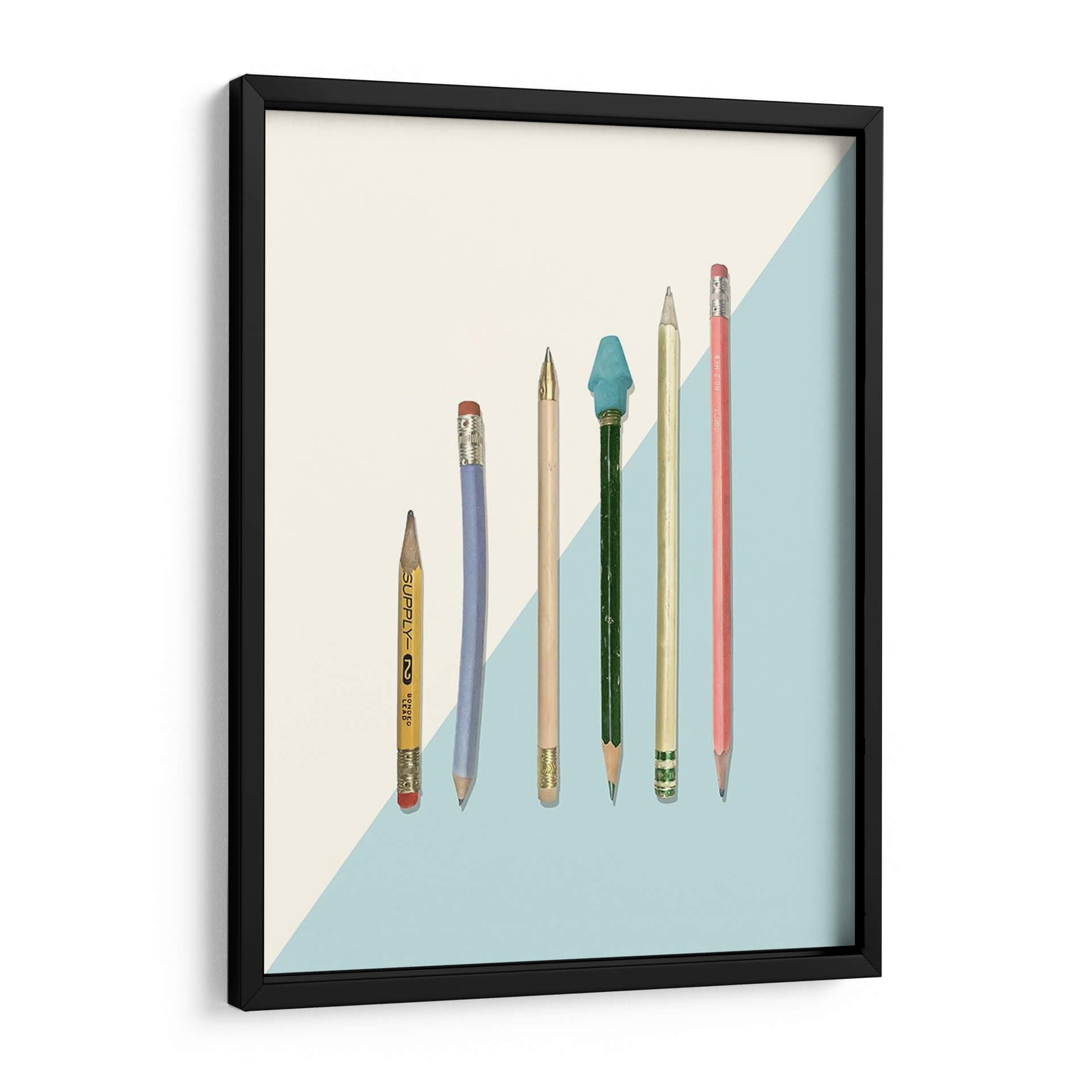Sumérgete en la simplicidad y el encanto de "Estudio De La Escuela I" de Sue Riger, una obra que celebra los objetos cotidianos con una estética contemporánea y minimalista. Este cuadro decorativo presenta una composición cuidada de seis lápices de diferentes colores y tamaños, alineados de forma armónica sobre un fondo dividido en tonos crema y azul pálido. La sutileza de la paleta de colores, con sus tonos suaves y neutros, aporta una sensación de calma y orden, ideal para crear un ambiente sereno en cualquier espacio. La técnica y el estilo de Sue Riger otorgan a estos humildes utensilios de escritura una presencia casi escultórica, invitando a la reflexión sobre la belleza de lo simple. Este lienzo es perfecto para quienes buscan añadir un toque de originalidad y un aire intelectual a su decoración, ya sea en un estudio, una oficina, una sala de estar o incluso un dormitorio. Su diseño limpio y su temática universal lo convierten en una pieza versátil que complementa a la perfección estilos decorativos modernos, escandinavos o minimalistas, aportando un punto de interés visual sin abrumar el espacio. Descubre cómo este cuadro de lápices puede transformar tu hogar u oficina en un lugar más inspirador y estéticamente enriquecedor.