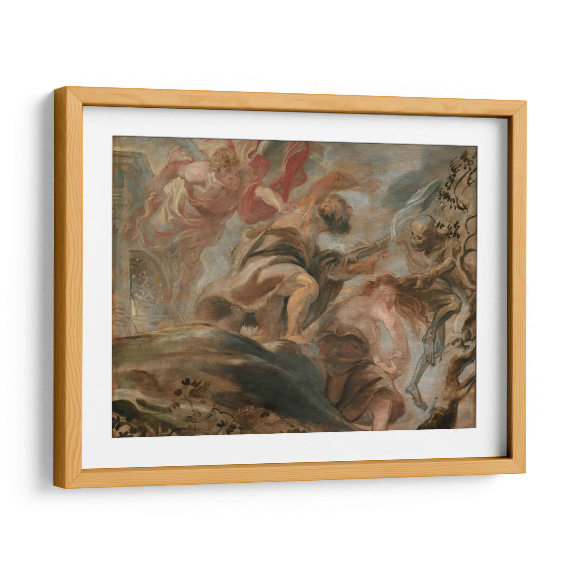 Sumérgete en la intensidad dramática de 'Expulsión del jardín del Edén', una obra maestra capturada por el renombrado artista Peter Paul Rubens. Este cuadro decorativo transporta al espectador a un momento de profunda trascendencia, representando la expulsión bíblica con una energía palpable. La composición dinámica presenta figuras humanas en movimiento, envueltas en túnicas fluidas que acentúan la sensación de urgencia y desesperación. La paleta de colores, dominada por tonos tierra, ocres y toques de rojo vibrante, crea una atmósfera cargada de emoción, que oscila entre la tragedia y la sublime belleza. Los contrastes de luz y sombra añaden profundidad y realismo a la escena, invitando a una contemplación profunda. Ideal para quienes buscan infundir a su hogar u oficina un sentido de narrativa histórica y pasión artística, este cuadro decorativo se convertirá en un punto focal que inspira conversaciones y admiración. Su estilo barroco, lleno de teatralidad y emoción, lo hace perfecto para salones, estudios o comedores donde se desee un toque de sofisticación y profundidad cultural. Deja que la fuerza de esta pieza clásica revitalice tu espacio y conecte con la rica historia del arte.