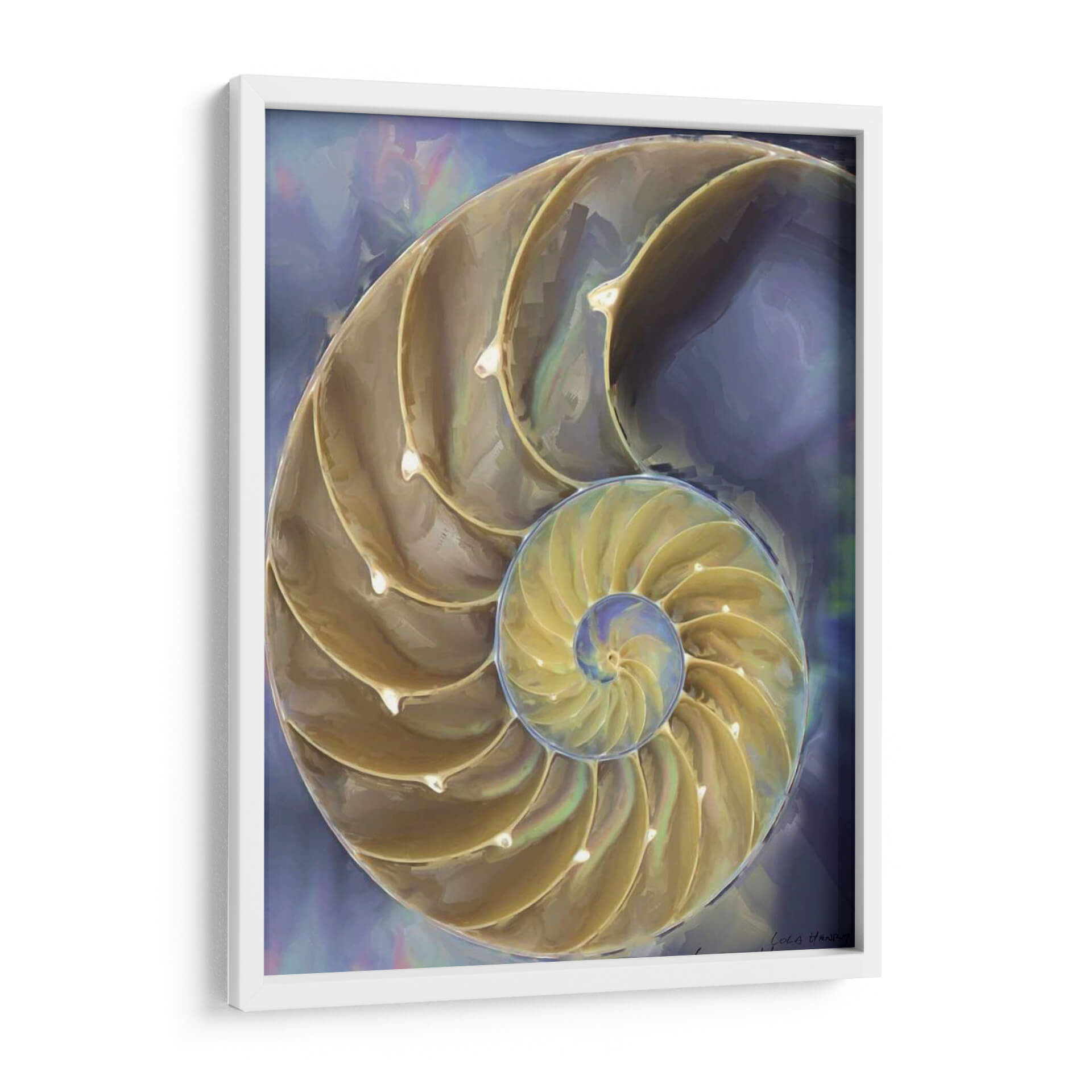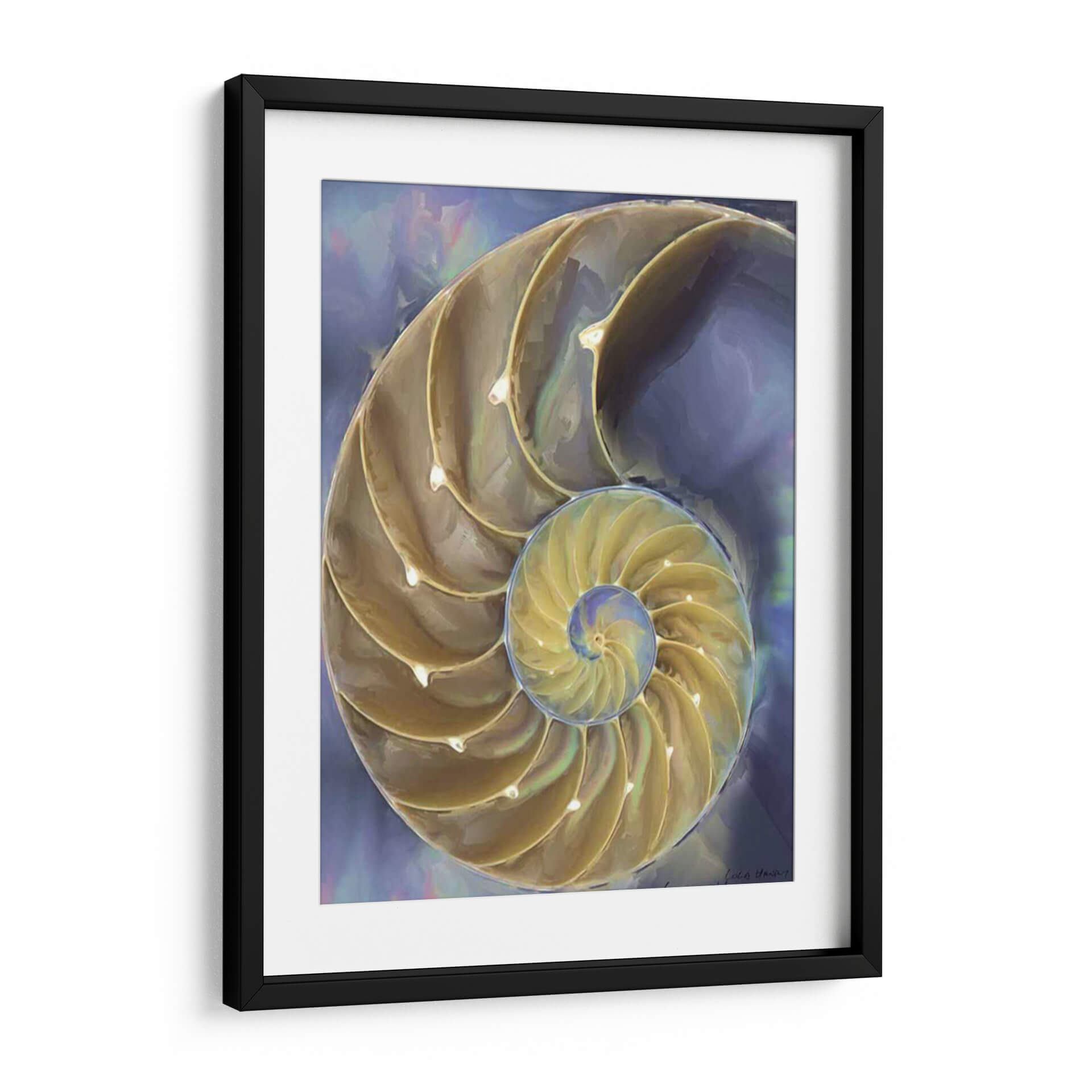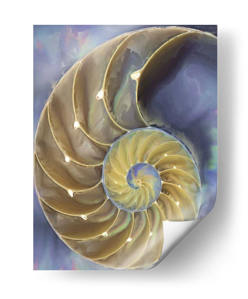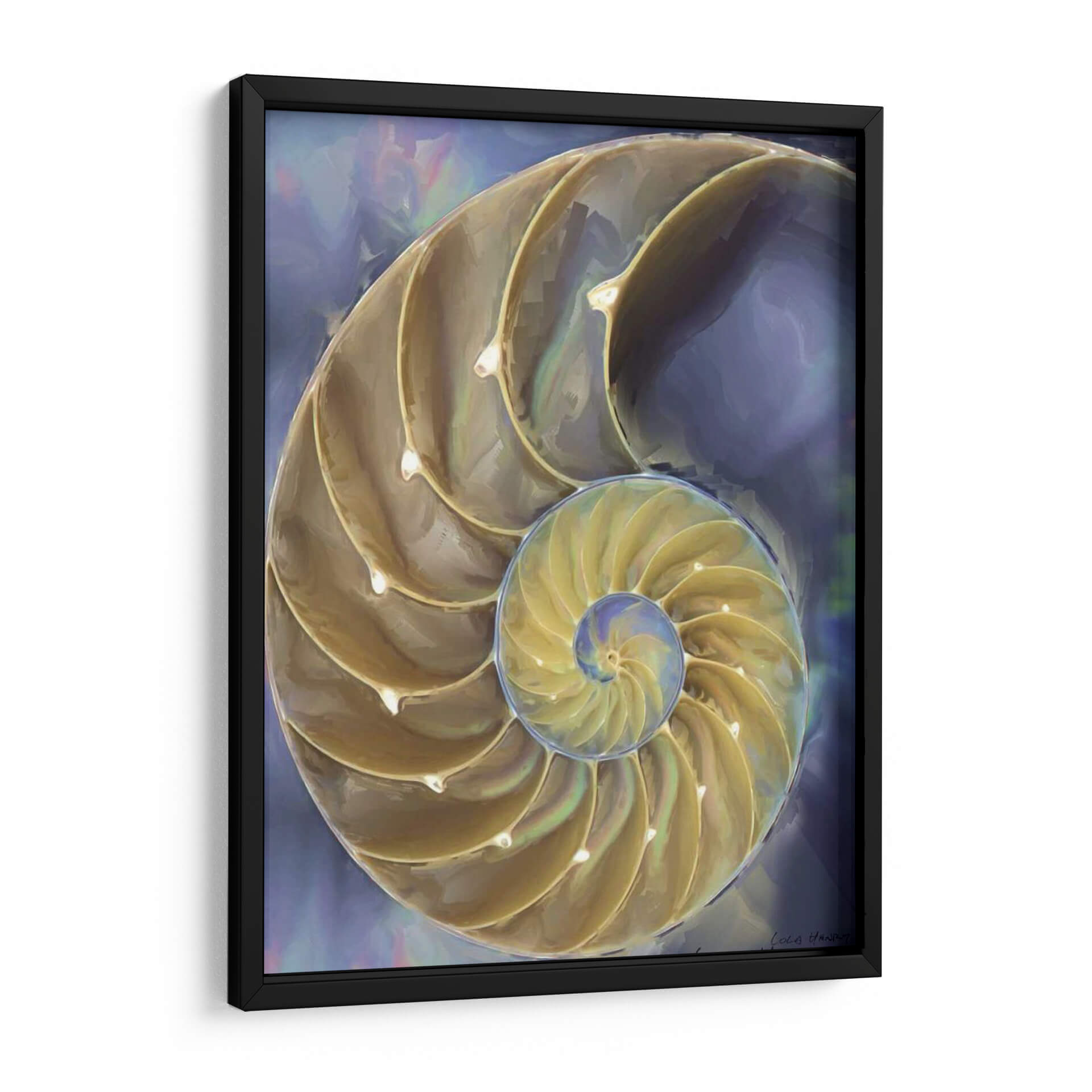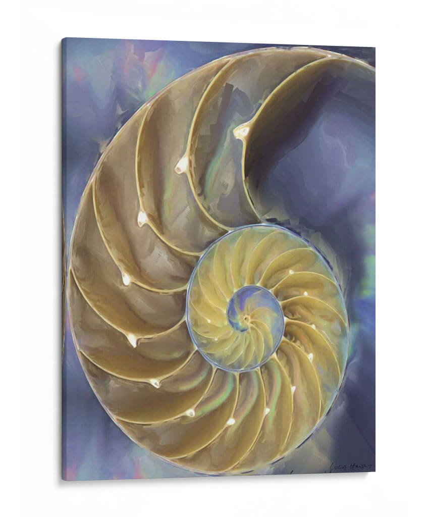 Sumérgete en la fascinante geometría natural con "Extracción de Cáscara II", una obra de arte cautivadora de Lola Henry. Esta pieza visualmente impactante captura la intrincada belleza de una sección de nautilus, revelando sus cámaras perfectas y espirales doradas. La paleta de colores, dominada por tonos tierra cálidos y profundos azules iridiscentes, crea una atmósfera de serenidad y misterio, evocando la armonía del océano y la perfección matemática de la naturaleza. El estilo de pintura, con pinceladas sueltas y texturas sutiles, añade una dimensión contemporánea a este motivo clásico. Es una invitación a contemplar la complejidad y la elegancia que se encuentran en el mundo natural. Ideal para añadir un toque de sofisticación y calma a salones modernos, oficinas o dormitorios, este cuadro decorativo se convierte en un punto focal que inspira reflexión y admiración. La composición centrada y la riqueza de detalles aseguran que "Extracción de Cáscara II" sea una adición memorable a cualquier espacio que busque un equilibrio entre la belleza orgánica y el diseño contemporáneo.