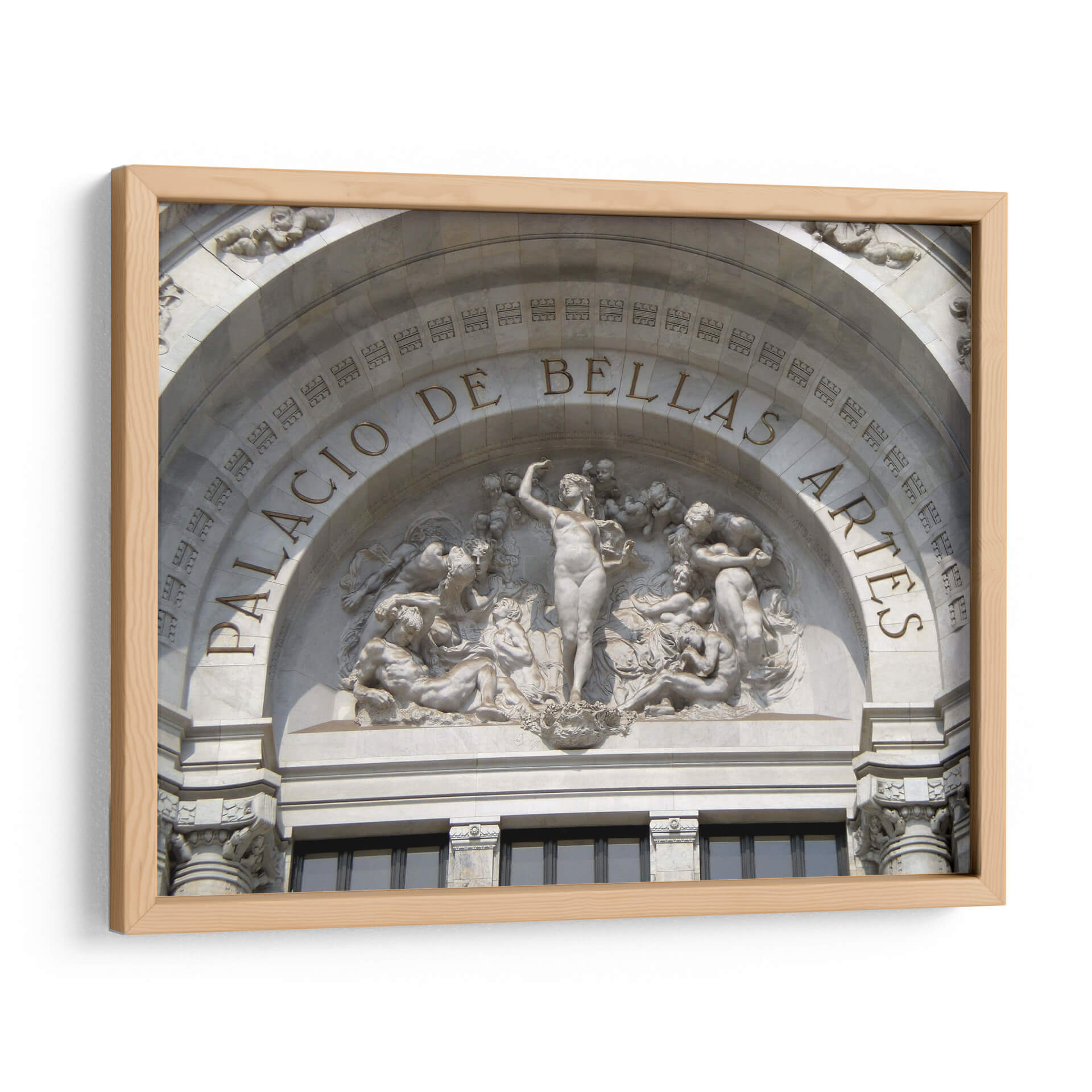 Embellezca su espacio con la majestuosidad arquitectónica capturada en este cuadro decorativo de la "Fachada del Palacio de Bellas Artes". Esta obra evoca la grandeza y el arte neoclásico, presentando un relieve detallado que adorna la entrada de un edificio emblemático. La composición se centra en una figura central femenina, rodeada de esculturas que danzan y se entrelazan, creando una escena dinámica y llena de movimiento. La paleta de colores neutros y las texturas pétreas de la escultura aportan una sensación de atemporalidad y sofisticación. Ideal para quienes aprecian la arquitectura clásica, el arte escultural y desean infundir un aire de cultura y elegancia en su hogar u oficina. Este cuadro decorativo es perfecto para complementar decoraciones de estilo clásico, académico o incluso para añadir un toque de historia a un interior moderno. Imagine cómo esta pieza podría convertirse en el punto focal de su sala de estar, estudio o vestíbulo, invitando a la admiración y la conversación. Añada un toque de arte monumental a su vida cotidiana y celebre la belleza de la forma humana y la arquitectura grandiosa.