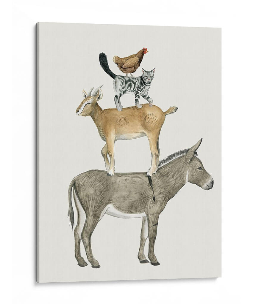 Inyecta una dosis de encanto juguetón y originalidad a tu espacio con "Familia De Tierras De Cultivo I", una obra de arte digital que captura la imaginación. Esta pieza única presenta una ingeniosa composición de animales apilados: un robusto burro en la base, sobre él una grácil cabra, coronada por un travieso gato y, en la cima, una gallina. La paleta de colores se centra en tonos tierra y naturales, con sutiles contrastes que realzan cada figura, creando una atmósfera cálida y acogedora. El estilo, que evoca ilustraciones botánicas clásicas con un toque contemporáneo, resulta ideal para añadir un punto de interés visual en cualquier habitación. Ya sea que busques animar una sala de estar, añadir carácter a una oficina o dar un toque divertido a un dormitorio infantil, este cuadro decorativo es una elección excepcional. Su narrativa visual fomenta la conversación y añade una capa de personalidad a tu decoración, demostrando que el arte puede ser tanto estéticamente agradable como conceptualmente intrigante.