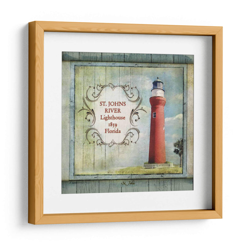 Embárquese en un viaje visual hacia la costa con "Faro De Florida Xi", una obra de arte que captura la majestuosidad y el encanto histórico de un faro icónico. Esta pieza, con su característico tono rojizo y su silueta esbelta, se erige sobre una base verde y un cielo azulado salpicado de nubes, evocando una sensación de calma y aventura costera. El fondo, diseñado con un estilo rústico de madera envejecida en tonos celestes y grises, añade un toque de autenticidad y nostalgia. Un medallón central, adornado con filigranas, presenta la inscripción "ST. JOHNS RIVER Lighthouse 1859 Florida", transportándonos a una época pasada y añadiendo un elemento narrativo a la composición. La paleta de colores, que combina el vibrante rojo del faro con los suaves tonos del cielo y la textura de la madera, crea un equilibrio visual atractivo y sereno. Este cuadro decorativo es ideal para añadir un punto focal con carácter a salones, estudios o cualquier espacio que busque una conexión con el mar y la historia marítima. Su estilo único, que mezcla lo histórico con un toque artístico contemporáneo, lo convierte en una adición memorable y distintiva a cualquier colección de arte de pared.