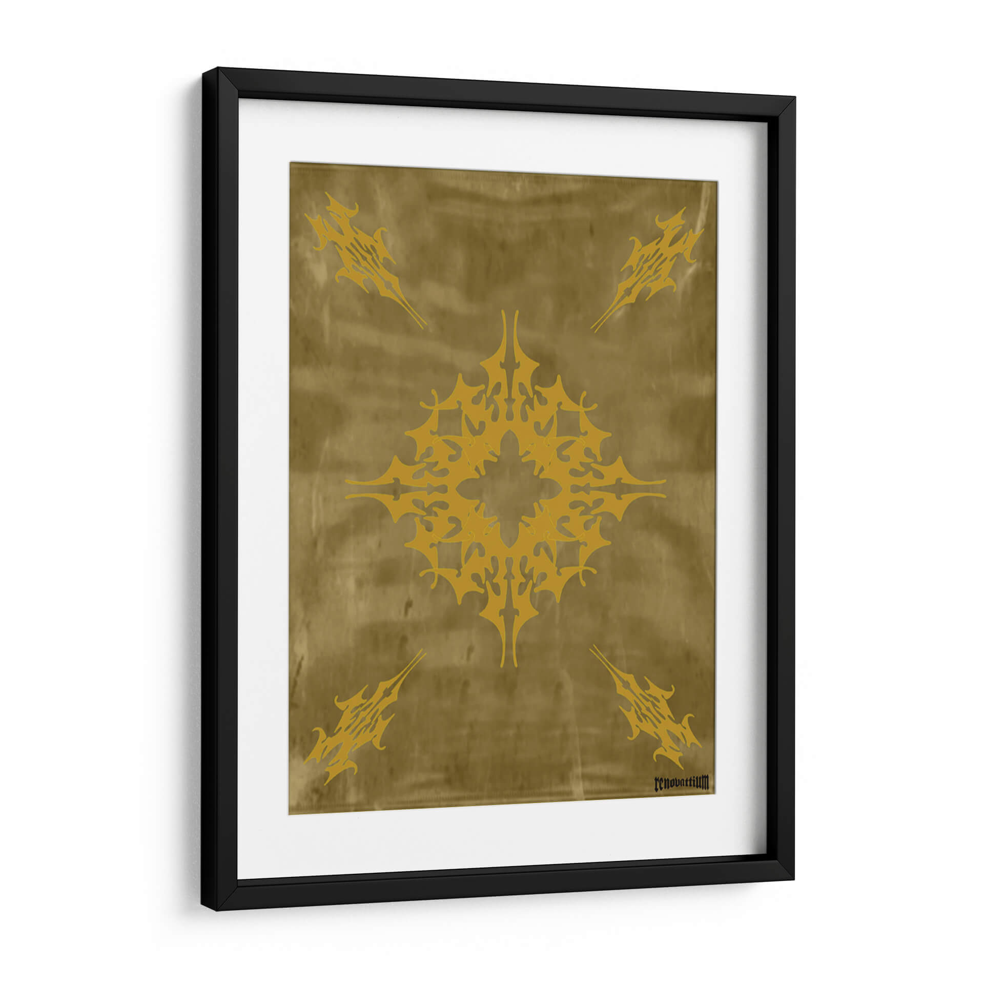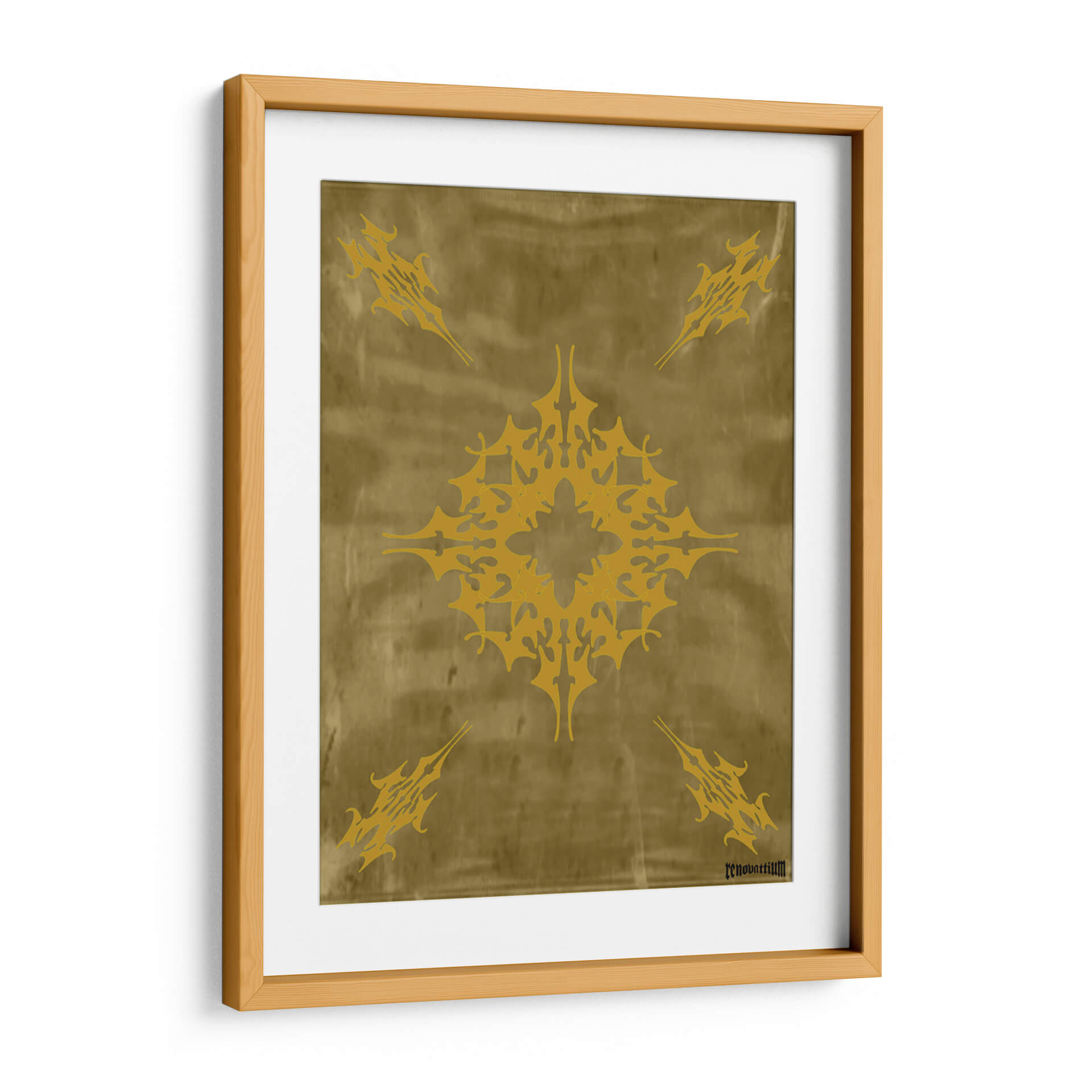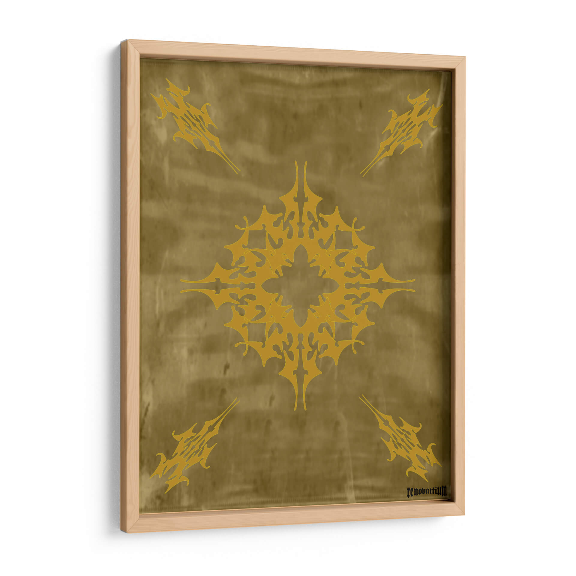 Descubre "Flor de Oro", una obra de arte abstracto de Carlos Pixley que evoca elegancia y misterio. Este cuadro decorativo presenta un intrincado diseño central en tonos dorados vibrantes, que recuerda a un mandala estilizado o un símbolo ancestral. Se repite este motivo en las cuatro esquinas, creando una composición simétrica y armónica sobre un fondo texturizado que imita el cuero o un pergamino envejecido en tonalidades ocres y doradas. La paleta de colores cálidos y terrosos, con el protagonista dorado, aporta una sensación de lujo, calidez y sofisticación a cualquier espacio. La atmósfera que transmite es una de misticismo y poder, invitando a la contemplación. Ideal para salas de estar modernas, comedores o estudios que busquen un toque de distinción y un punto focal impactante. Este cuadro abstracto es perfecto para quienes aprecian el diseño geométrico con un aire orgánico y atemporal, añadiendo un elemento de singularidad y riqueza visual a la decoración de paredes. Transforma tu hogar u oficina con esta pieza única que combina arte contemporáneo y una estética inspirada en lo etéreo y lo terrenal.
