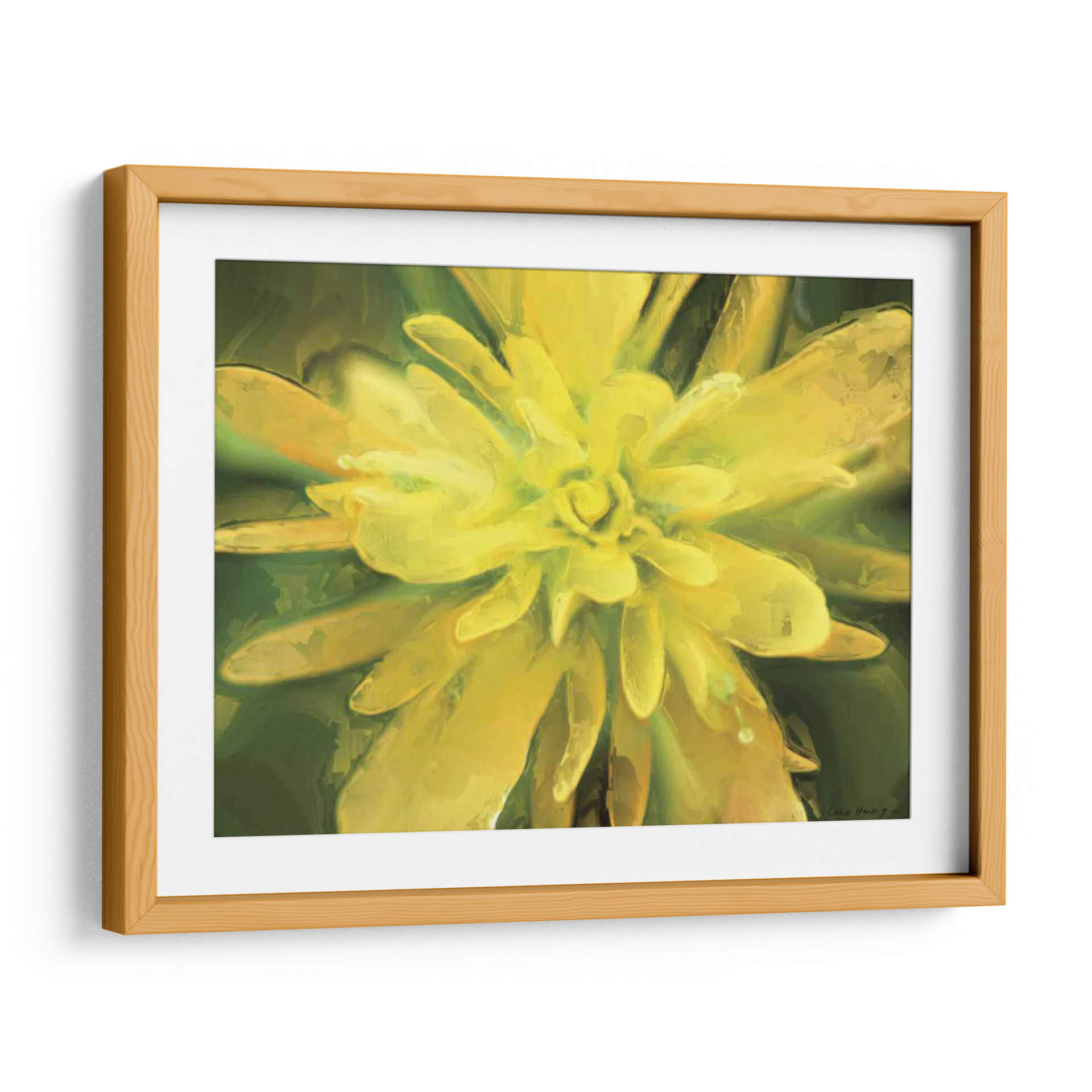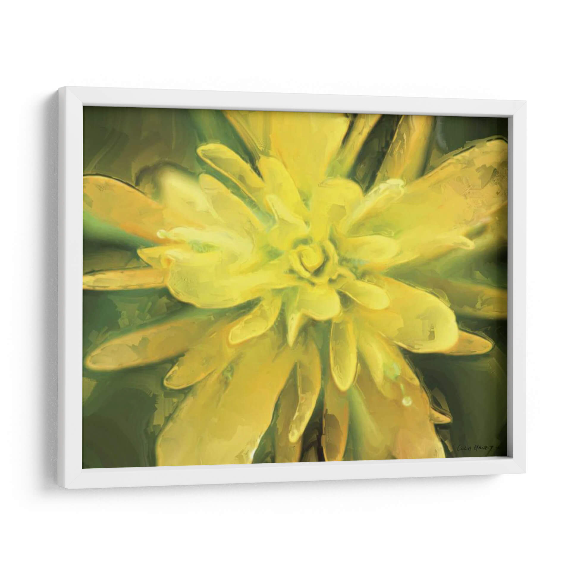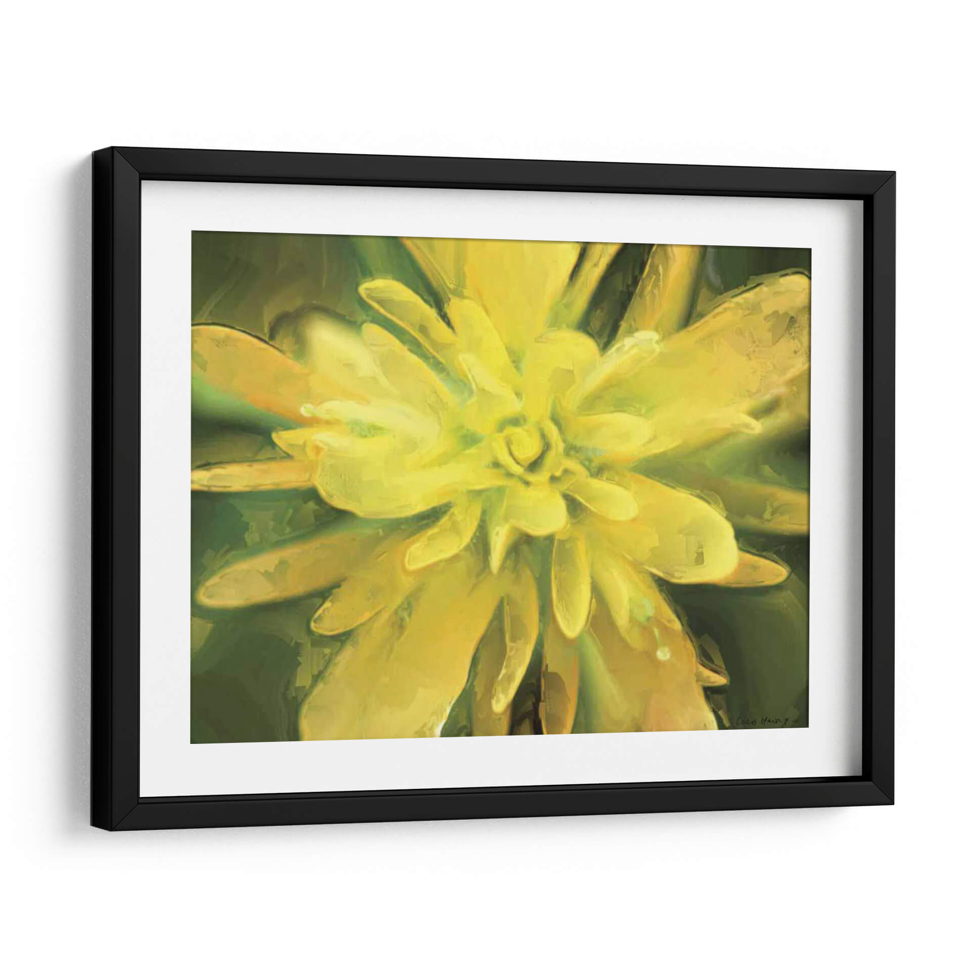 Sumérgete en la vibrante belleza de "Flor De Pintura Vii", una cautivadora obra de arte de Lola Henry que celebra la delicadeza de la naturaleza con un toque contemporáneo. Esta pieza captura un primer plano expansivo de un capullo floral, sus pétalos se abren en un estallido de tonos amarillos y dorados que irradian calidez y vitalidad. El estilo pictórico, con pinceladas visibles y una textura rica, confiere una cualidad casi tangible a la flor, invitando al espectador a admirar cada detalle. El fondo, compuesto por sutiles gradaciones de verde oscuro y esmeralda, crea un contraste sereno que realza la luminosidad del sujeto principal. "Flor De Pintura Vii" es más que una simple representación; es una invitación a la contemplación, una explosión de color y vida que puede transformar cualquier espacio. Ideal para añadir un punto focal luminoso a una sala de estar, aportar serenidad a un dormitorio o infundir energía creativa en una oficina. Este cuadro decorativo es perfecto para quienes buscan infundir alegría y un toque de optimismo natural en su entorno.