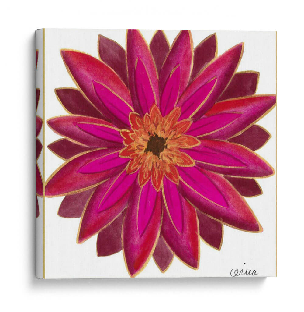 Transforma tu espacio con "Flores Brillantes III", una cautivadora obra de arte floral que irradia vida y color. Esta pieza, creada por la talentosa artista June Erica Vess, presenta una exuberante flor en tonos vibrantes de rosa fucsia, magenta y toques de naranja cálido, realzada por delicados contornos dorados que le otorgan un aire de elegancia. La composición, centrada en la belleza intrínseca de la flor, invita a la contemplación y añade un toque de sofisticación a cualquier ambiente. Su estilo contemporáneo y la energía que emana la convierten en la elección perfecta para quienes buscan infundir alegría y vitalidad en su hogar u oficina. Imagina este cuadro decorativo como el punto focal de tu sala de estar, aportando un estallido de color y un recordatorio de la belleza natural. También sería una adición encantadora a un dormitorio o un espacio de trabajo, creando una atmósfera inspiradora y positiva. "Flores Brillantes III" no es solo una imagen, es una experiencia visual que captura la esencia de la primavera y la exuberancia de la naturaleza en su máxima expresión, un lienzo decorativo que promete realzar la estética de tu hogar con un toque artístico y moderno.