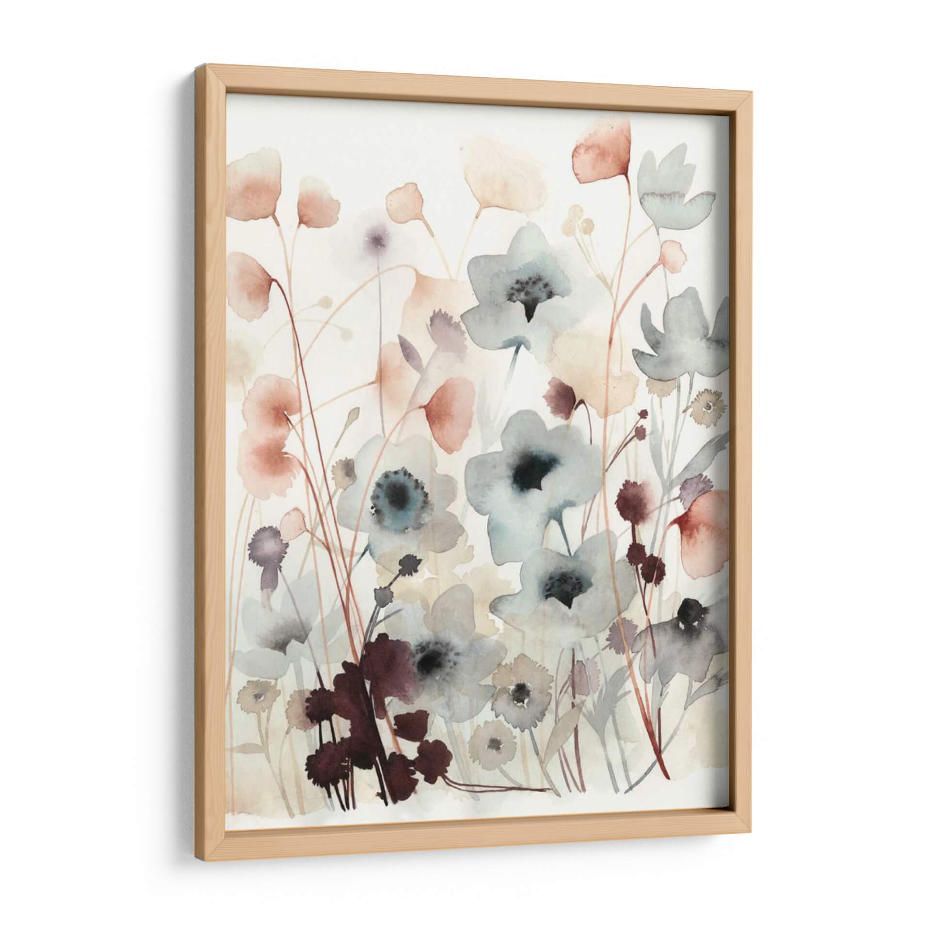 Adéntrate en un jardín etéreo con 'Flores Desnudas II' de Grace Popp, una obra de arte que captura la delicadeza de la naturaleza con una técnica de acuarela sutil y cautivadora. Esta pieza presenta una composición floral abstracta donde las formas orgánicas se entrelazan en una danza suave de colores pastel y tonos tierra. Los pétalos parecen flotar sobre un fondo luminoso, evocando una sensación de paz y serenidad. Los matices de rosa pálido, azul grisáceo y toques de borgoña profundo se mezclan armónicamente, creando una atmósfera soñadora y contemplativa. El estilo evocador de Popp transforma flores sencillas en expresiones poéticas de belleza efímera. Ideal para añadir un toque de sofisticación tranquila a tu sala de estar, dormitorio o incluso a un espacio de oficina que busque un respiro visual. Este cuadro decorativo es perfecto para aquellos que aprecian el arte contemporáneo con una sensibilidad romántica y una ejecución magistral. Deja que la delicadeza de estas flores transforme tu hogar en un oasis de calma y estilo.
