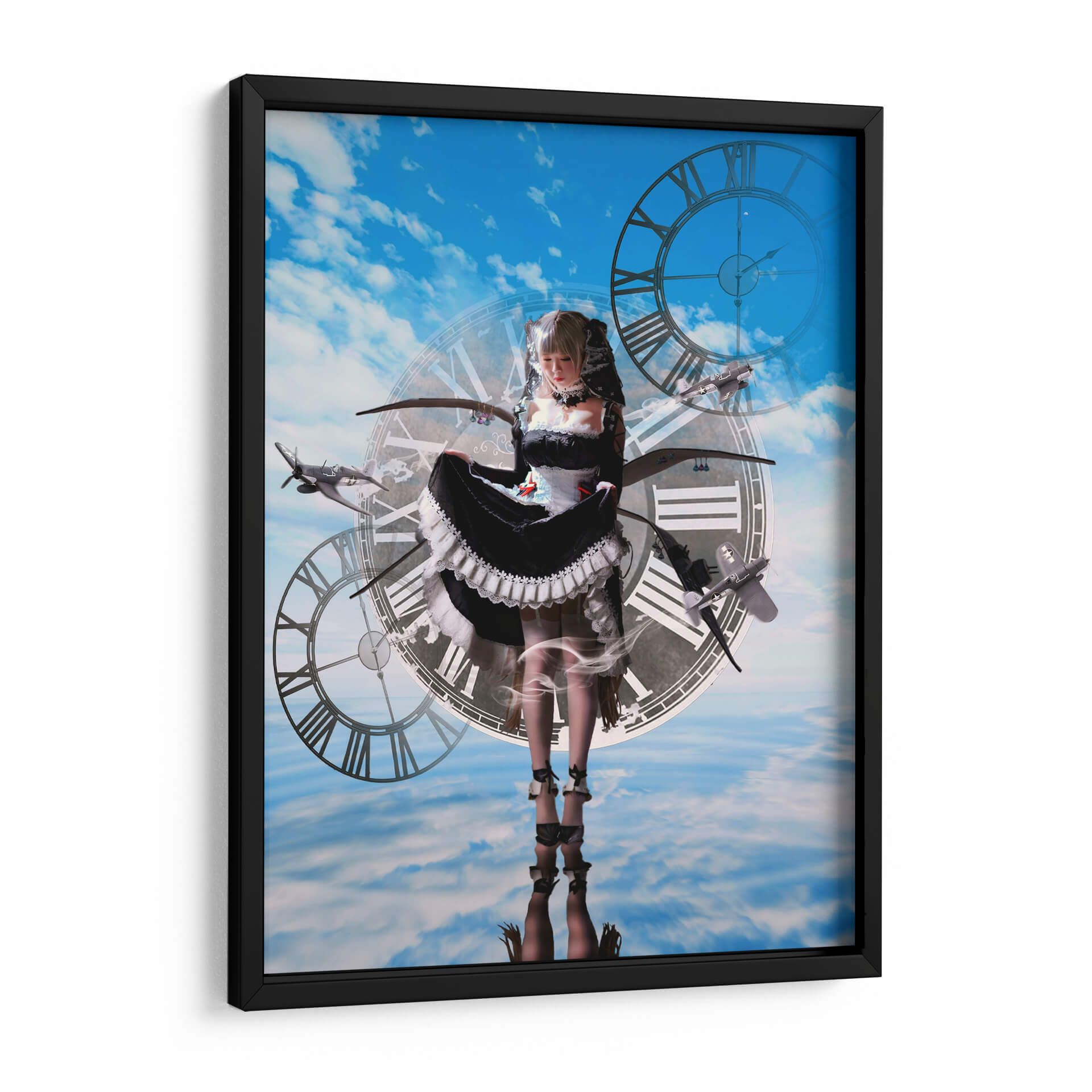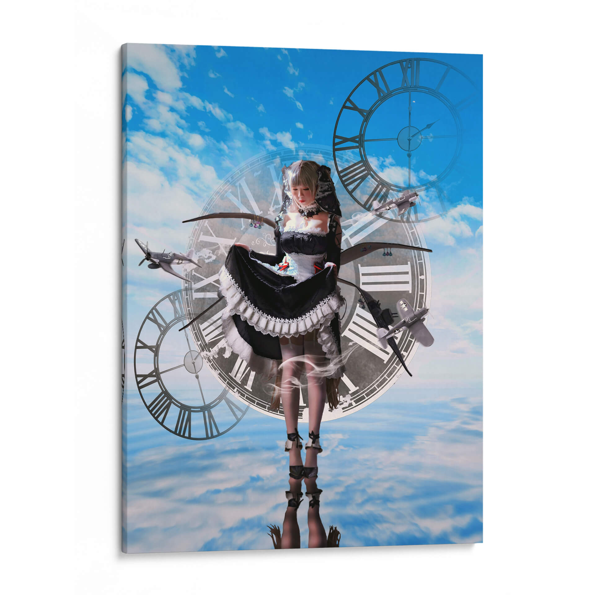 Sumérgete en un universo surrealista con "Formidable (Azur Lane)", una obra de arte digital que desafía el tiempo y la realidad. Esta cautivadora pieza presenta a una figura femenina etérea, vestida con un atuendo que evoca una estética clásica y marinera, flotando en un cielo despejado y azul adornado con nubes tenues. El fondo está dominado por relojes gigantes con números romanos, sugiriendo la transitoriedad del tiempo o un plano de existencia alternativo. Aviones de época surcan el cielo, añadiendo un toque de aventura y misterio a la escena. La composición, aunque detallada, mantiene una atmósfera onírica y serena, invitando a la contemplación. Los colores vibrantes del cielo azul contrastan sutilmente con los tonos más oscuros de los relojes y la figura central, creando un equilibrio visual impactante. Este cuadro decorativo es perfecto para quienes buscan una pieza que inspire imaginación y añada un toque de fantasía a su hogar u oficina. Ideal para salas de estar modernas, estudios o cualquier espacio que se beneficie de una narrativa visual única y evocadora. Deja que "Formidable" sea el punto focal que despierte conversaciones y transporte a tus invitados a un mundo de ensueño.
