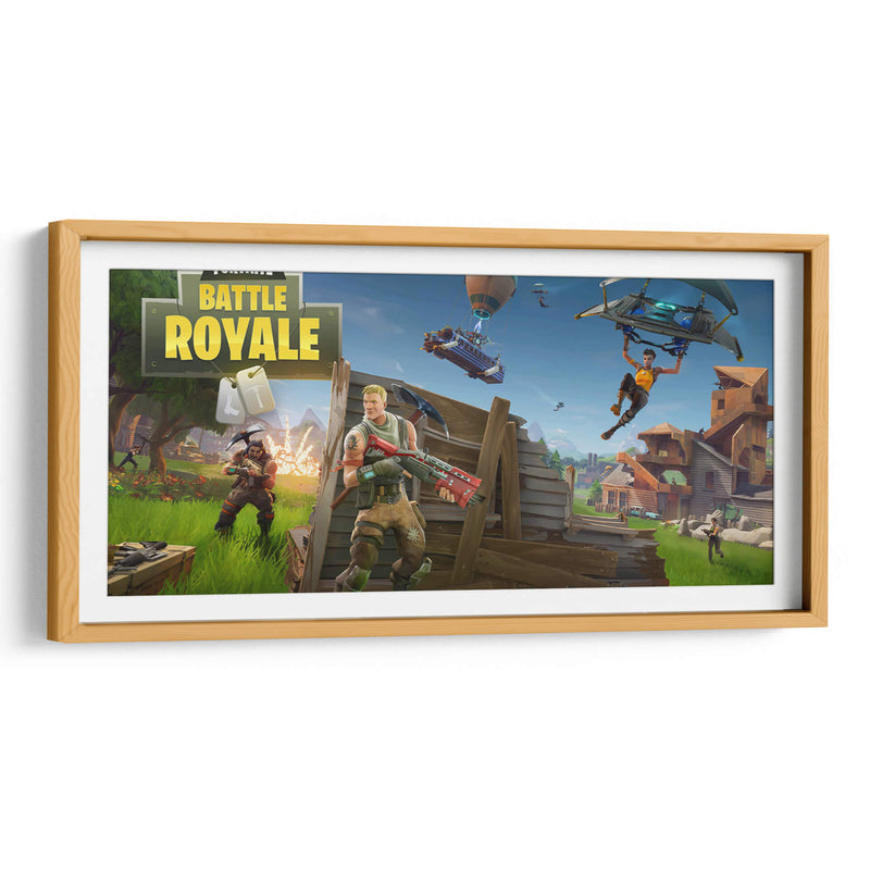 Sumérgete en la acción trepidante de Fortnite Battle Royale con este vibrante cuadro decorativo, una pieza de arte digital que captura la esencia de uno de los videojuegos más populares del mundo. La obra presenta una escena dinámica con personajes icónicos en pleno combate, rodeados de un entorno detallado que evoca la emoción y la estrategia del juego. Predominan los colores vivos y contrastantes, con verdes intensos en el paisaje, azules claros en el cielo y toques de rojo y amarillo en los elementos clave, creando una atmósfera de energía y adrenalina. La composición está repleta de acción, con figuras en movimiento, vehículos aéreos y estructuras que añaden profundidad y realismo a la escena. Este cuadro es perfecto para los aficionados a los videojuegos y para aquellos que buscan añadir un toque de entretenimiento y color a sus espacios, como una sala de estar moderna, una sala de juegos o una oficina. Transforma tu habitación en un campo de batalla épico y vive la intensidad de Fortnite cada día. Ideal para regalar a gamers o para coleccionistas de arte inspirado en la cultura pop.