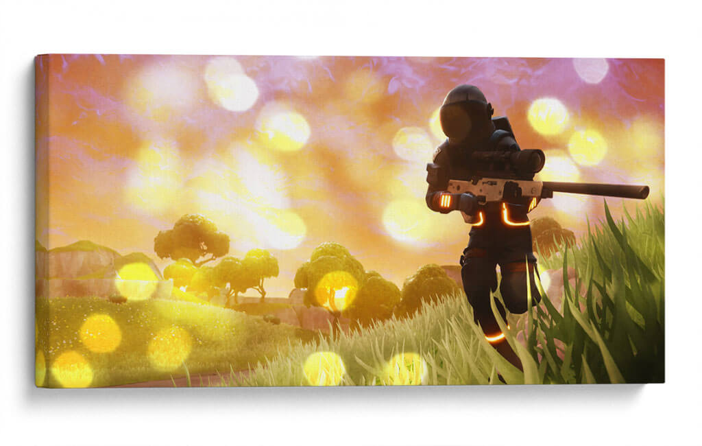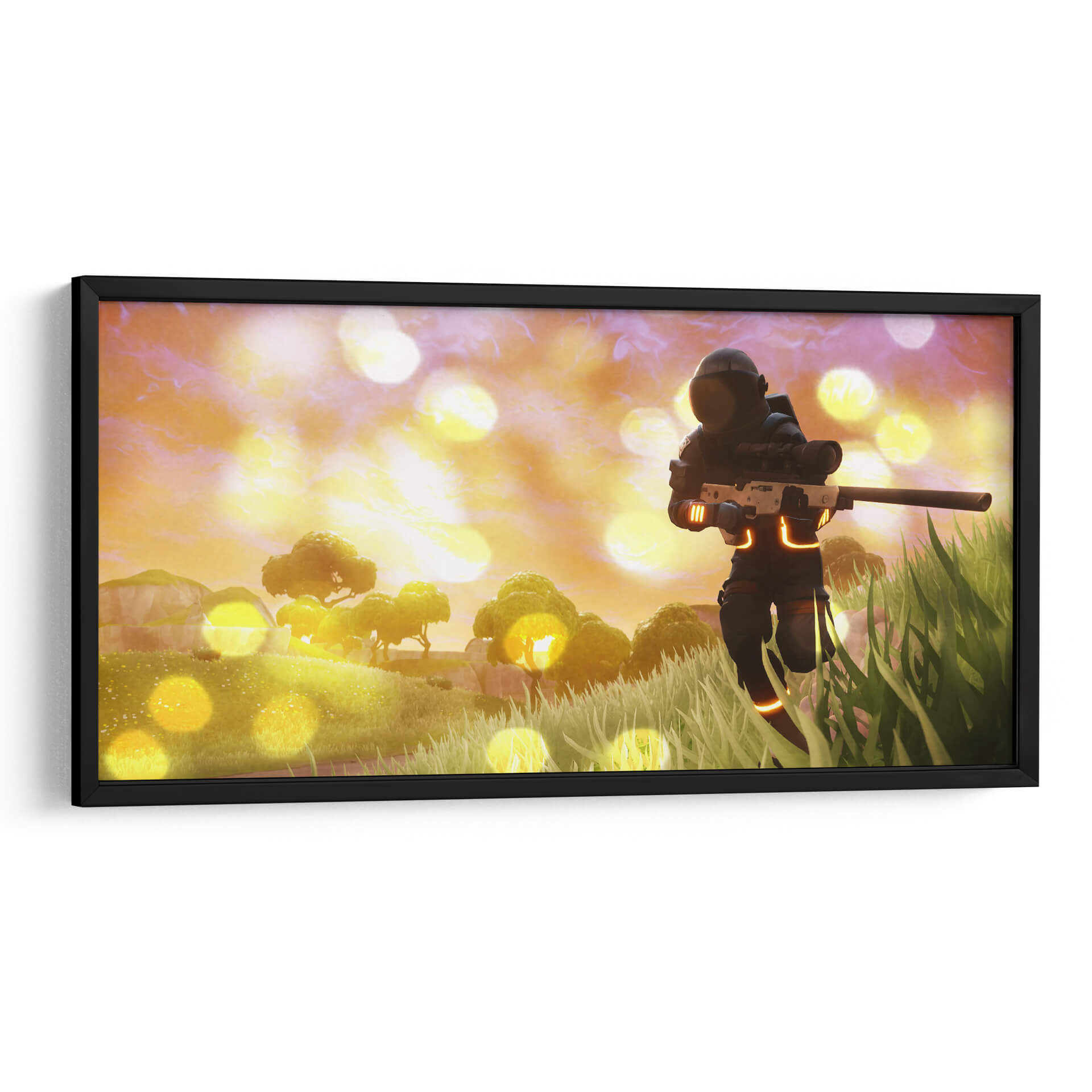 Sumérgete en la acción con este cautivador cuadro decorativo que captura la esencia de 'Fortnite on a mission'. La obra presenta una figura solitaria armada con un rifle de francotirador, posicionada estratégicamente en un entorno vibrante y ligeramente desenfocado. La paleta de colores se domina por cálidos tonos anaranjados y amarillos, evocando la luz de un atardecer o un amanecer lleno de energía y expectación. Las luces circulares bokeh añaden un toque etéreo y moderno, creando una atmósfera de inmersión visual. El diseño, que evoca el estilo de videojuegos de aventura y estrategia, es ideal para espacios juveniles, salas de juegos o cualquier habitación que busque un toque dinámico y audaz. Este cuadro decorativo no solo es una pieza de arte, sino una declaración de intenciones, perfecta para aquellos que aprecian la estética digital y la narrativa visual. Añade un punto focal intrigante y lleno de carácter a tu hogar u oficina, inspirando aventura y determinación en cada mirada. Su composición dinámica y los detalles sutiles lo convierten en un elemento decorativo único que transformará cualquier pared en una escena memorable.