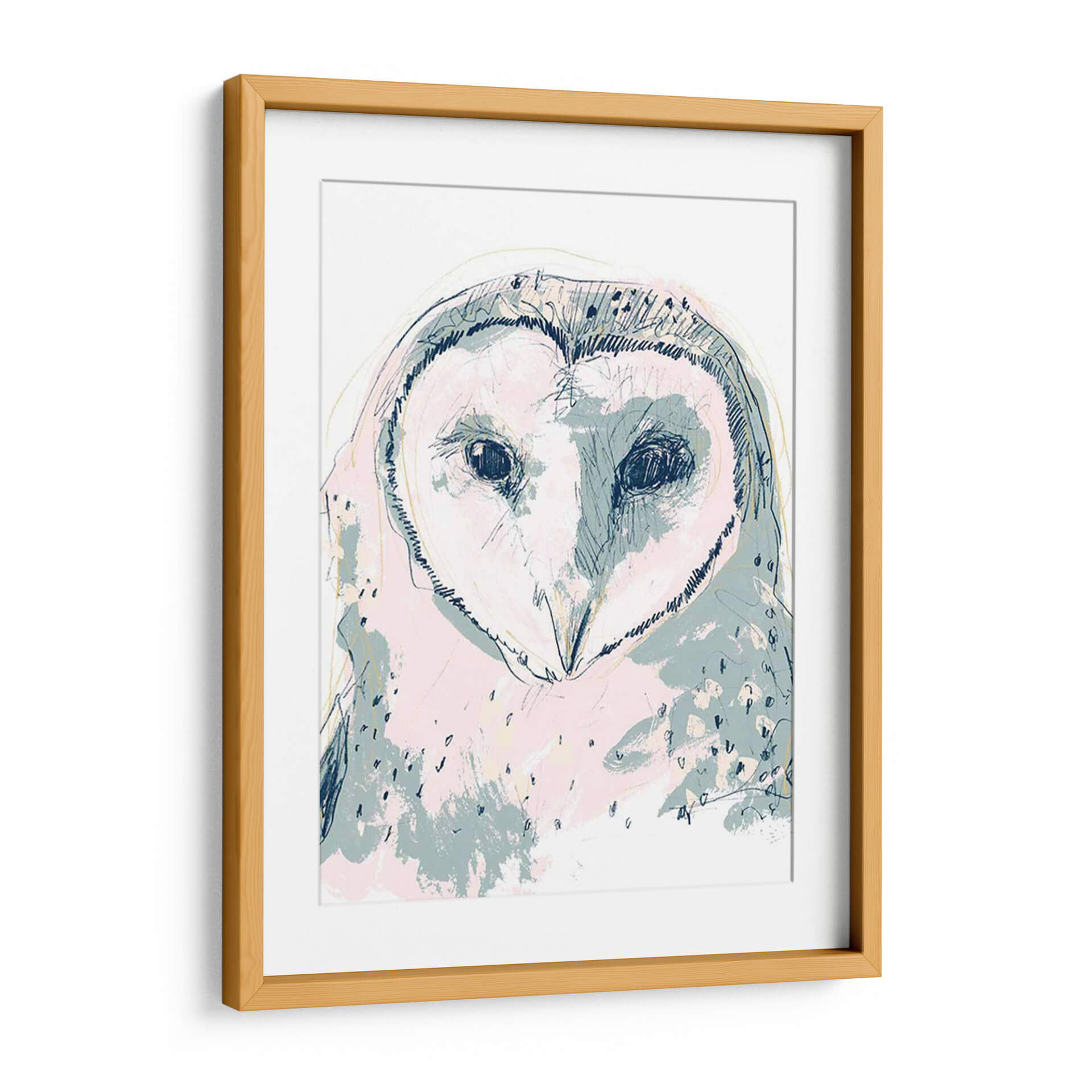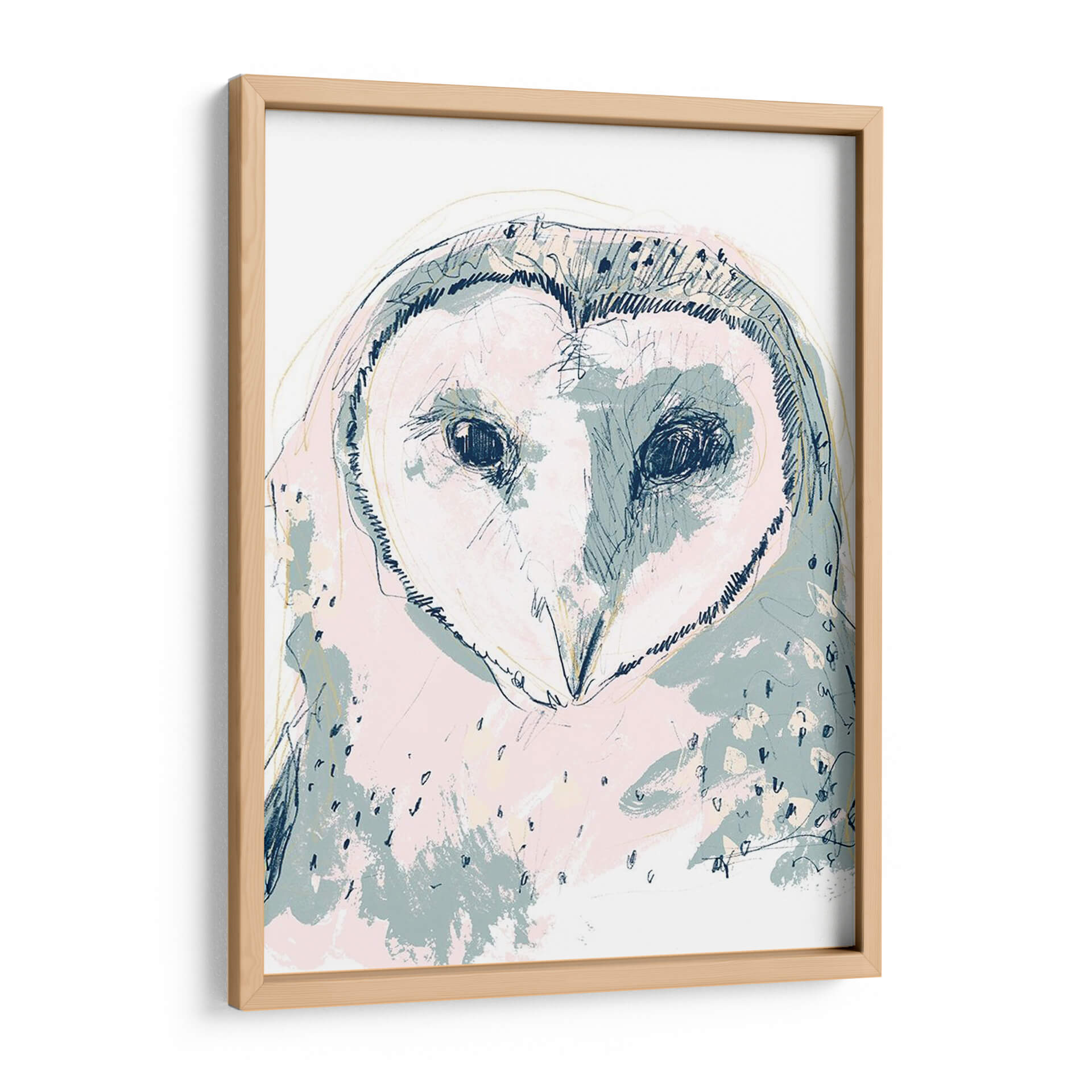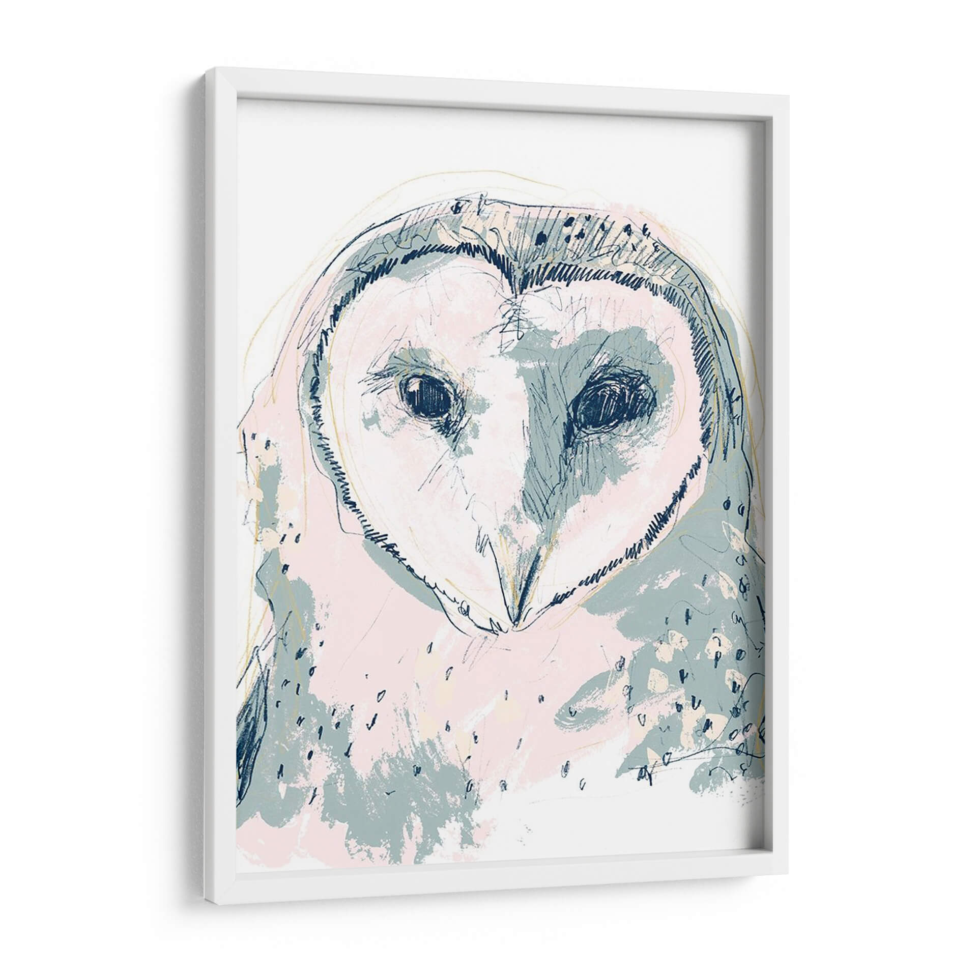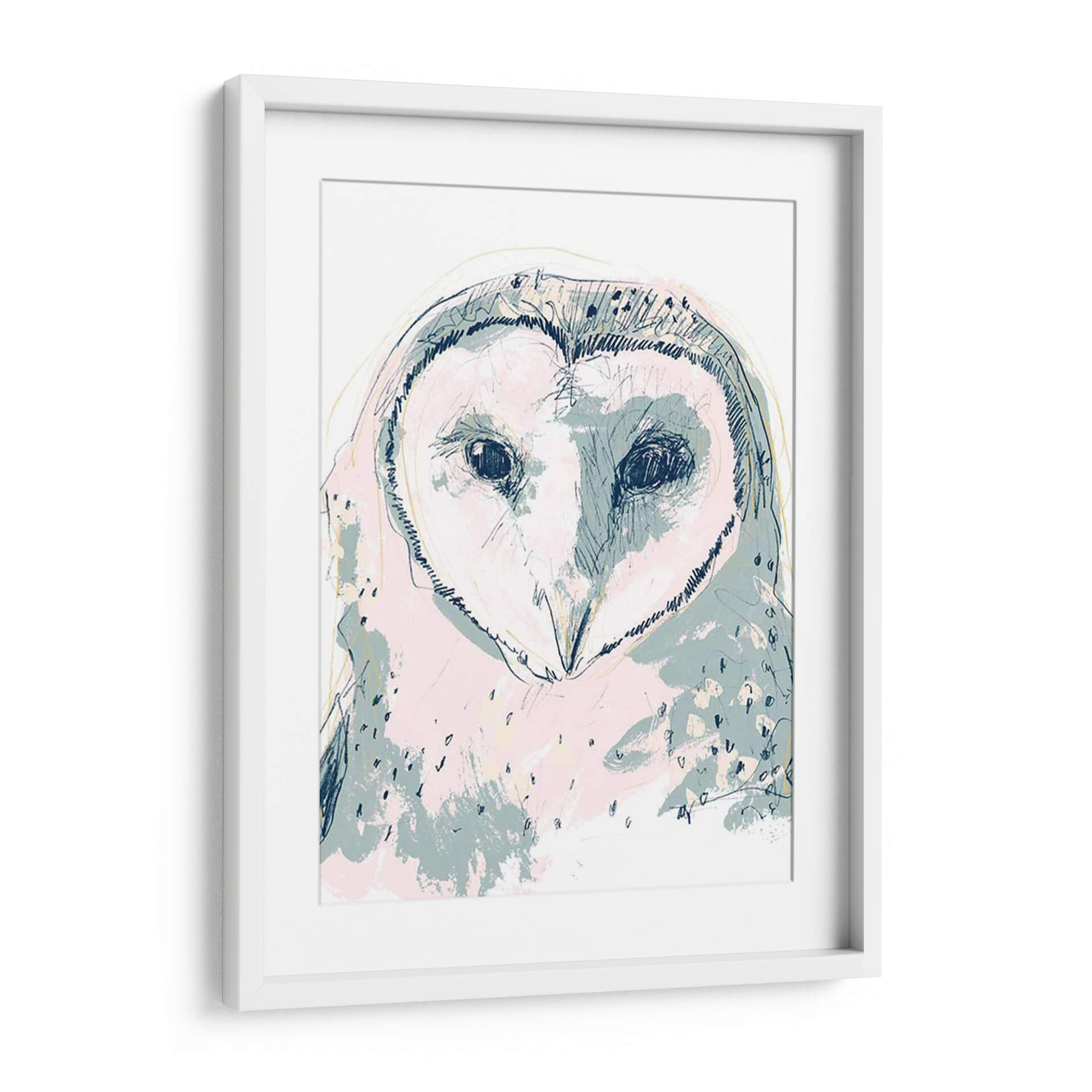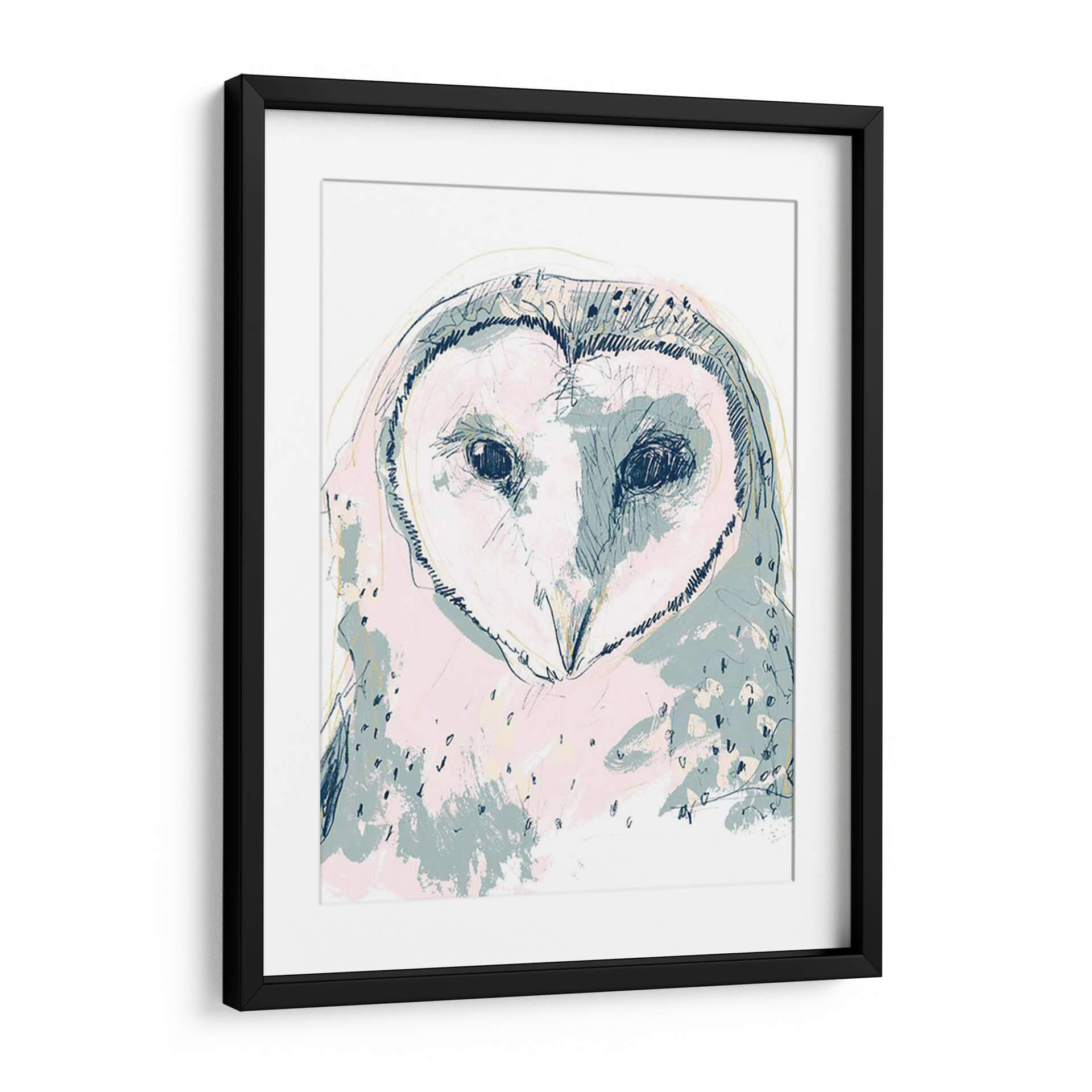 Este cautivador cuadro decorativo presenta un retrato estilizado de un búho con un toque moderno y artístico. La obra, titulada "Funky Owl Retrato I" por June Erica Vess, se caracteriza por su audaz uso de líneas y trazos sueltos que definen la figura del ave, creando una sensación de movimiento y dinamismo. La paleta de colores, dominada por suaves tonos pastel como el rosa pálido y el azul grisáceo, se combina con sutiles acentos de amarillo y azul marino, aportando una atmósfera etérea y a la vez juguetona. Los ojos oscuros y penetrantes del búho capturan la atención, transmitiendo una mezcla de sabiduría y misterio. El estilo artístico mezcla elementos del boceto a mano alzada con aplicaciones de color abstractas, resultando en una pieza única que fusiona lo figurativo con lo abstracto. Este cuadro decorativo es ideal para añadir un toque de personalidad y un punto focal intrigante a cualquier espacio, desde una sala de estar contemporánea hasta un dormitorio acogedor u oficina creativa. Su diseño versátil permite que se integre fácilmente en diversas decoraciones, aportando carácter y un aire de sofisticación artística.