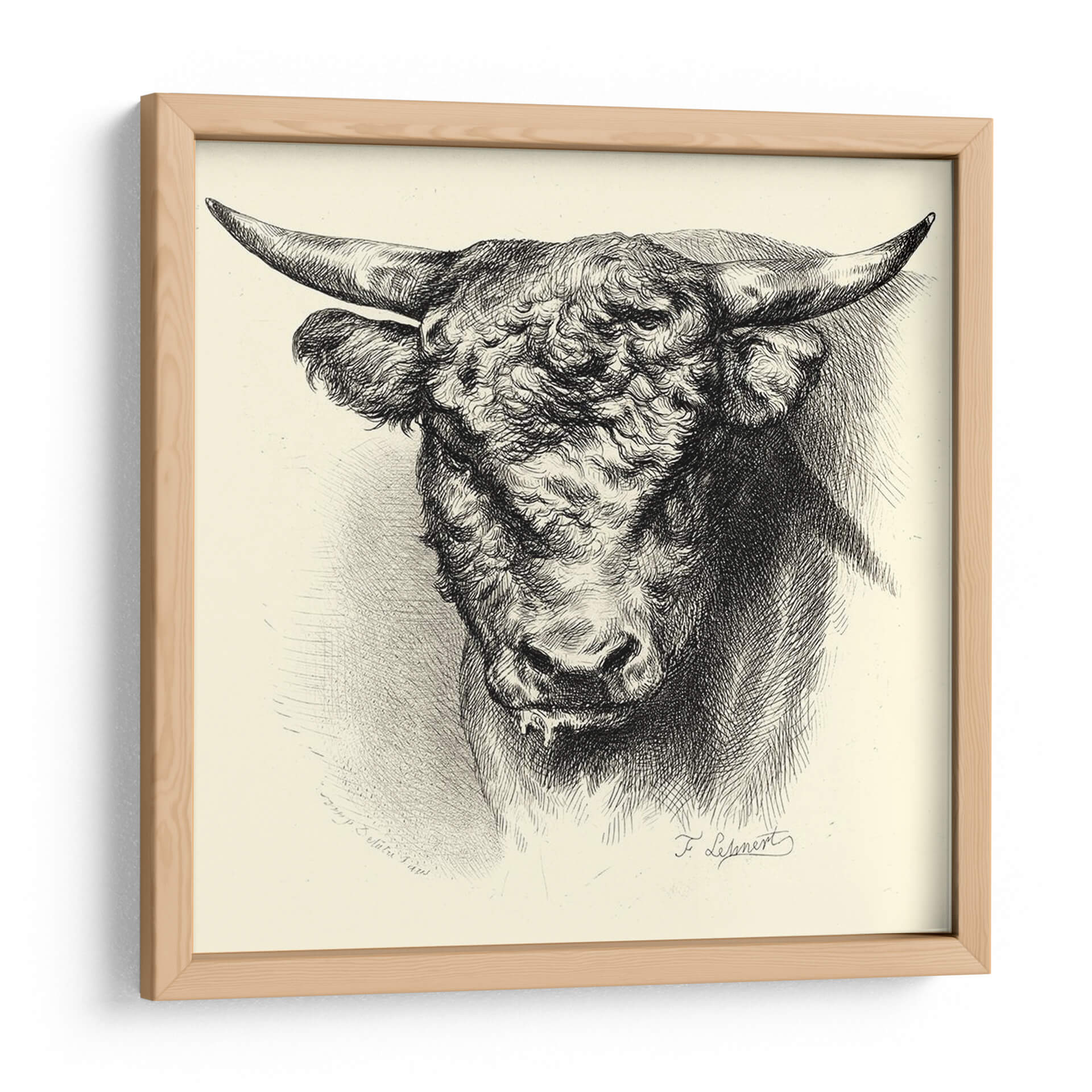 Sumérgete en la fuerza y majestuosidad del ganado con "Ganado Antiguo III", una obra de arte exquisita que captura la esencia de este noble animal. Este cuadro decorativo, con su detallado grabado en blanco y negro, presenta un primer plano impactante de la cabeza de un toro, resaltando la textura de su pelaje rizado, la imponencia de sus cuernos curvados y la intensidad de su mirada. La técnica de sombreado crea un juego de luces y sombras que dota a la pieza de profundidad y un realismo cautivador, evocando una sensación de poder sereno y una conexión con la naturaleza salvaje. La paleta monocromática sobre un fondo ligeramente texturizado aporta una elegancia atemporal, permitiendo que la figura central sea el foco absoluto. "Ganado Antiguo III" es ideal para espacios que buscan un toque de carácter y sofisticación, ya sea en un estudio, una sala de estar rústica o un comedor con personalidad. Esta pieza no solo decora, sino que también inspira fuerza y resiliencia, convirtiéndose en un punto focal memorable en cualquier decoración. Es una elección perfecta para amantes de la fauna, el arte clásico y aquellos que aprecian la belleza en su forma más pura y poderosa.