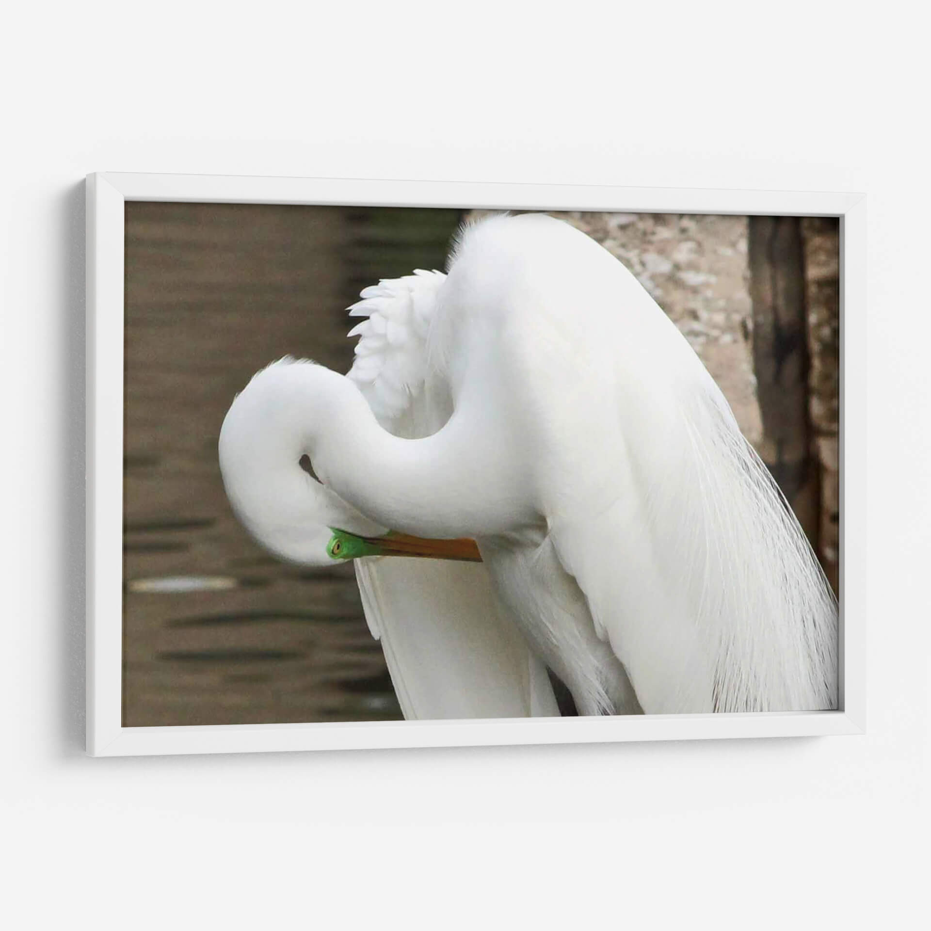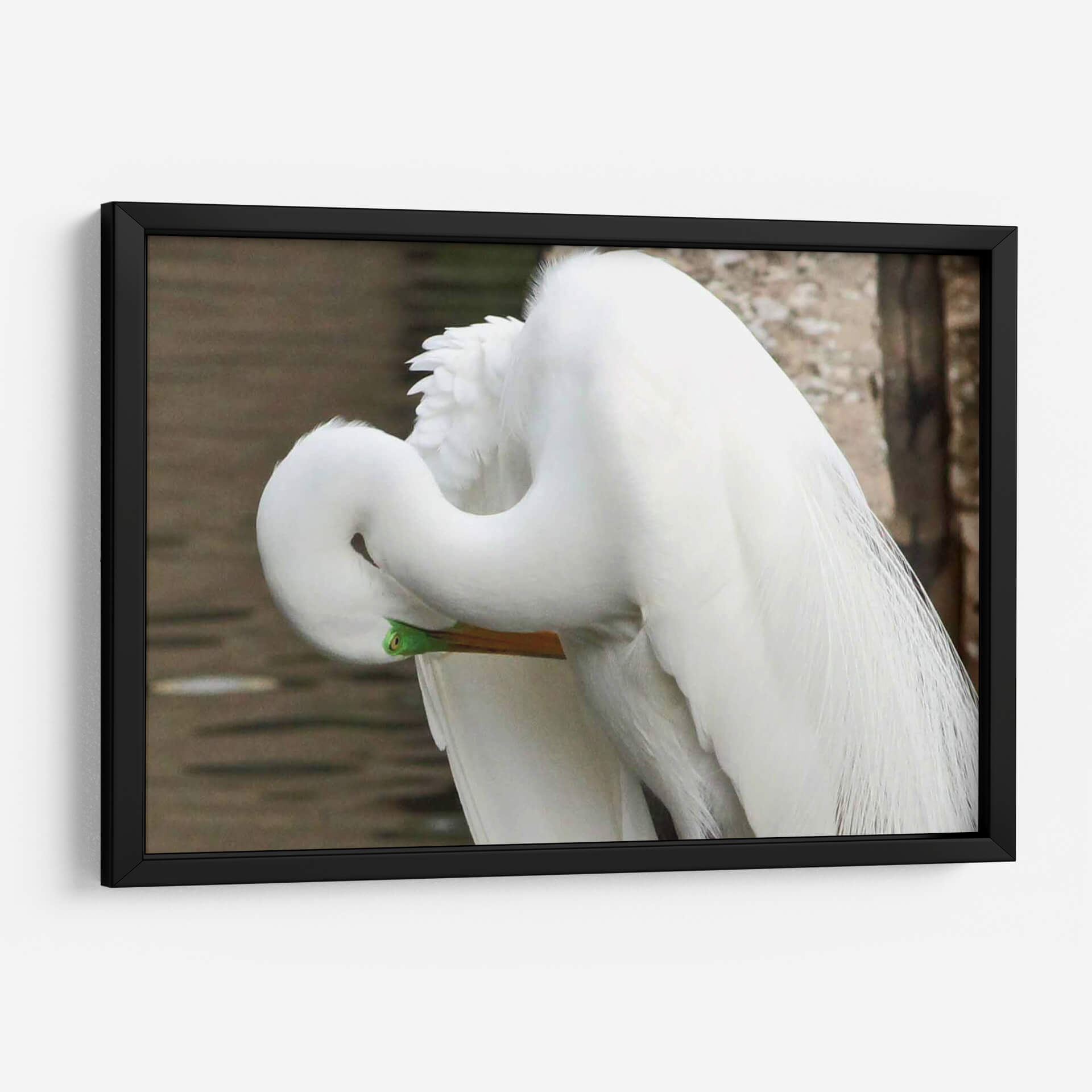 Captura la serenidad y la elegancia natural con este cautivador cuadro decorativo de una garza acicalándose. La obra presenta un primer plano detallado de una garza blanca, inmortalizada en un momento íntimo de auto-cuidado. Su plumaje, de un blanco puro y radiante, contrasta suavemente con el fondo desenfocado en tonos tierra y verdosos, creando una atmósfera de profunda calma y conexión con la naturaleza. La delicada curva de su cuello y la precisión con la que se acicala transmiten una sensación de gracia y tranquilidad que invita a la contemplación. Este cuadro es ideal para espacios que buscan un toque de paz y sofisticación, como un dormitorio, un estudio o una sala de estar donde se aprecie la belleza sutil y el arte inspirador. Su estilo fotográfico realista, con una composición cuidada, permite apreciar la textura de las plumas y la delicadeza del ave, convirtiéndola en un punto focal sereno y a la vez llamativo. Añade un toque de la majestuosidad del mundo natural a tu hogar u oficina con esta impresionante pieza de arte mural que evoca calma y armonía.