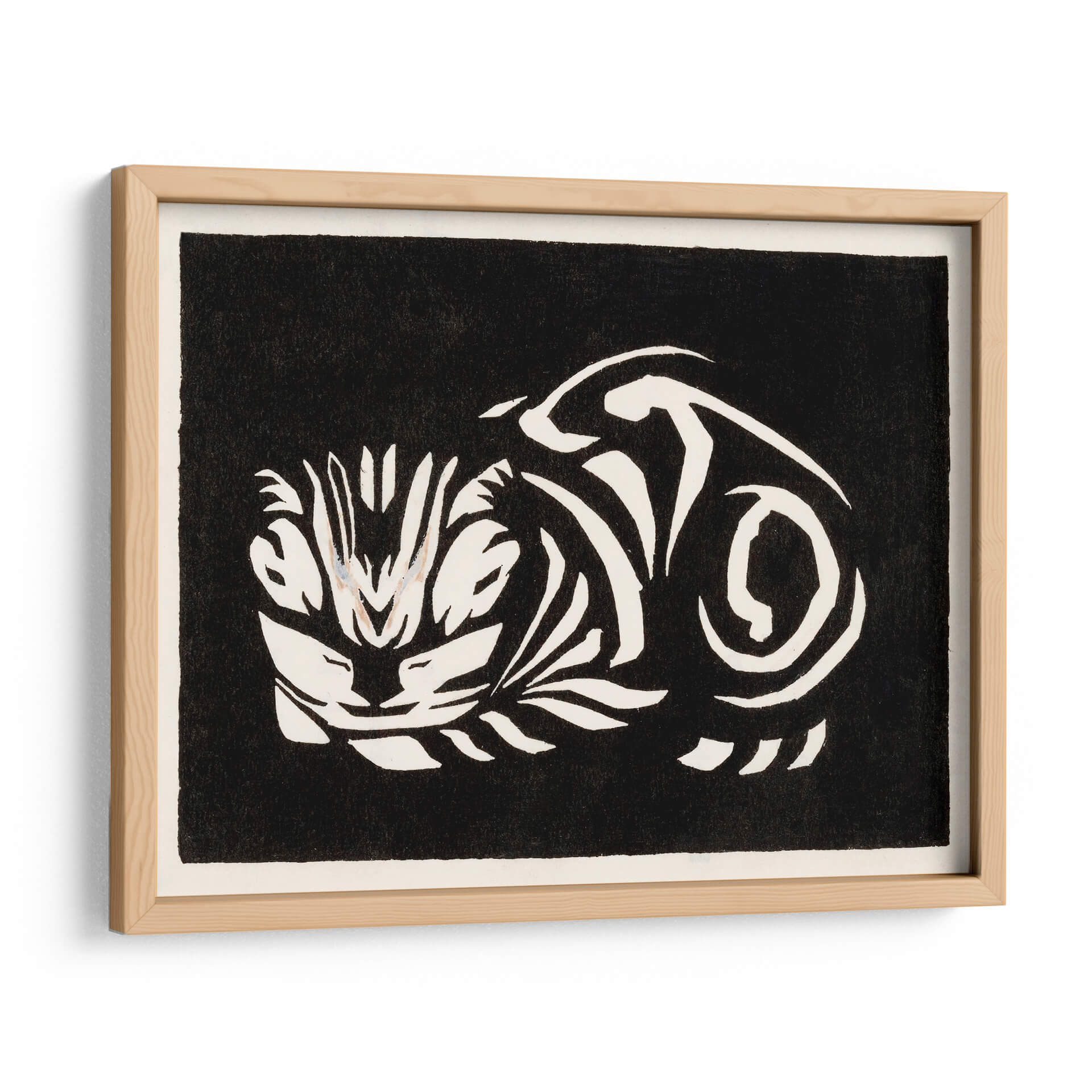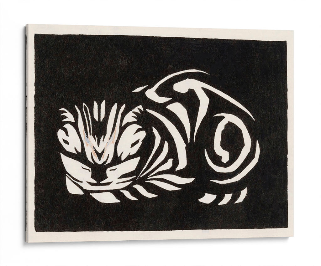Sumérgete en la serenidad felina con este cautivador cuadro decorativo inspirado en un grabado de madera. La obra maestra de Julie de Graag presenta un gato estilizado, representado con audaces contrastes de blanco y negro sobre un profundo fondo oscuro. Las líneas fluidas y las formas abstractas capturan la esencia elegante y misteriosa de este animal, creando una atmósfera de calma y contemplación. Este diseño minimalista, con reminiscencias del arte gráfico clásico, aporta un toque de sofisticación y carácter a cualquier espacio. Su paleta monocromática lo hace increíblemente versátil, complementando a la perfección decoraciones modernas, escandinavas o eclécticas. Imagina este cuadro como el punto focal de tu sala de estar, aportando una dosis de elegancia discreta, o como una pieza relajante en tu estudio u oficina. El tratamiento gráfico del felino evoca una sensación de tranquilidad y misterio, ideal para quienes buscan un arte que invite a la pausa y la reflexión. Añade una dimensión artística atemporal a tu hogar con esta pieza única que celebra la belleza de las formas y la sutileza de la expresión felina. Un acierto seguro para amantes del arte y la decoración.