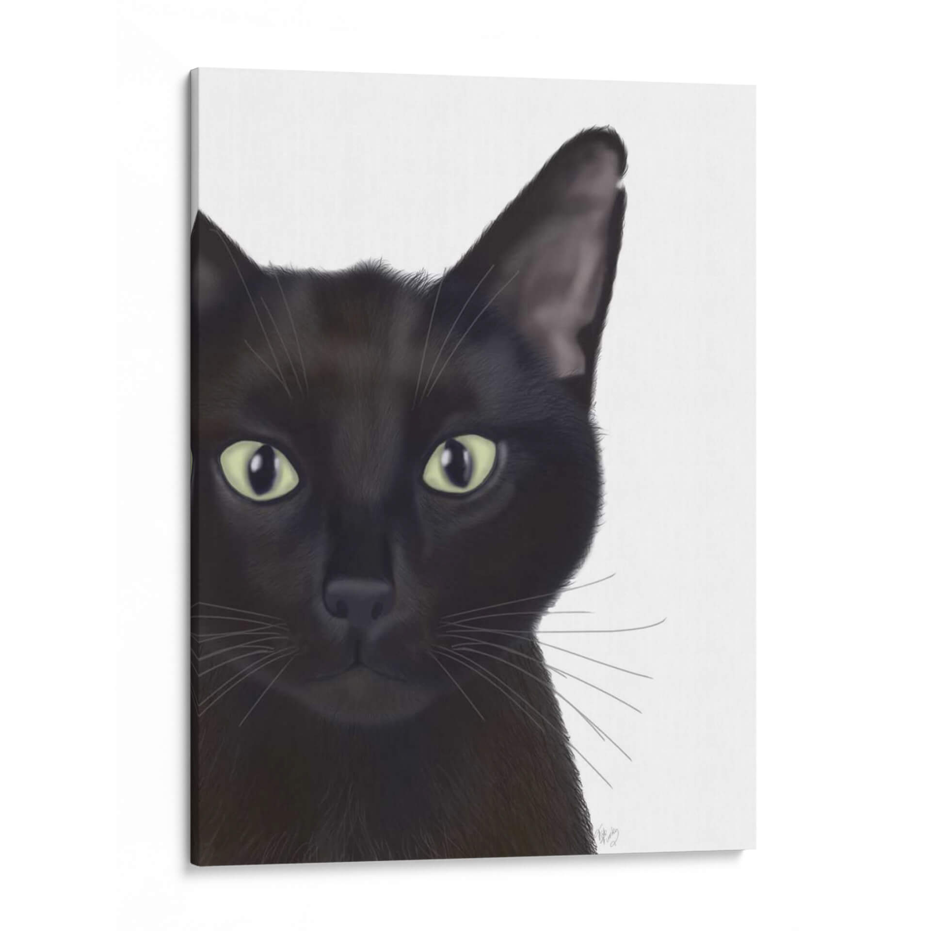 Cautiva a los amantes de los felinos con "Gato, Retrato De Gus", una obra de arte digital que captura la misteriosa y cautivadora mirada de un gato negro. Este cuadro decorativo, firmado por el artista Fab Funky, presenta un primer plano íntimo del rostro del gato, con sus penetrantes ojos verdes como punto focal. La delicada representación de cada pelo, el contraste entre la oscuridad del pelaje y el fondo blanco y limpio, crea una imagen impactante y a la vez sutil. El estilo realista y la composición centrada en los ojos transmiten una sensación de curiosidad y conexión, invitando al espectador a adentrarse en el enigmático mundo de este felino. "Gato, Retrato De Gus" es una pieza versátil, perfecta para añadir un toque de elegancia, misterio y personalidad a cualquier espacio. Ya sea en un salón moderno, una oficina o un rincón acogedor del hogar, este cuadro decorativo se convertirá en un punto de conversación y una fuente de admiración. Ideal para regalar a los apasionados por los gatos o para quienes buscan una pieza de arte contemporáneo que evoque emociones y carácter.