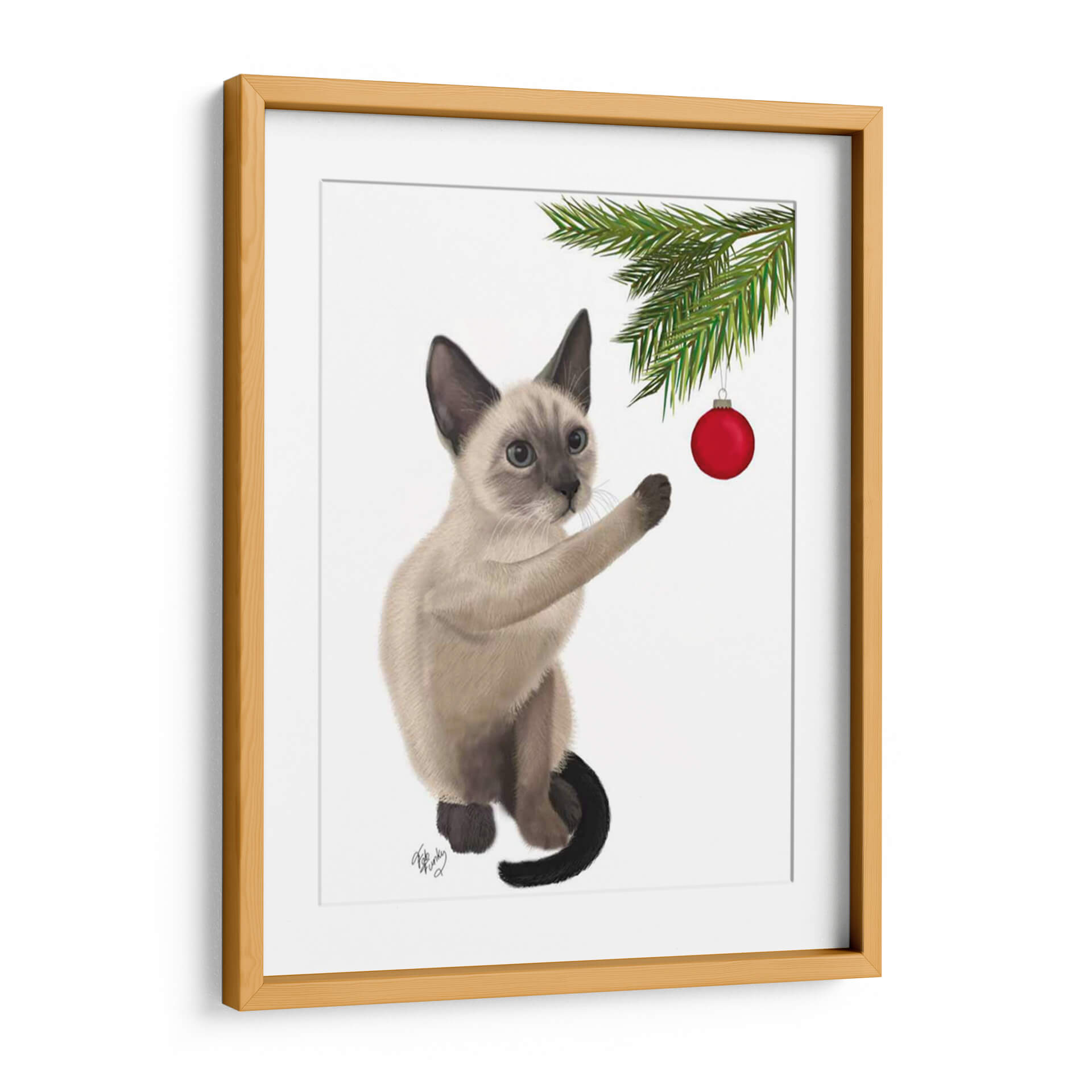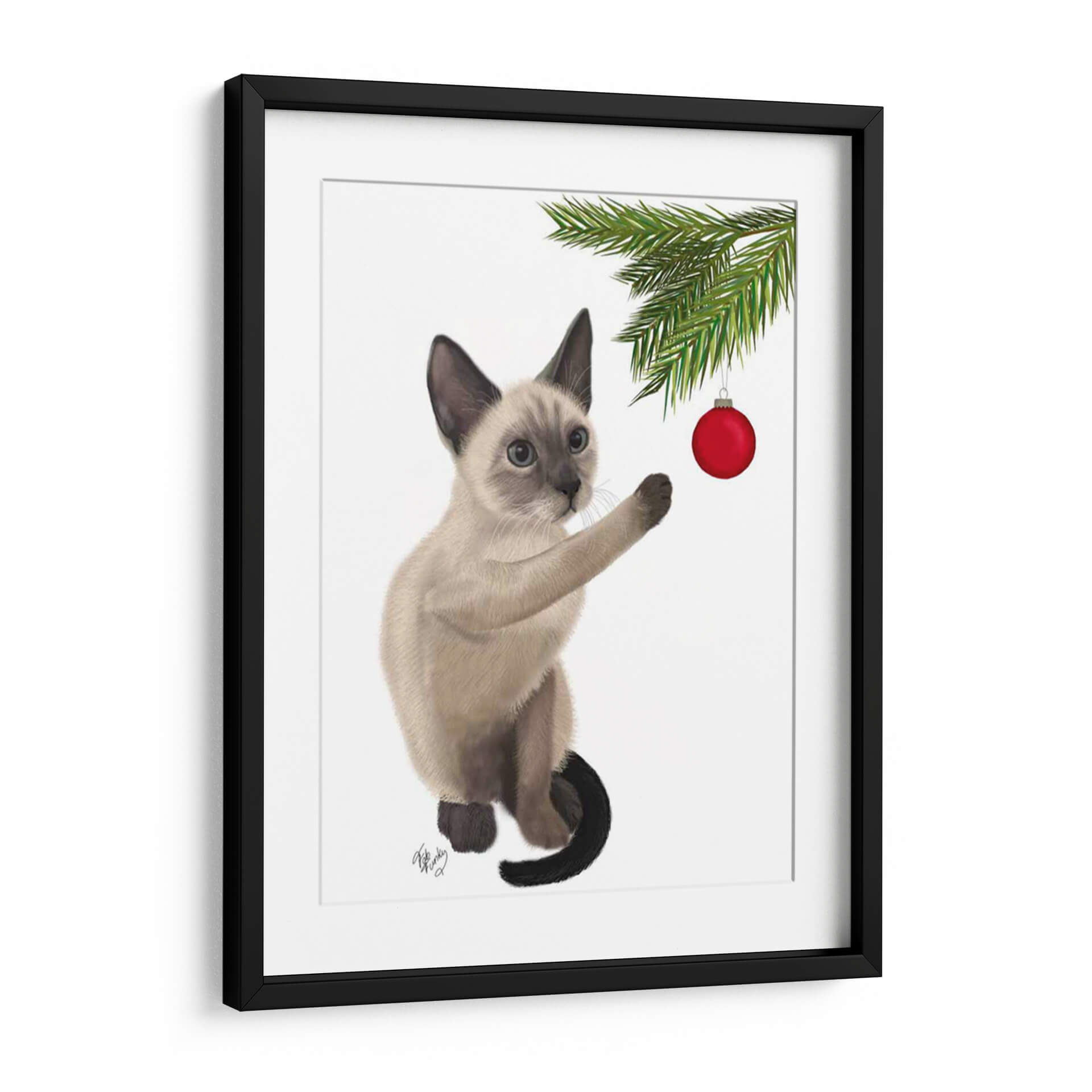 Captura la esencia juguetona y la elegancia inherente de los felinos con este encantador cuadro decorativo de un gato siamés interactuando con un adorno navideño. La obra presenta a un tierno gatito siamés, con sus característicos ojos azules y pelaje crema y chocolate, extendiendo una pata curiosa hacia una brillante esfera roja suspendida de una rama de pino. La composición, con un fondo blanco limpio, realza la vivacidad del gato y el detalle de la rama, creando un punto focal cautivador. Los colores cálidos del gato contrastan sutilmente con el vibrante rojo del adorno y el verde profundo de las agujas de pino, generando una atmósfera alegre y festiva, pero también tierna y nostálgica. Este cuadro es ideal para añadir un toque de personalidad y calidez a cualquier espacio, desde la sala de estar hasta un rincón acogedor en la oficina o incluso un dormitorio infantil. Su estilo realista y detallado, con un toque artístico contemporáneo, lo convierte en una pieza versátil que atraerá a amantes de los gatos y a quienes buscan arte decorativo con un mensaje de inocencia y diversión. Perfecto para añadir encanto durante las festividades o para ser disfrutado durante todo el año, este cuadro es una invitación a la sonrisa y a la conexión emocional a través del arte.