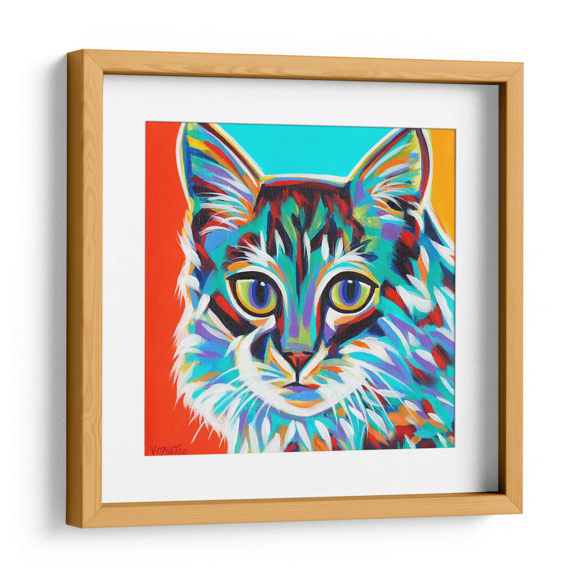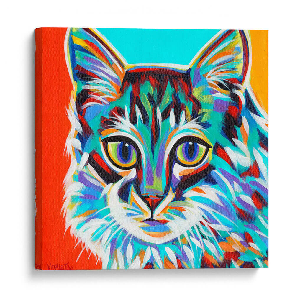 Sumérgete en la vibrante y expresiva obra "Gatos Dramáticos II" de Carolee Vitaletti, un cuadro decorativo que captura la esencia felina con una explosión de color y energía. Esta pieza maestra, caracterizada por su estilo contemporáneo y audaz, presenta un retrato de gato donde cada pincelada parece danzar, creando una textura rica y un dinamismo cautivador. Los ojos del felino, grandes y penetrantes, irradian una mezcla de curiosidad y misterio, actuando como el punto focal que atrae e hipnotiza al espectador. La paleta de colores es un festín visual, con azules intensos, verdes vibrantes, rojos ardientes y toques de púrpura y amarillo, que se combinan para generar una atmósfera juguetona pero a la vez profunda. "Gatos Dramáticos II" es más que una simple decoración; es una declaración de estilo, perfecta para añadir un toque de personalidad y color a cualquier estancia, ya sea un salón moderno, una oficina creativa o un dormitorio acogedor. Este cuadro decorativo contemporáneo transformará tu espacio en un lienzo de emociones y arte, ideal para amantes de los gatos y del arte moderno que buscan piezas únicas y llenas de vida para sus hogares.