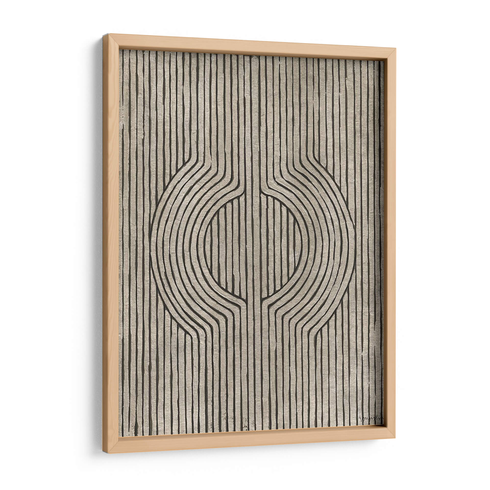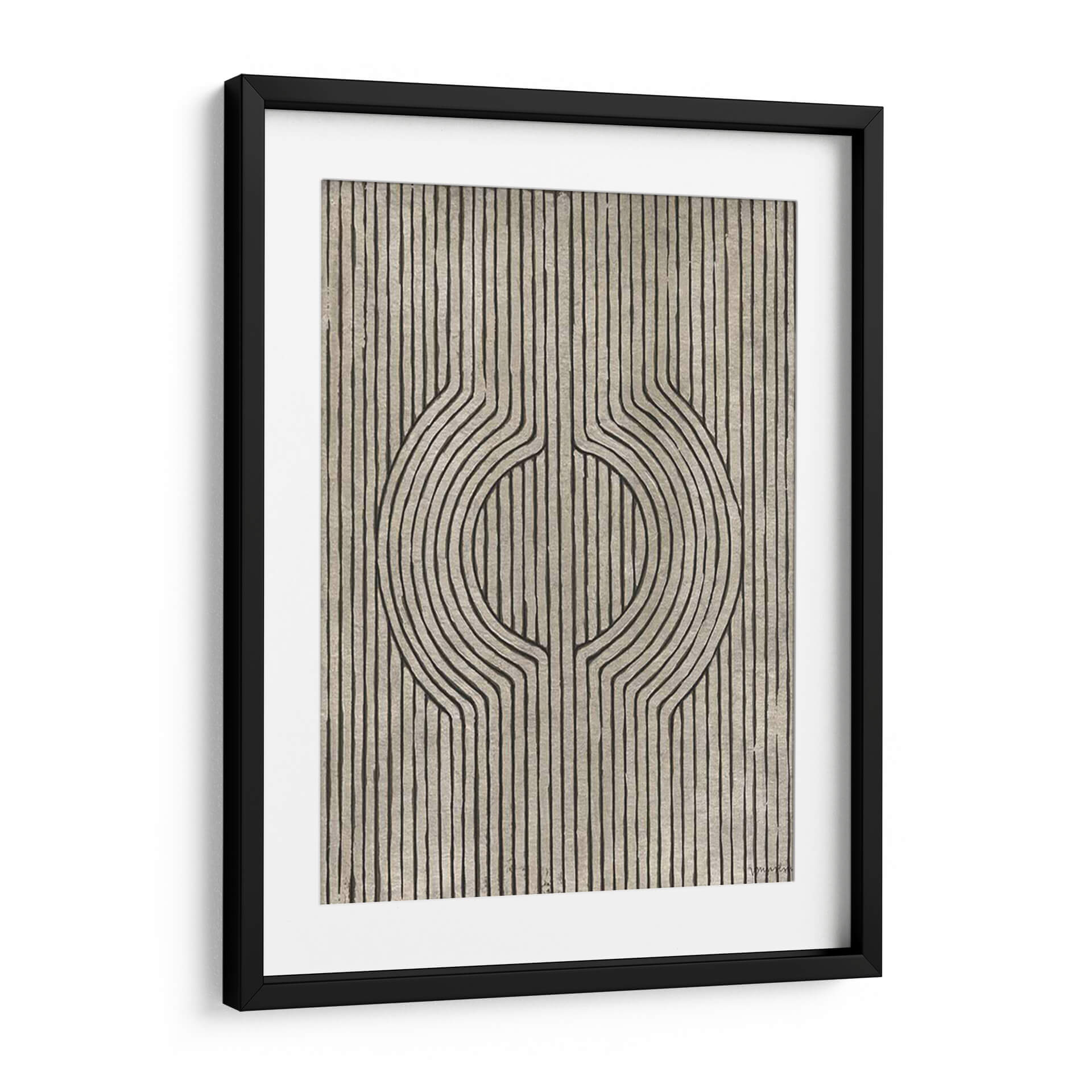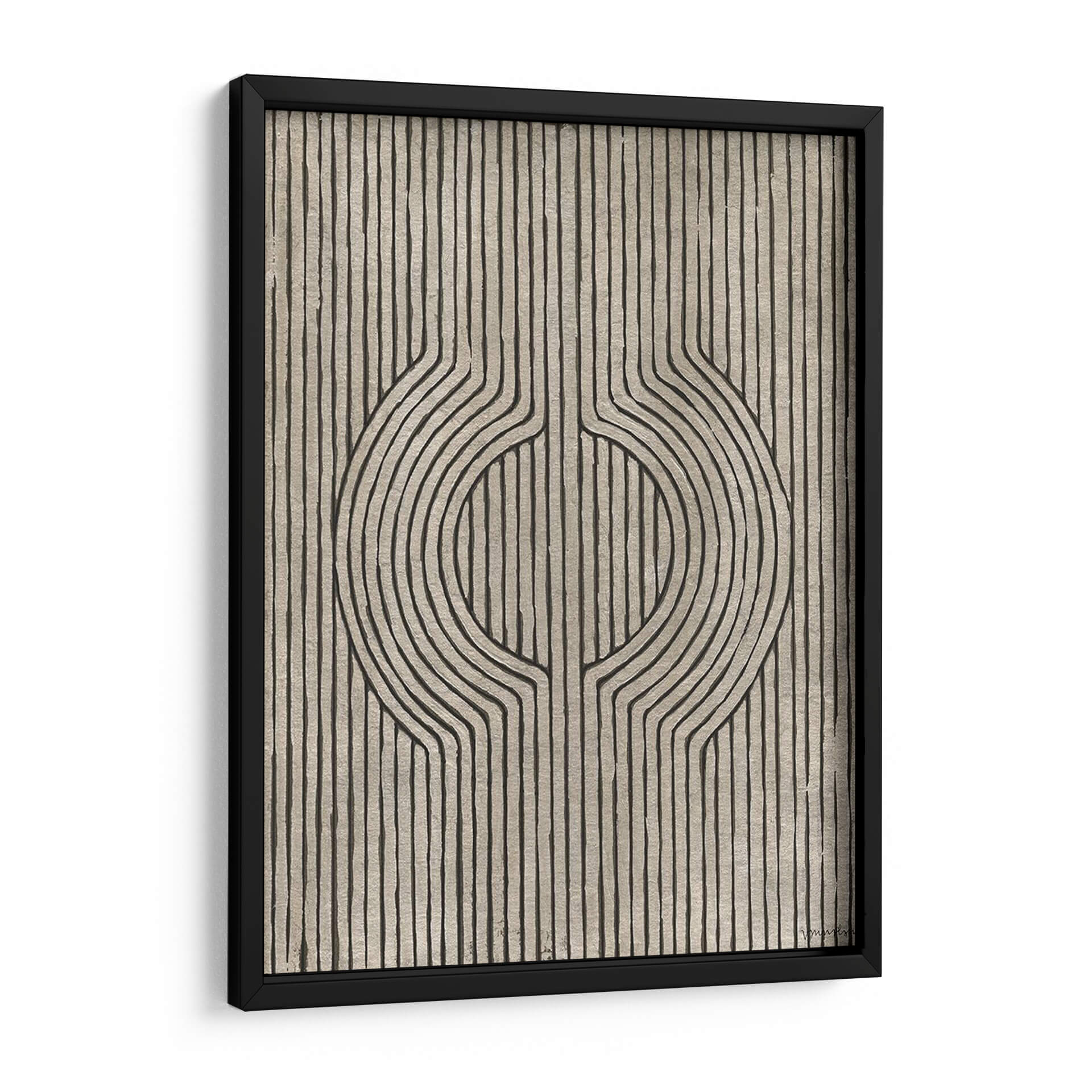 Sumérgete en la elegancia geométrica de "Grooves De Cedro Iv", una obra de arte contemporáneo que redefine la sofisticación visual. Este cuadro decorativo presenta un cautivador diseño abstracto con líneas finas y fluidas que se entrelazan, formando un motivo central que evoca profundidad y movimiento. La paleta de colores, dominada por tonos tierra y grises sutiles con contrastes en negro, crea una atmósfera serena pero intrigante, perfecta para espacios que buscan un toque de distinción y calma. La composición lineal y simétrica aporta un equilibrio visual que puede armonizar cualquier ambiente, desde una sala de estar moderna hasta un estudio tranquilo o una oficina con estilo. Ideal para quienes aprecian el arte abstracto con un toque orgánico y refinado, "Grooves De Cedro Iv" es más que una pieza decorativa; es una invitación a la contemplación y un punto focal que enriquecerá tu decoración, aportando un aire de arte moderno y diseño contemporáneo a tu hogar u oficina. Descubre cómo sus texturas sutiles y su diseño único pueden transformar tu espacio.