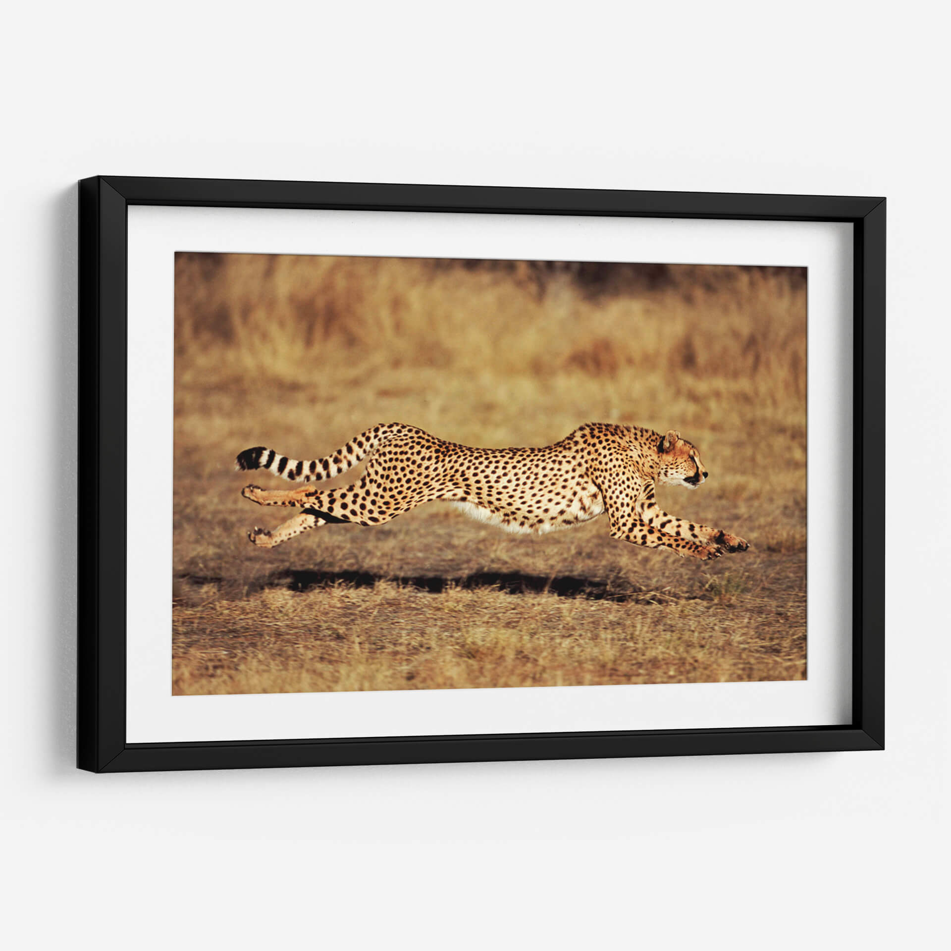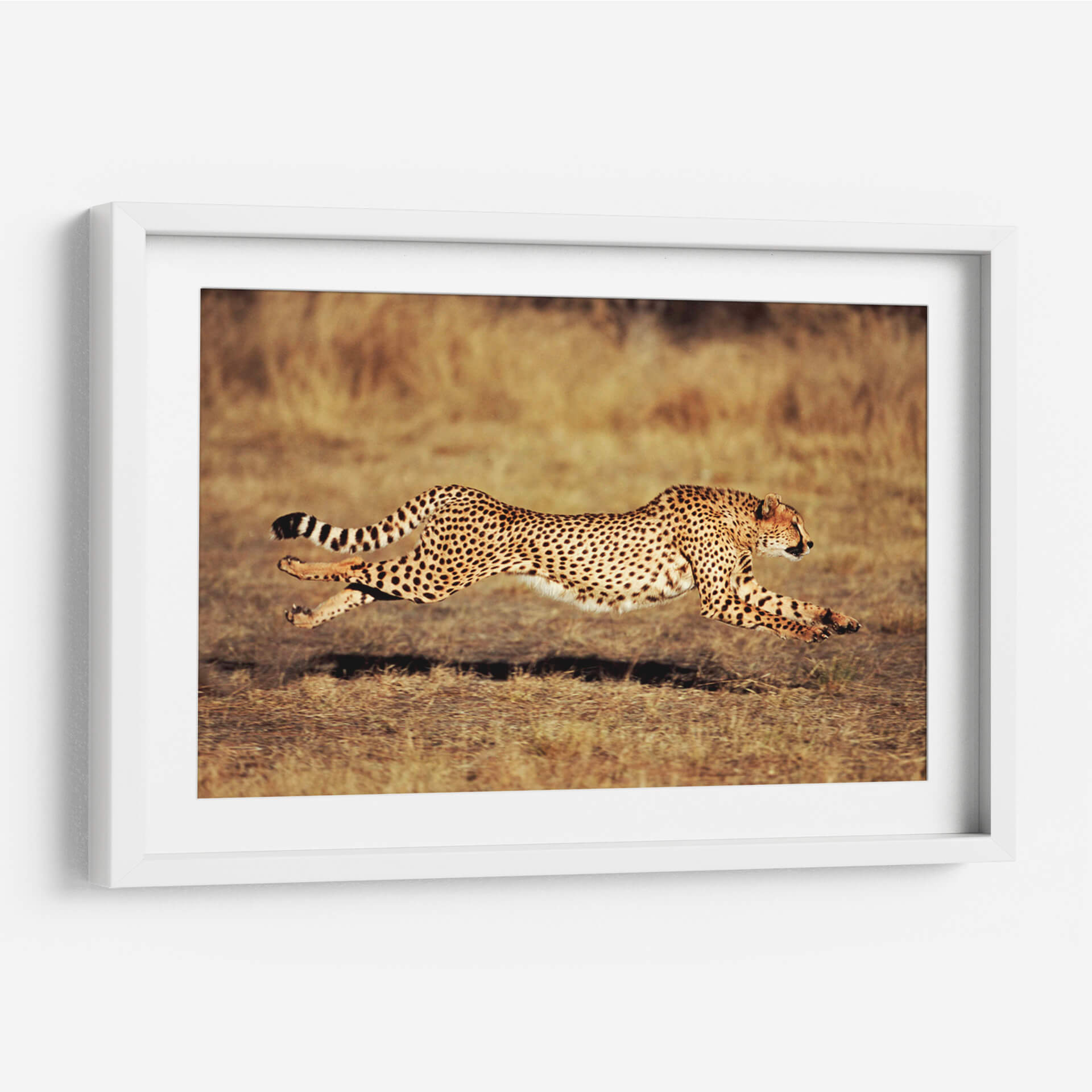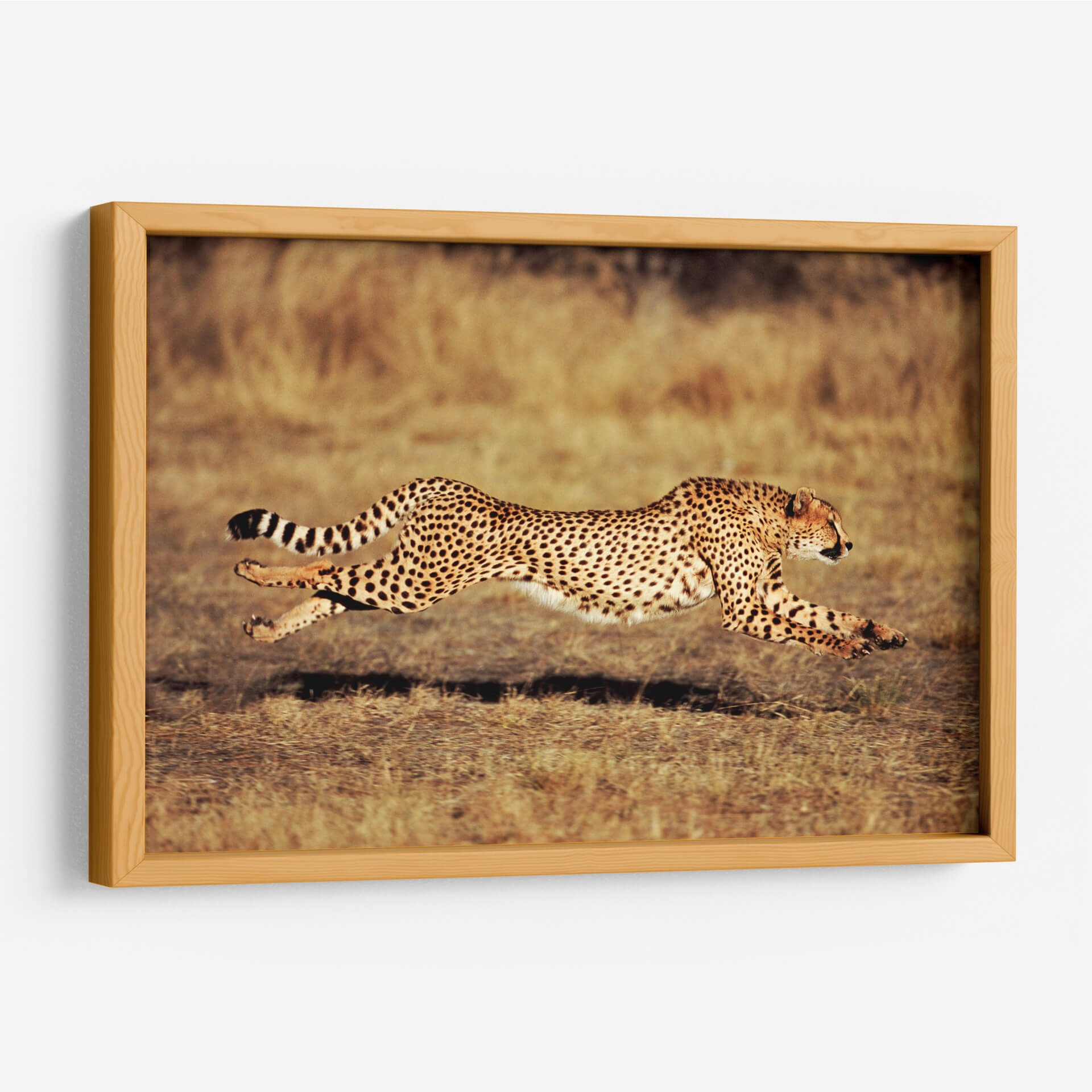 Captura la majestuosidad y la velocidad indómita con este impresionante lienzo del Guepardo en el Serengeti. La obra inmortaliza a este felino icónico en pleno galope, con su cuerpo esbelto y ágil suspendido en el aire, demostrando una potencia y elegancia incomparables. La composición se centra en la figura del guepardo, resaltando su distintivo pelaje moteado y su mirada penetrante, que transmite una mezcla de concentración y ferocidad salvaje. El fondo, un paisaje árido y cálido del Serengeti, evoca la inmensidad de la sabana africana, con tonos ocres y marrones que contrastan sutilmente con la silueta dinámica del animal. El estilo fotográfico de la pieza, con una iluminación natural que modela la musculatura del guepardo, añade un realismo cautivador. Esta obra es perfecta para infundir energía y un toque de la naturaleza salvaje en cualquier espacio, ya sea una sala de estar moderna, un estudio de oficina o un dormitorio que busque inspiración. "Guepardo en el Serengeti" no es solo una decoración, sino una ventana a la belleza cruda y la fuerza de la vida salvaje.