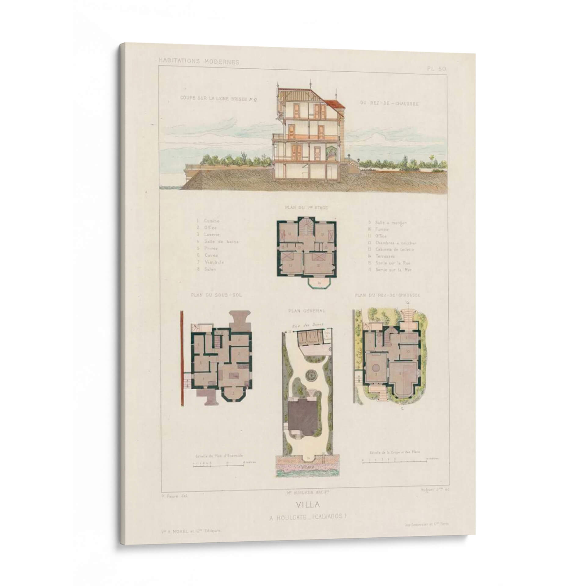 Embellece tu espacio con este evocador cuadro decorativo de arquitectura antigua, que captura la esencia de 'Habitaciones Modernas V' de A. Morel. Esta pieza, con su detallado plano arquitectónico y corte transversal de una villa, transporta al espectador a una época de diseño clásico y elegante. La paleta de colores suaves, dominada por tonos sepia, crema y toques de verde y azul, crea una atmósfera serena y nostálgica, perfecta para añadir un toque de historia y sofisticación a cualquier habitación. Su composición, que presenta múltiples vistas de la propiedad, ofrece una perspectiva única y detallada, ideal para amantes de la arquitectura, el diseño de interiores o simplemente para quienes buscan una pieza de conversación distintiva. Este cuadro decorativo es una adición excepcional para salas de estar, estudios, oficinas o cualquier lugar donde se aprecie la belleza del diseño clásico y la historia. Añade un toque de encanto atemporal a tu decoración con esta obra inspiradora.
