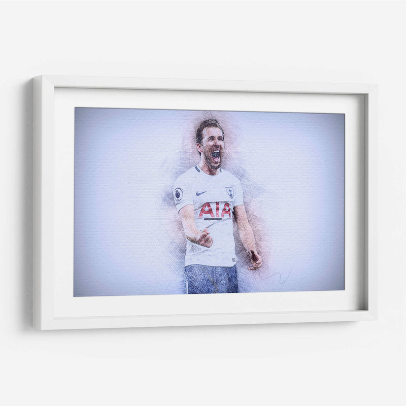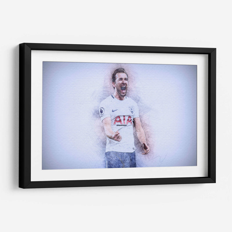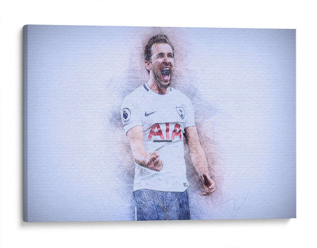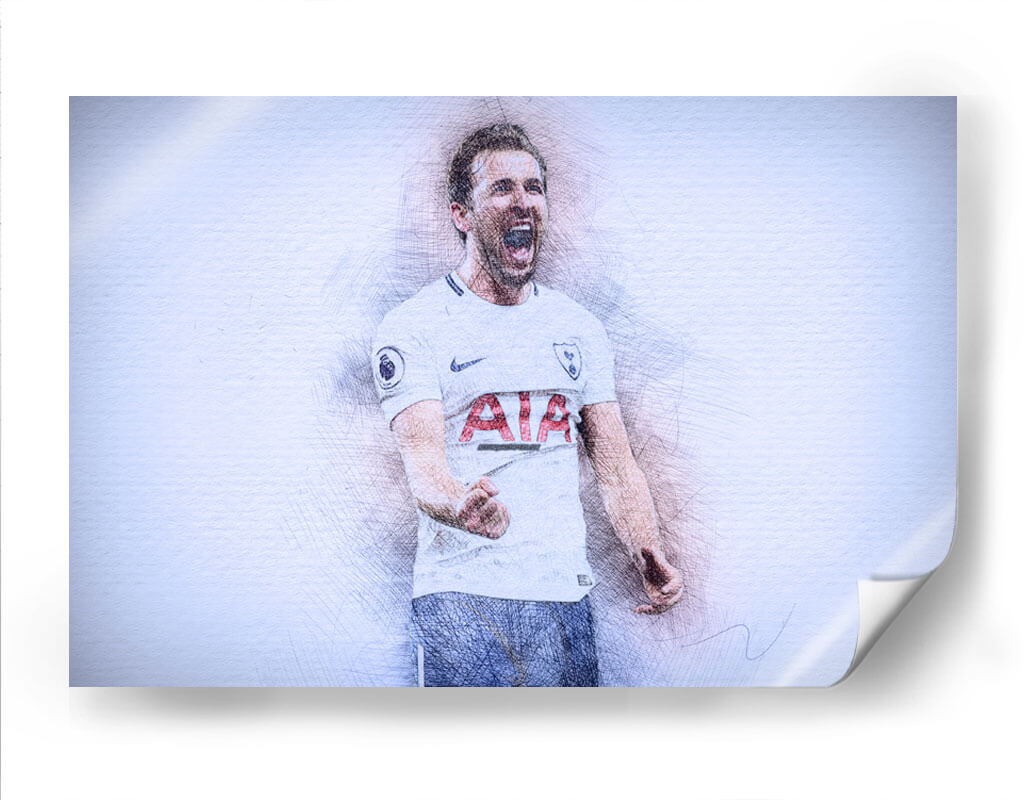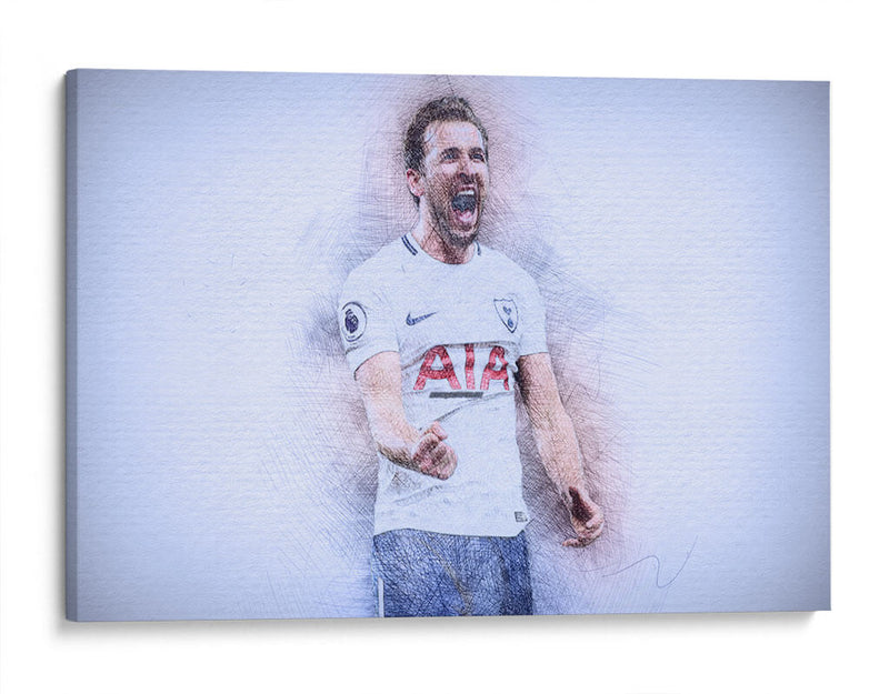 Este impactante cuadro decorativo captura la energía y la emoción de un momento icónico del fútbol. La obra presenta un retrato estilizado del futbolista Harry Kane, representado con trazos de lápiz vibrantes que le otorgan una textura dinámica y un aire de boceto artístico. Su expresión de júbilo, con la boca abierta en un grito de celebración y el puño cerrado, transmite una poderosa sensación de victoria y pasión deportiva. La paleta de colores, dominada por tonos blancos, grises y sutiles toques de azul y rojo en el uniforme, crea un contraste visual que realza la figura central. El fondo abstracto y de textura ligera permite que la figura del deportista sea el foco principal, generando una atmósfera de intensidad contenida. Este cuadro es ideal para aficionados al fútbol, coleccionistas de arte deportivo o para cualquier espacio que busque un toque de inspiración y energía vibrante, como una sala de estar moderna, un estudio o una oficina. Añade esta pieza de arte contemporáneo para evocar la emoción del deporte y celebrar la dedicación y el triunfo.