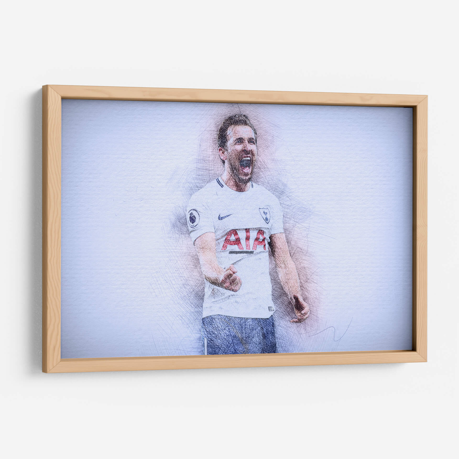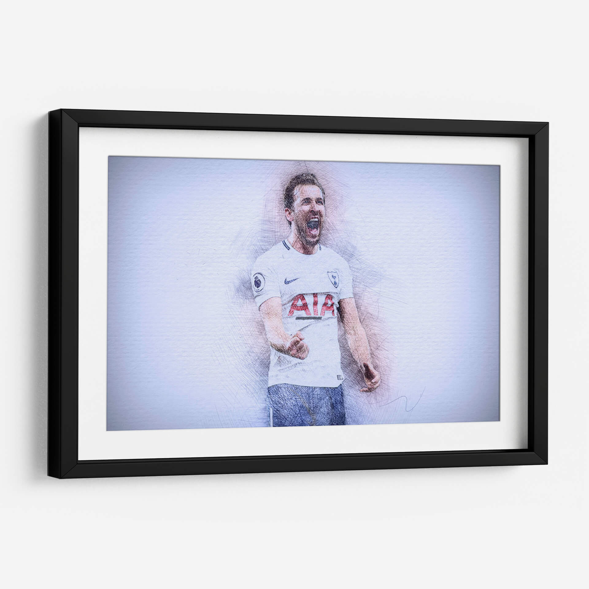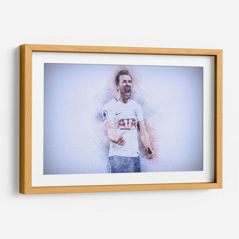Este impactante cuadro decorativo captura la energía y la emoción de un momento icónico del fútbol. La obra presenta un retrato estilizado del futbolista Harry Kane, representado con trazos de lápiz vibrantes que le otorgan una textura dinámica y un aire de boceto artístico. Su expresión de júbilo, con la boca abierta en un grito de celebración y el puño cerrado, transmite una poderosa sensación de victoria y pasión deportiva. La paleta de colores, dominada por tonos blancos, grises y sutiles toques de azul y rojo en el uniforme, crea un contraste visual que realza la figura central. El fondo abstracto y de textura ligera permite que la figura del deportista sea el foco principal, generando una atmósfera de intensidad contenida. Este cuadro es ideal para aficionados al fútbol, coleccionistas de arte deportivo o para cualquier espacio que busque un toque de inspiración y energía vibrante, como una sala de estar moderna, un estudio o una oficina. Añade esta pieza de arte contemporáneo para evocar la emoción del deporte y celebrar la dedicación y el triunfo.