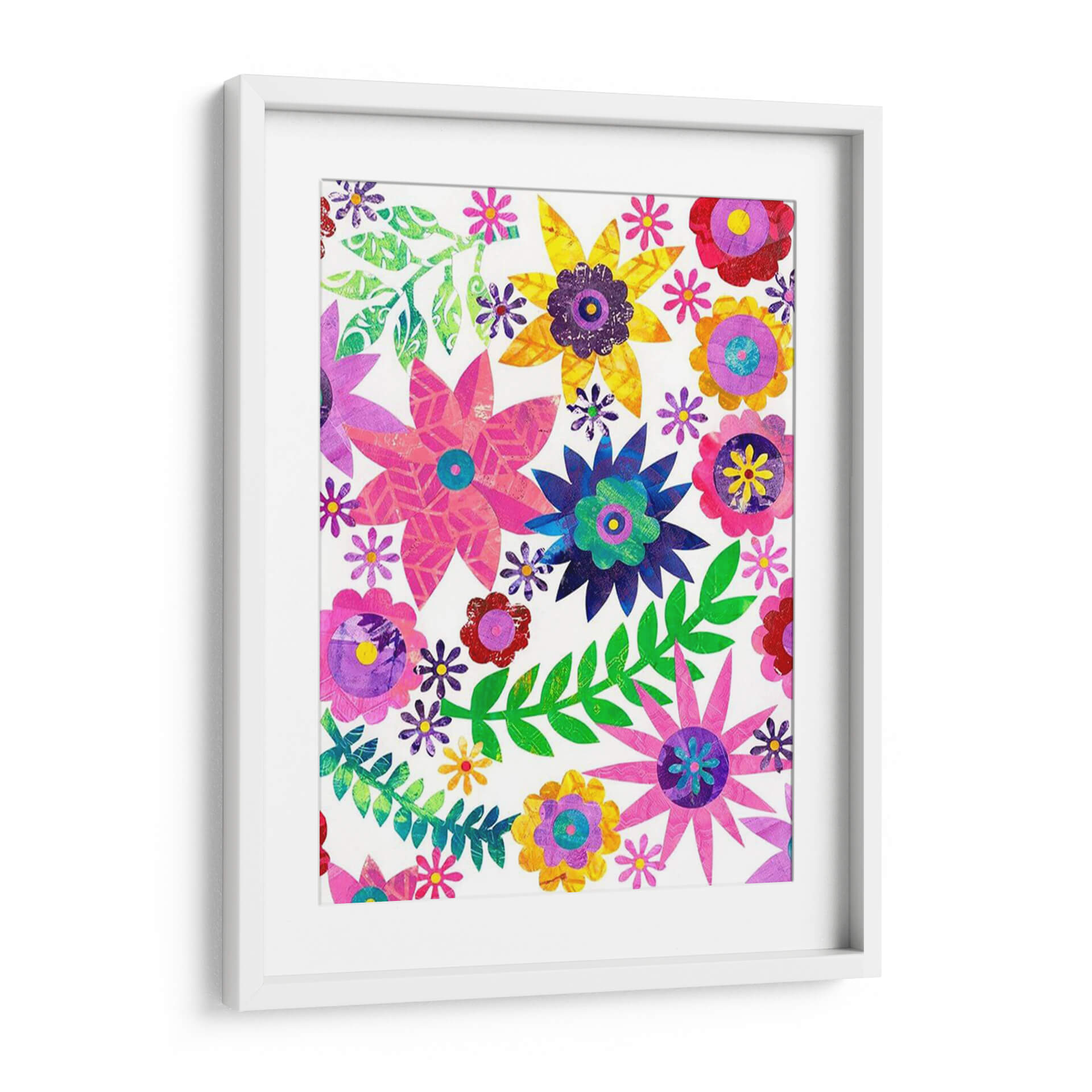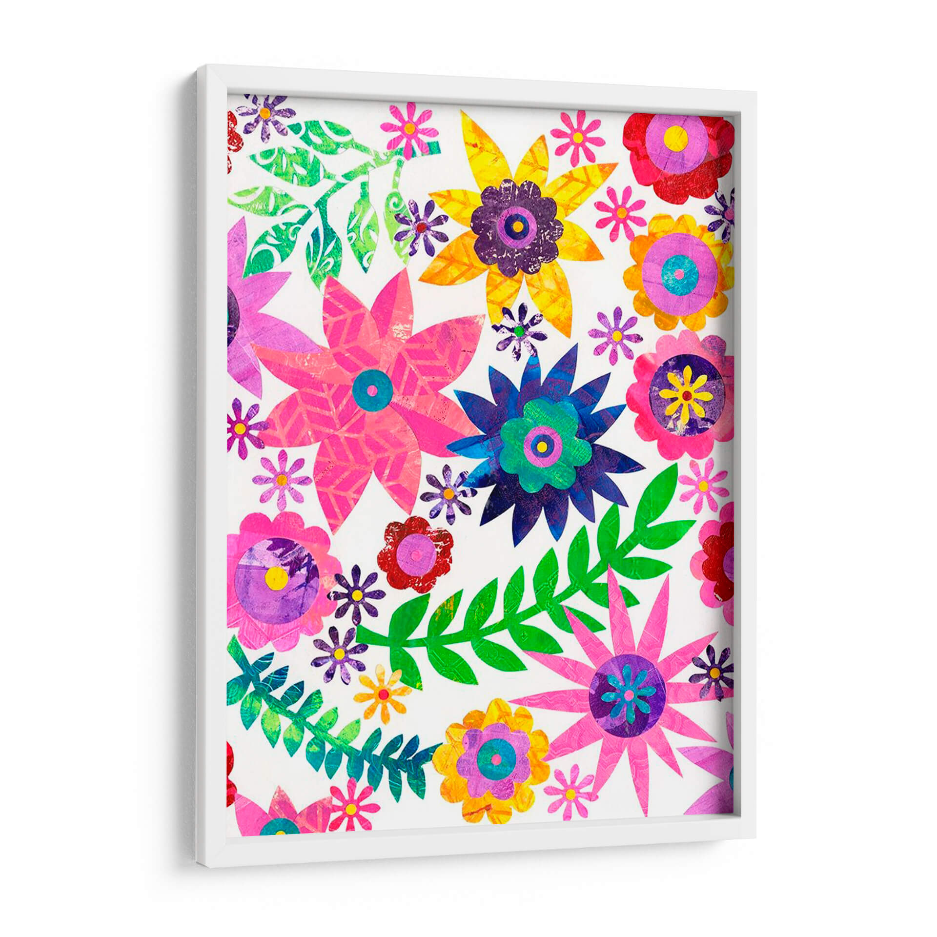 Transforma tu espacio con el vibrante y alegre cuadro decorativo 'Hippie Floral II' de Regina Moore. Esta obra de arte estalla en una profusión de flores estilizadas y hojas verdes, creando un jardín visual lleno de energía y color. La paleta cromática, dominada por rosas intensos, amarillos solares, azules eléctricos y púrpuras profundos, contrasta maravillosamente sobre un fondo blanco nítido, aportando luminosidad y un toque lúdico a cualquier habitación. El estilo, que recuerda al collage y la técnica de "paper cut-out", confiere una textura y profundidad únicas a cada pétalo y hoja, invitando a la contemplación. Ideal para quienes buscan inyectar vitalidad y un espíritu bohemio a su hogar u oficina, este cuadro es una celebración de la naturaleza y la alegría. Colócalo en tu sala de estar para un punto focal lleno de vida, en tu dormitorio para un toque de optimismo o en tu estudio para inspirar creatividad. 'Hippie Floral II' no es solo decoración, es una declaración de estilo y felicidad.