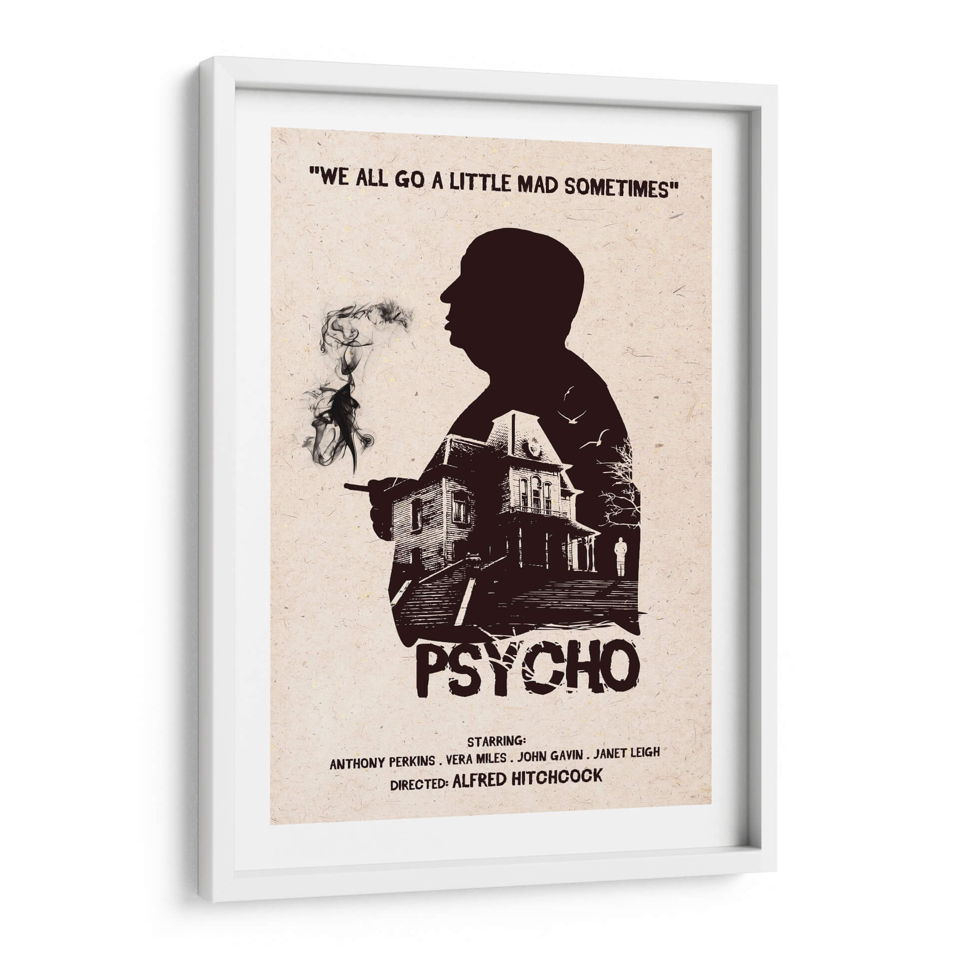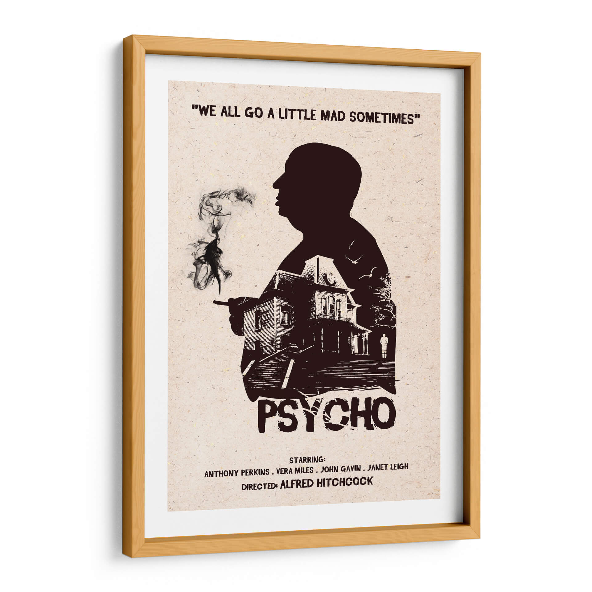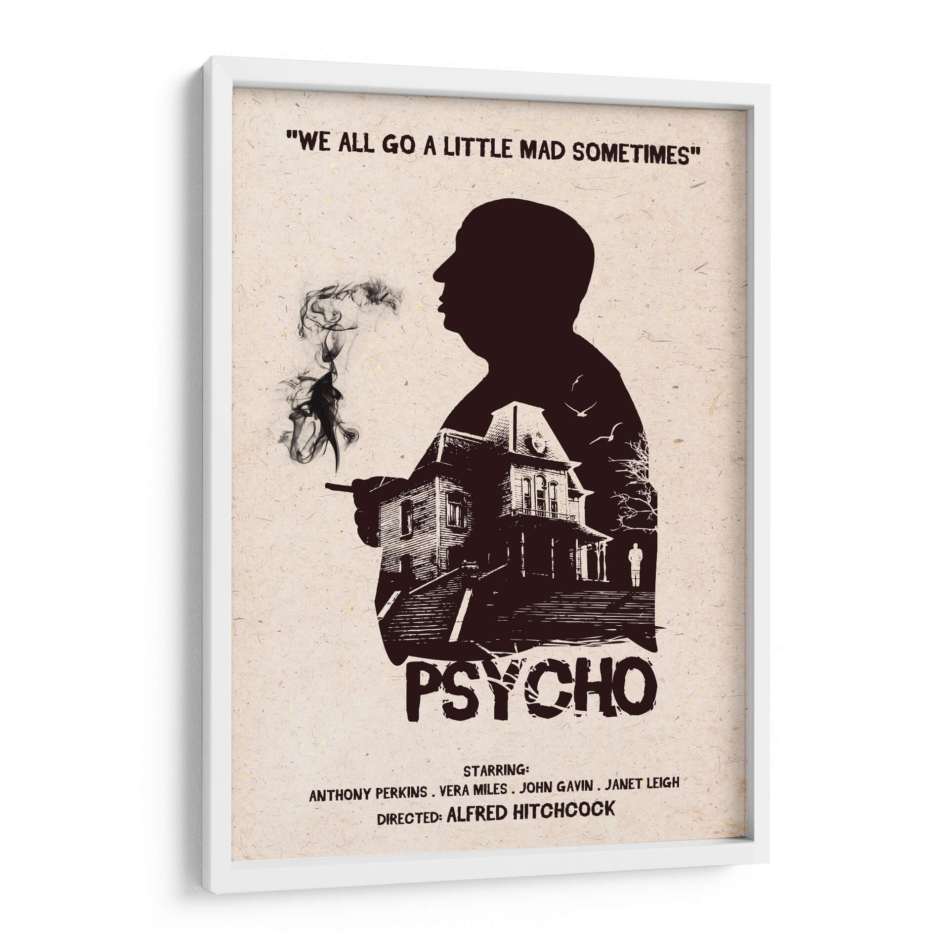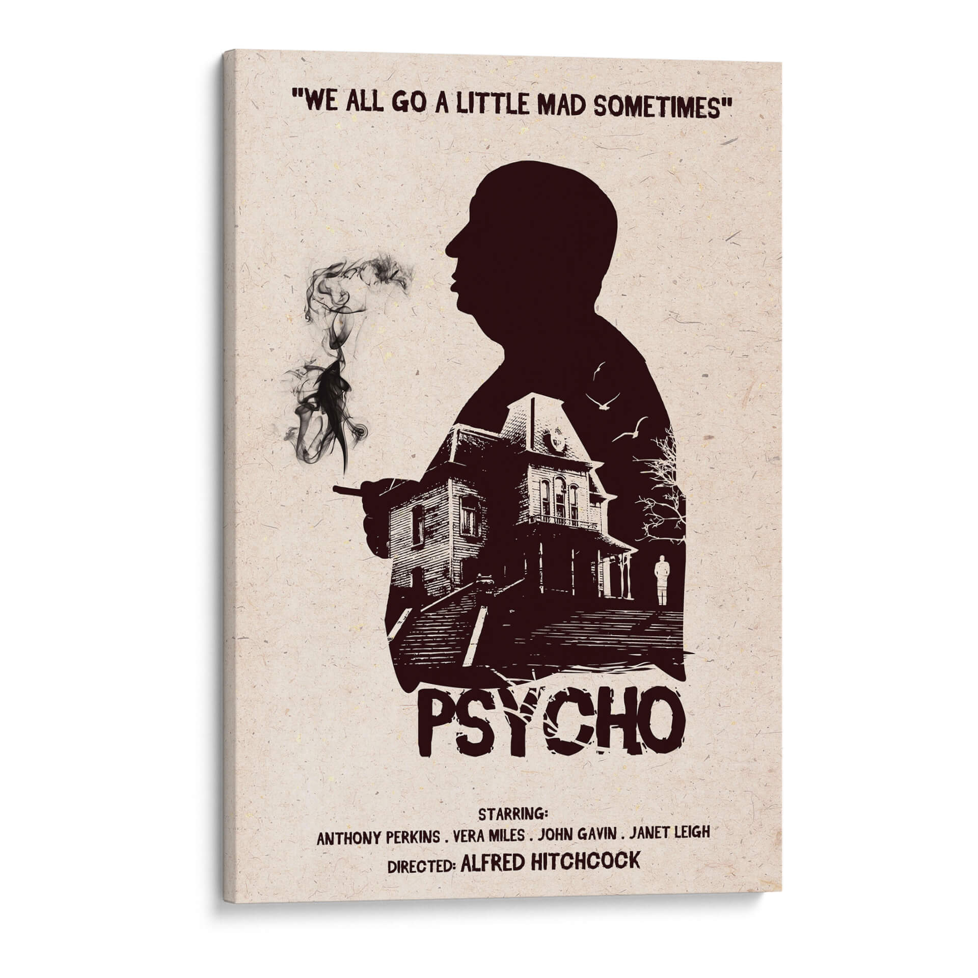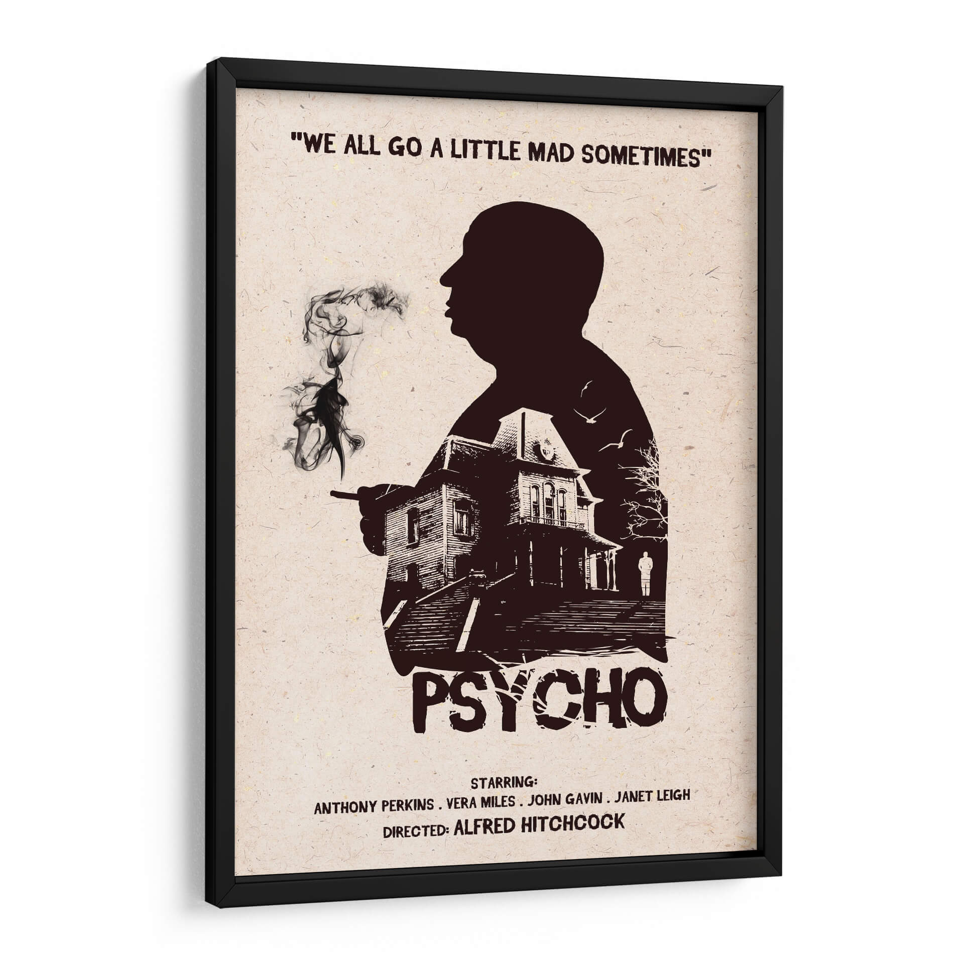 Sumérgete en el universo del suspense con este cautivador cuadro decorativo inspirado en la icónica película 'Psycho' de Alfred Hitchcock. La obra presenta una silueta oscura y misteriosa que evoca al inolvidable personaje, fusionada de manera magistral con la ominosa silueta de la mansión Bates. El detalle de las volutas de humo añade un toque etéreo y perturbador, mientras que el texto de la película y los créditos principales anclan la pieza a su legado cinematográfico. La paleta de colores se centra en tonos sepia y marrones, creando una atmósfera nostálgica y a la vez inquietante, reminiscente de los carteles de cine clásicos. Este cuadro decorativo es perfecto para los amantes del cine de terror y suspense, aportando un aire de intriga y sofisticación a cualquier espacio, ya sea una sala de estar, un estudio o una sala de juegos. Su diseño gráfico, con un estilo retro y minimalista, lo convierte en una pieza de conversación única y un homenaje visual al maestro del suspense. Añade un toque de misterio y elegancia a tu decoración con esta obra de arte que rinde tributo a una obra maestra del cine que sigue fascinando a generaciones.