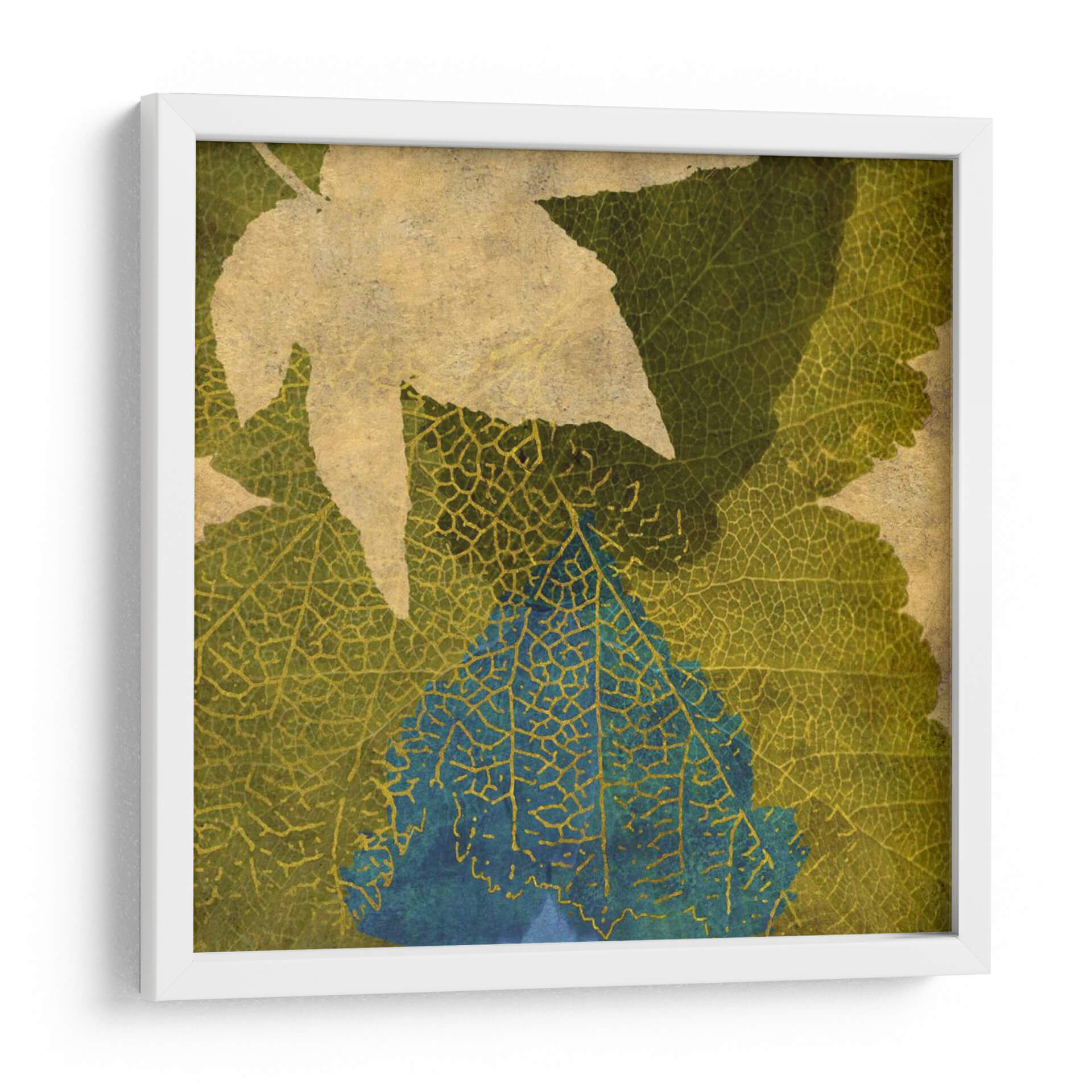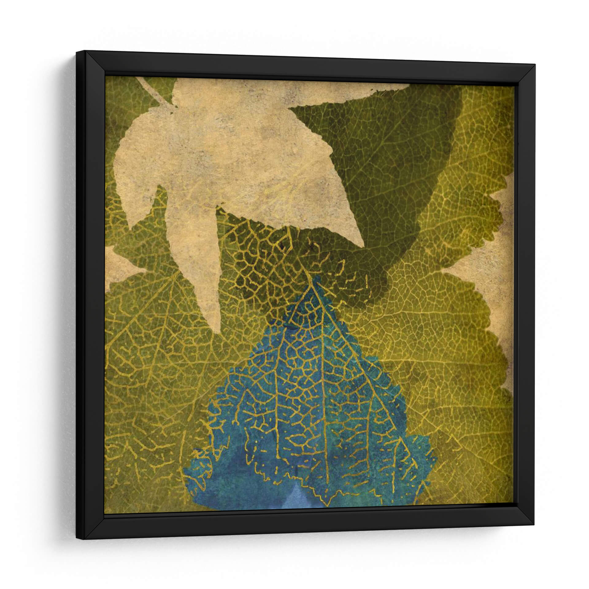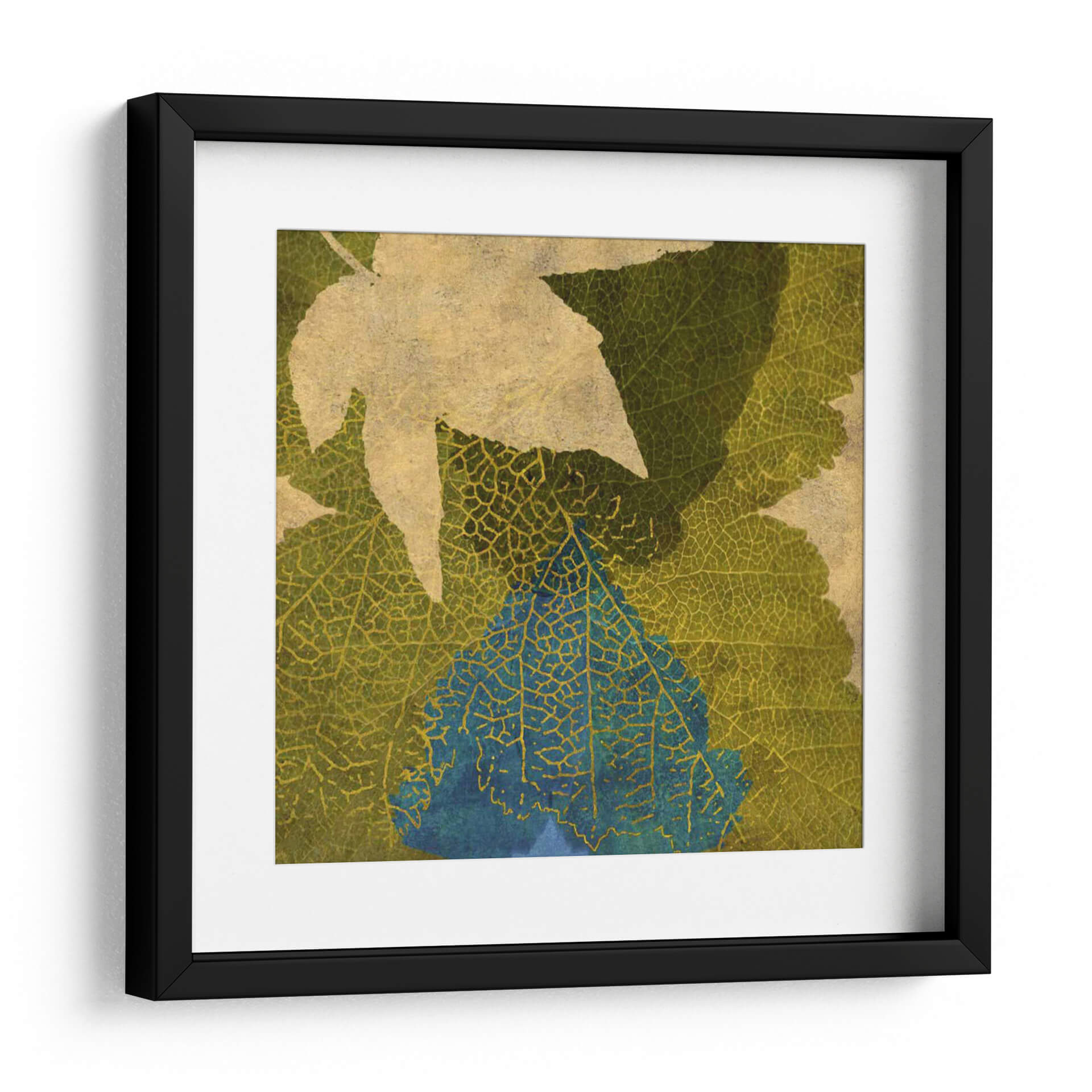 Sumérgete en la naturaleza estilizada con "Hoja Teal I" de Louise Montillio, un cuadro decorativo que captura la delicada belleza de las hojas con un toque contemporáneo. Esta obra presenta una superposición de formas foliares, donde las texturas detalladas de las venas de las hojas se entrelazan en tonos tierra, verdes musgo y un vibrante azul teal. La composición abstracta y las sutiles variaciones de color invitan a la contemplación, evocando una sensación de calma y conexión con el entorno natural. Ideal para añadir un acento de color sofisticado y orgánico a cualquier espacio, desde una sala de estar moderna hasta un rincón de lectura tranquilo en tu hogar u oficina. La técnica, que juega con la transparencia y el detalle, confiere profundidad y un aire artístico único a la pieza. "Hoja Teal I" es más que una simple decoración; es una ventana a la serenidad de la botánica reinterpretada con una sensibilidad artística excepcional, perfecta para quienes buscan un arte que hable de elegancia natural y diseño interior contemporáneo.