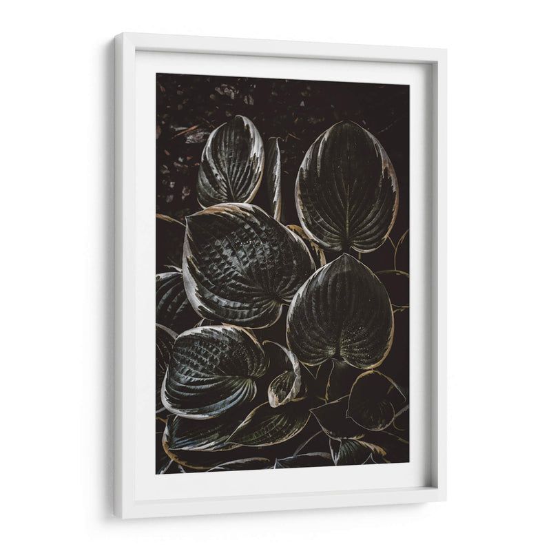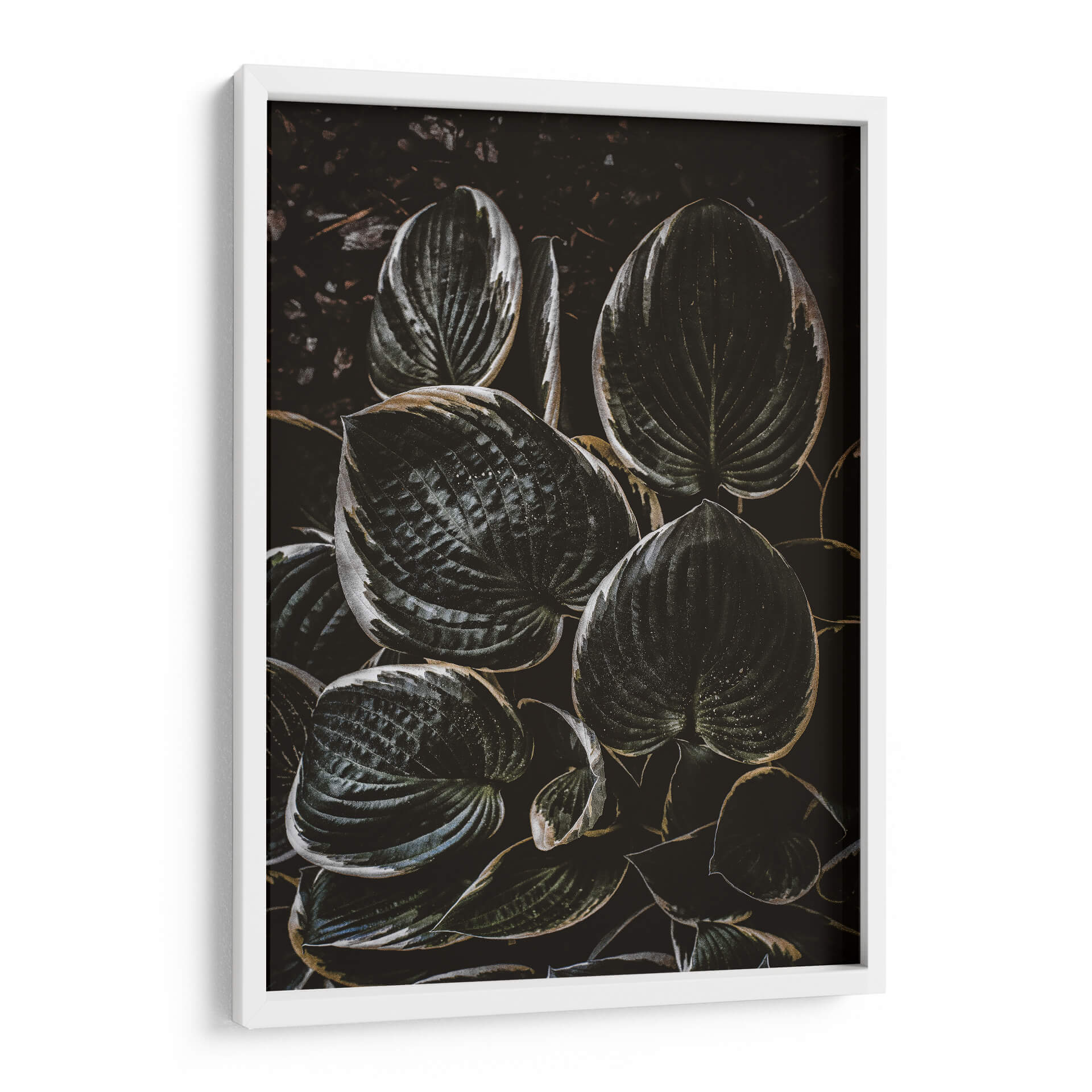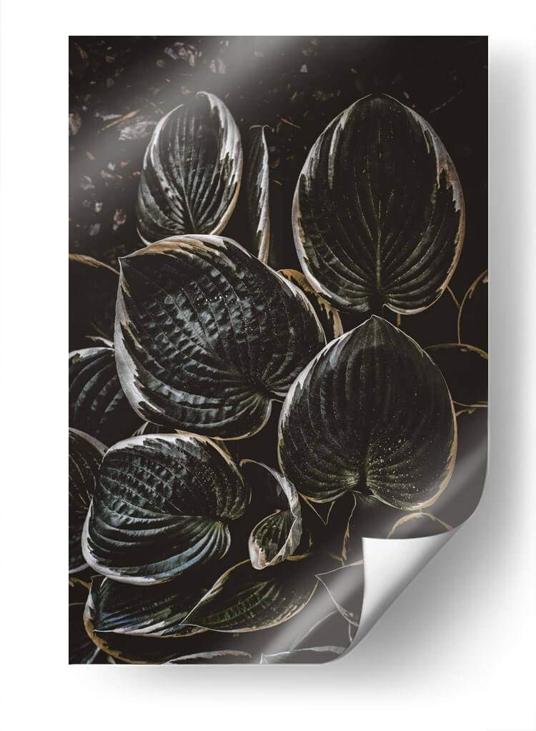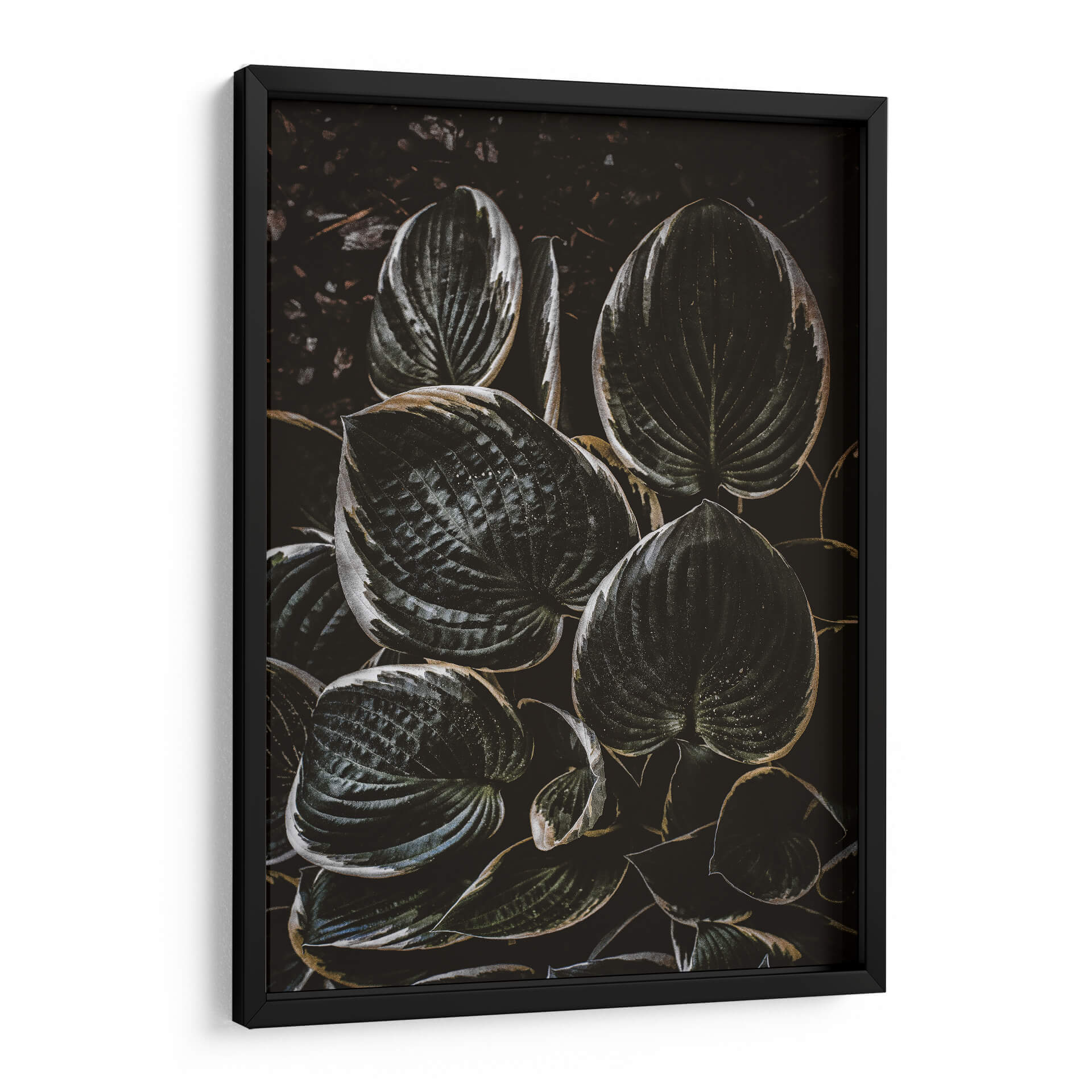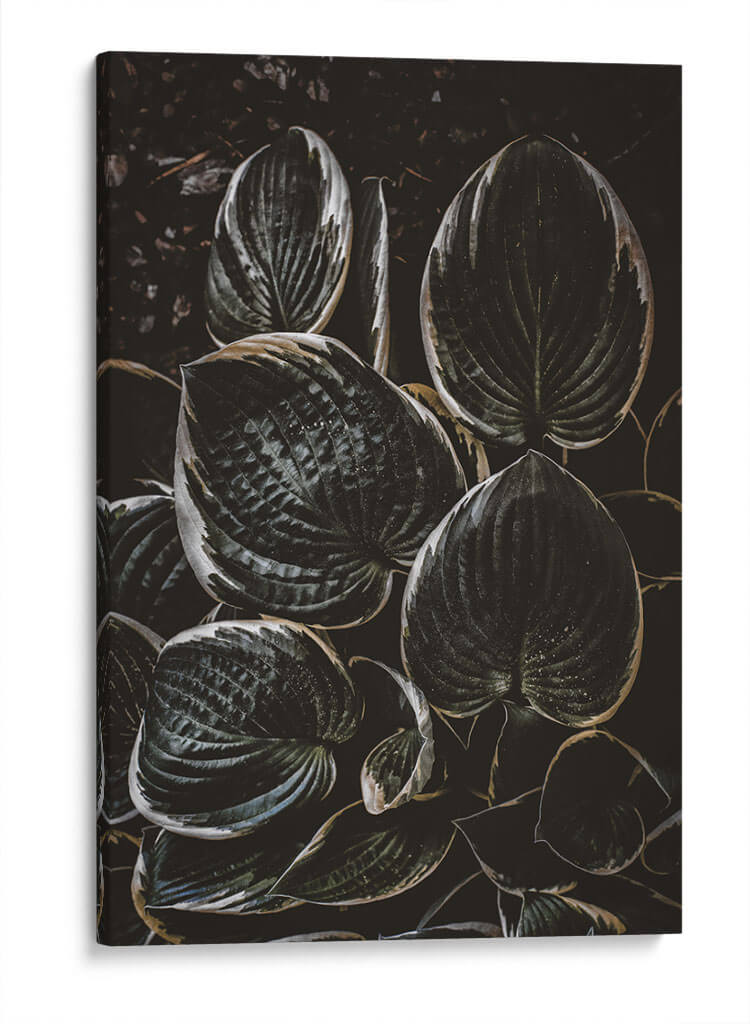 Sumérgete en la profundidad y el misterio de "Hojas Obscuras", una obra de arte que captura la esencia de la naturaleza en su estado más enigmático. Esta pieza presenta un primer plano detallado de grandes hojas de hosta, bañadas en una luz tenue que resalta sus texturas ricas y sus contornos plateados y verdes oscuros. La composición se centra en la forma y la sombra, creando una sensación de intriga y serenidad. Los tonos profundos de verde y negro se combinan con sutiles toques de gris y un brillo casi metálico, evocando una atmósfera de calma profunda y contemplación. "Hojas Obscuras" es ideal para aquellos que buscan añadir un toque de sofisticación natural y elegancia discreta a sus espacios. Su paleta de colores versátil y su temática botánica la hacen perfecta para salones modernos, dormitorios acogedores o estudios, donde puede servir como un punto focal sereno o un complemento sutil a una decoración existente. La fotografía macro de estas hojas invita a la reflexión sobre la belleza intrínseca de lo cotidiano, transformando un elemento natural en una declaración artística poderosa. Añade esta pieza a tu colección y deja que la naturaleza exprese su lado más místico en tu hogar.