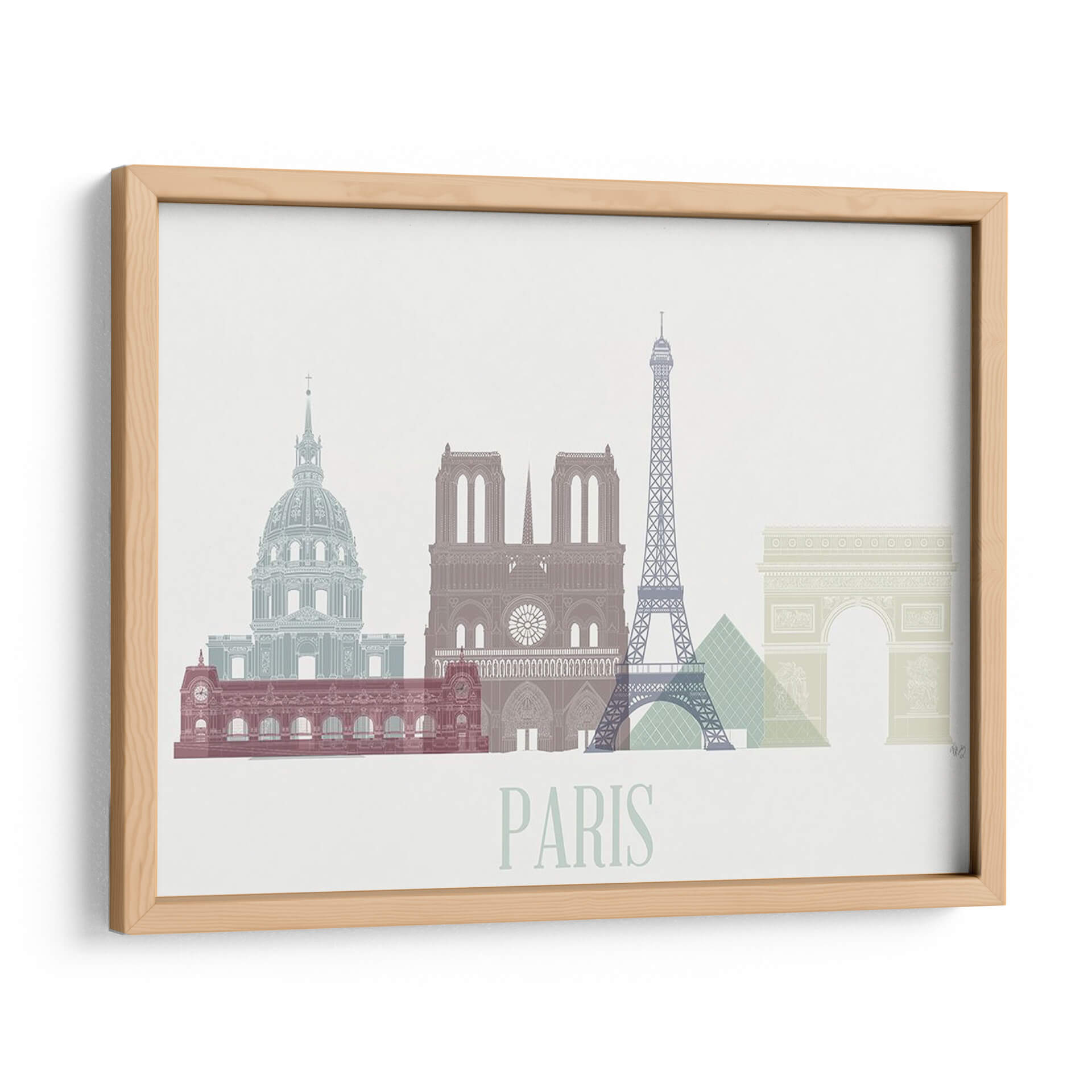 Embárcate en un viaje visual a la Ciudad de la Luz con nuestro cautivador cuadro decorativo 'Horizonte de París'. Esta obra de arte captura la esencia icónica de París a través de una paleta de colores suaves y un estilo gráfico distintivo. Desde la majestuosidad de Notre Dame y el icónico Arco del Triunfo hasta la inconfundible silueta de la Torre Eiffel y el Grand Palais, cada elemento arquitectónico está representado con un trazo elegante y moderno. La composición estilizada presenta un horizonte parisino que evoca una sensación de sofisticación y encanto atemporal. Los tonos pastel y terrosos, como el azul pálido, el malva, el verde menta y un suave ladrillo, se combinan armoniosamente sobre un fondo neutro, creando una atmósfera de serenidad y elegancia. Este cuadro decorativo es perfecto para añadir un toque de sofisticación parisina a tu sala de estar, dormitorio u oficina. Su diseño limpio y moderno lo convierte en una pieza versátil, ideal para complementar una decoración contemporánea o para infundir un aire de refinamiento en espacios más clásicos. Sorprende a los amantes de París o regálate un pedazo de esta mágica ciudad que nunca pasa de moda. Añade 'Horizonte de París' a tu colección y deja que su encanto te transporte cada día.