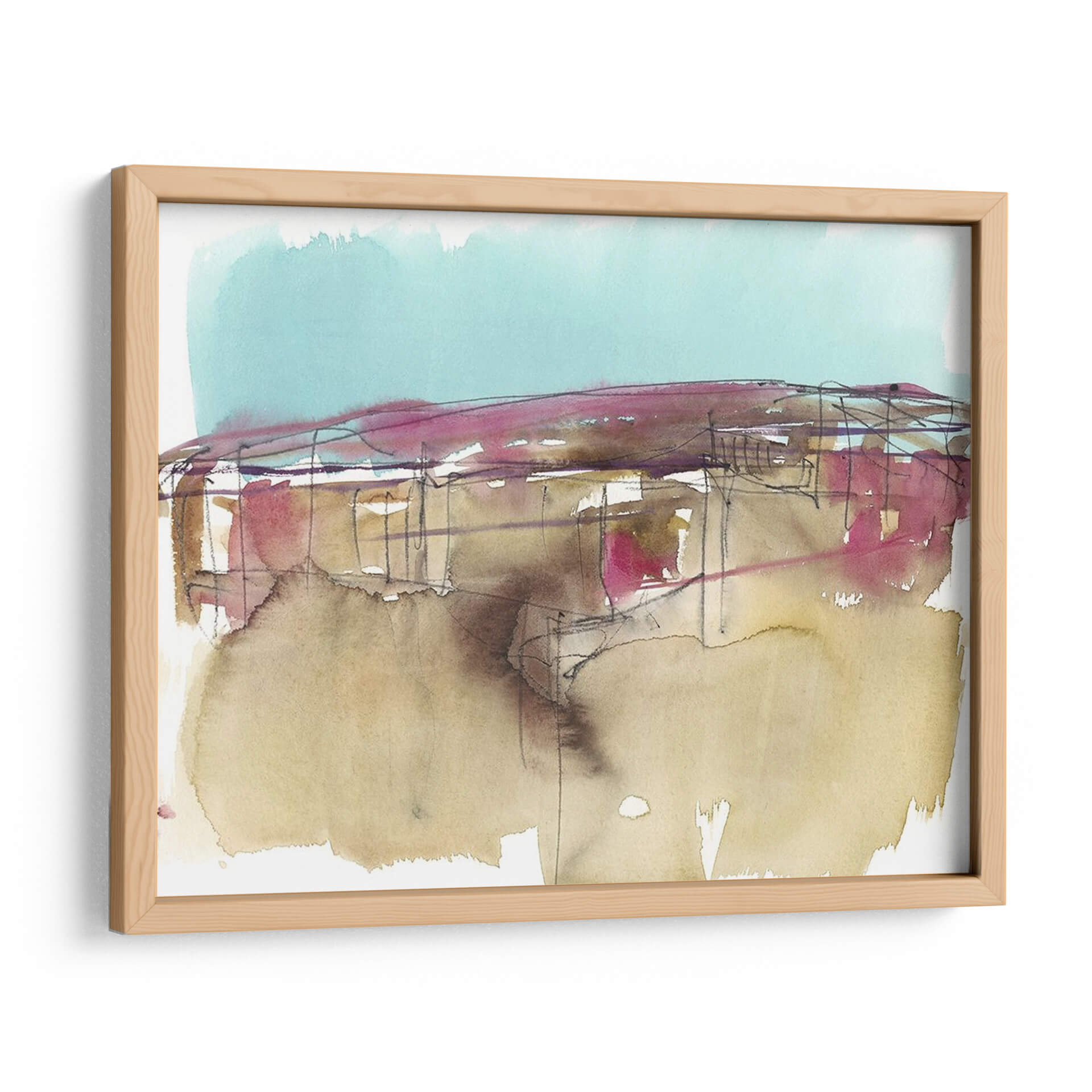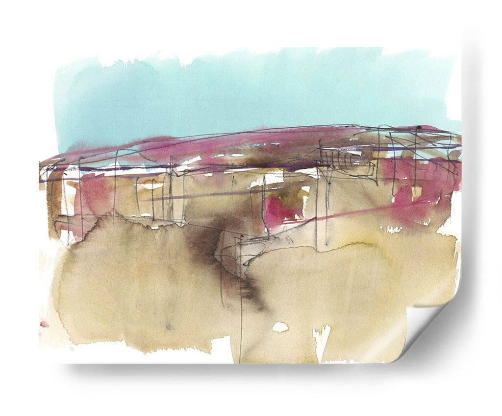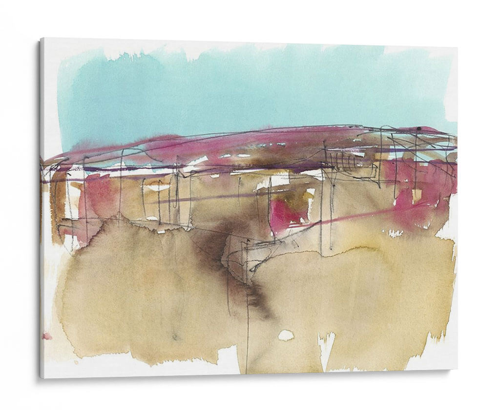 Adéntrate en la evocadora obra de Jennifer Goldberger, "Horizonte Esquemático I", un cuadro decorativo que trasciende la mera representación para invitar a la contemplación. Esta pieza abstracta se caracteriza por una paleta de colores terrosos, dominada por tonos marrones y ocres, que se ven sutilmente interrumpidos por pinceladas vibrantes de fucsia y un sereno azul cielo en la parte superior. La composición se desenvuelve con una delicada técnica de acuarela, combinada con trazos de carboncillo que aportan una estructura lineal y un toque gestual. Las formas difuminadas y las líneas esbozadas sugieren un paisaje o una estructura abstracta, abriendo un diálogo entre lo definido y lo etéreo, invitando al espectador a interpretar su propio significado. "Horizonte Esquemático I" es ideal para infundir calma y sofisticación en un espacio, funcionando como un punto focal sutil pero impactante en salones modernos, estudios o cualquier ambiente que busque un toque de arte contemporáneo reflexivo. Su versatilidad cromática permite integrarse fácilmente en diversas decoraciones, aportando profundidad y carácter.