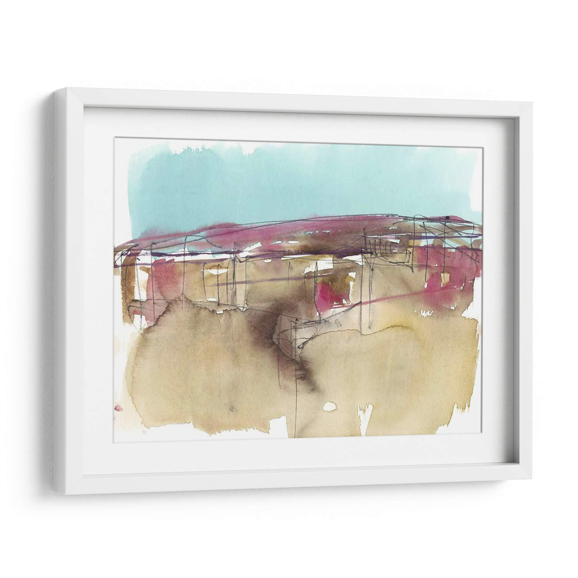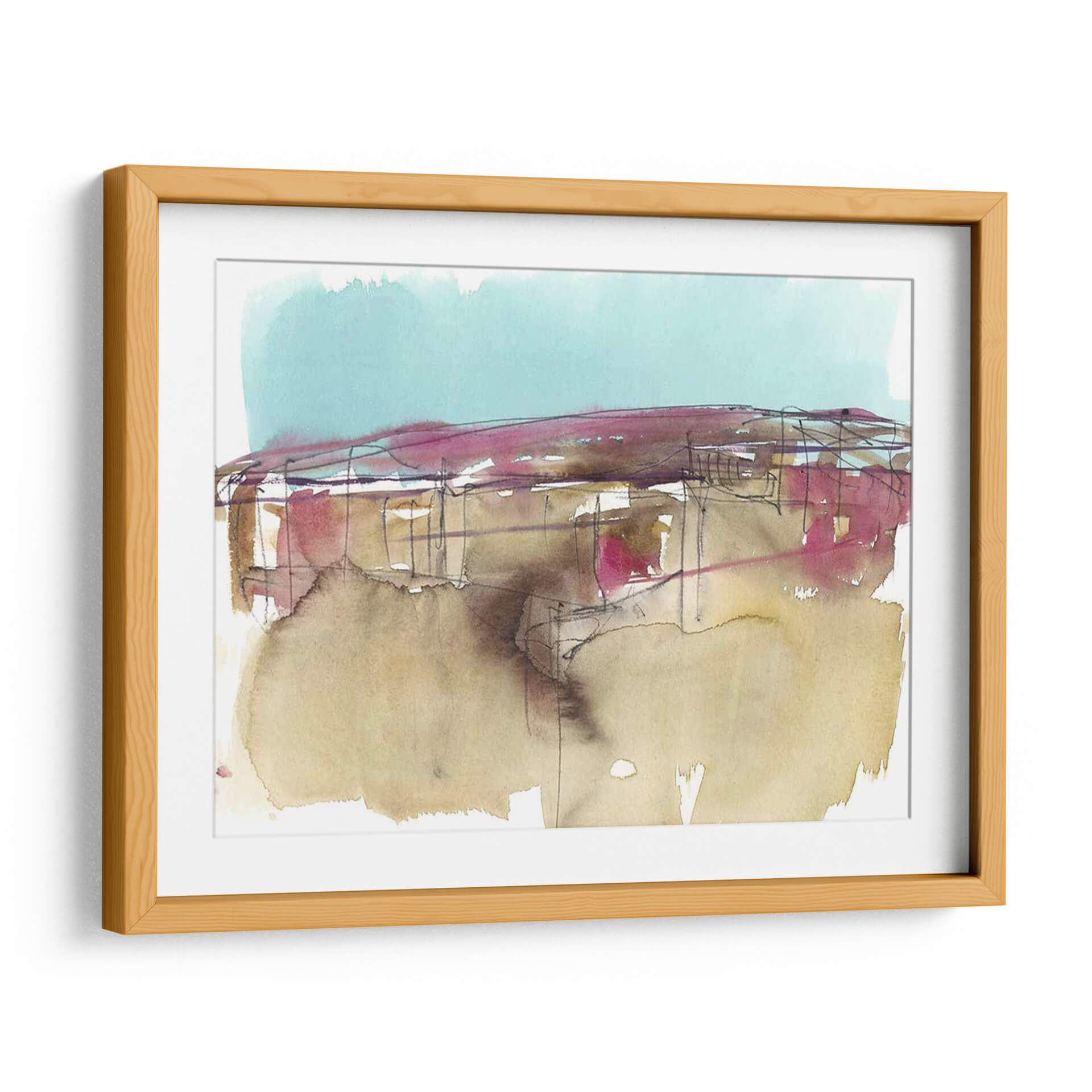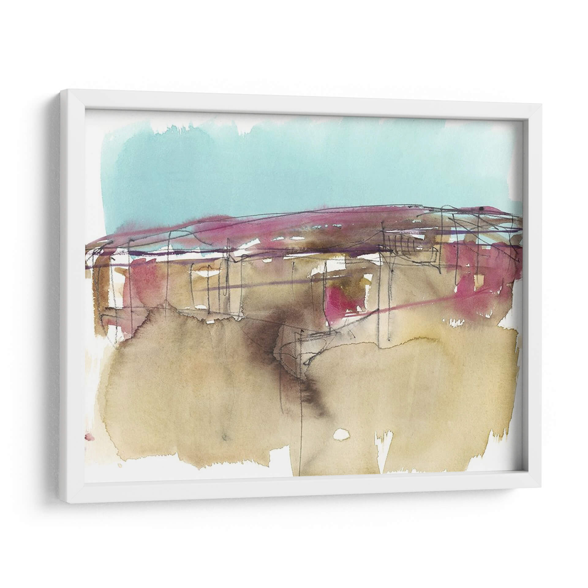 Adéntrate en la evocadora obra de Jennifer Goldberger, "Horizonte Esquemático I", un cuadro decorativo que trasciende la mera representación para invitar a la contemplación. Esta pieza abstracta se caracteriza por una paleta de colores terrosos, dominada por tonos marrones y ocres, que se ven sutilmente interrumpidos por pinceladas vibrantes de fucsia y un sereno azul cielo en la parte superior. La composición se desenvuelve con una delicada técnica de acuarela, combinada con trazos de carboncillo que aportan una estructura lineal y un toque gestual. Las formas difuminadas y las líneas esbozadas sugieren un paisaje o una estructura abstracta, abriendo un diálogo entre lo definido y lo etéreo, invitando al espectador a interpretar su propio significado. "Horizonte Esquemático I" es ideal para infundir calma y sofisticación en un espacio, funcionando como un punto focal sutil pero impactante en salones modernos, estudios o cualquier ambiente que busque un toque de arte contemporáneo reflexivo. Su versatilidad cromática permite integrarse fácilmente en diversas decoraciones, aportando profundidad y carácter.