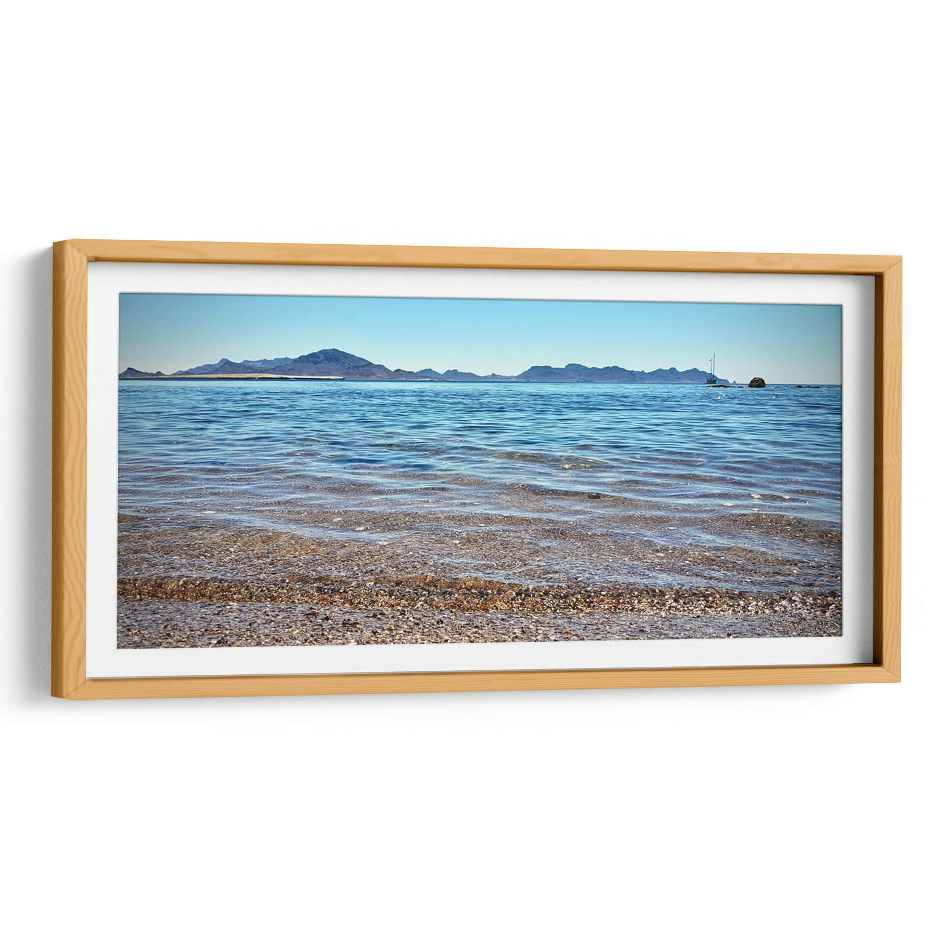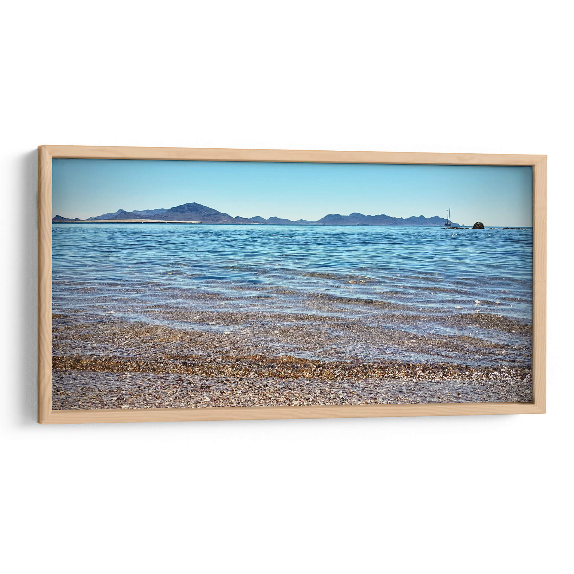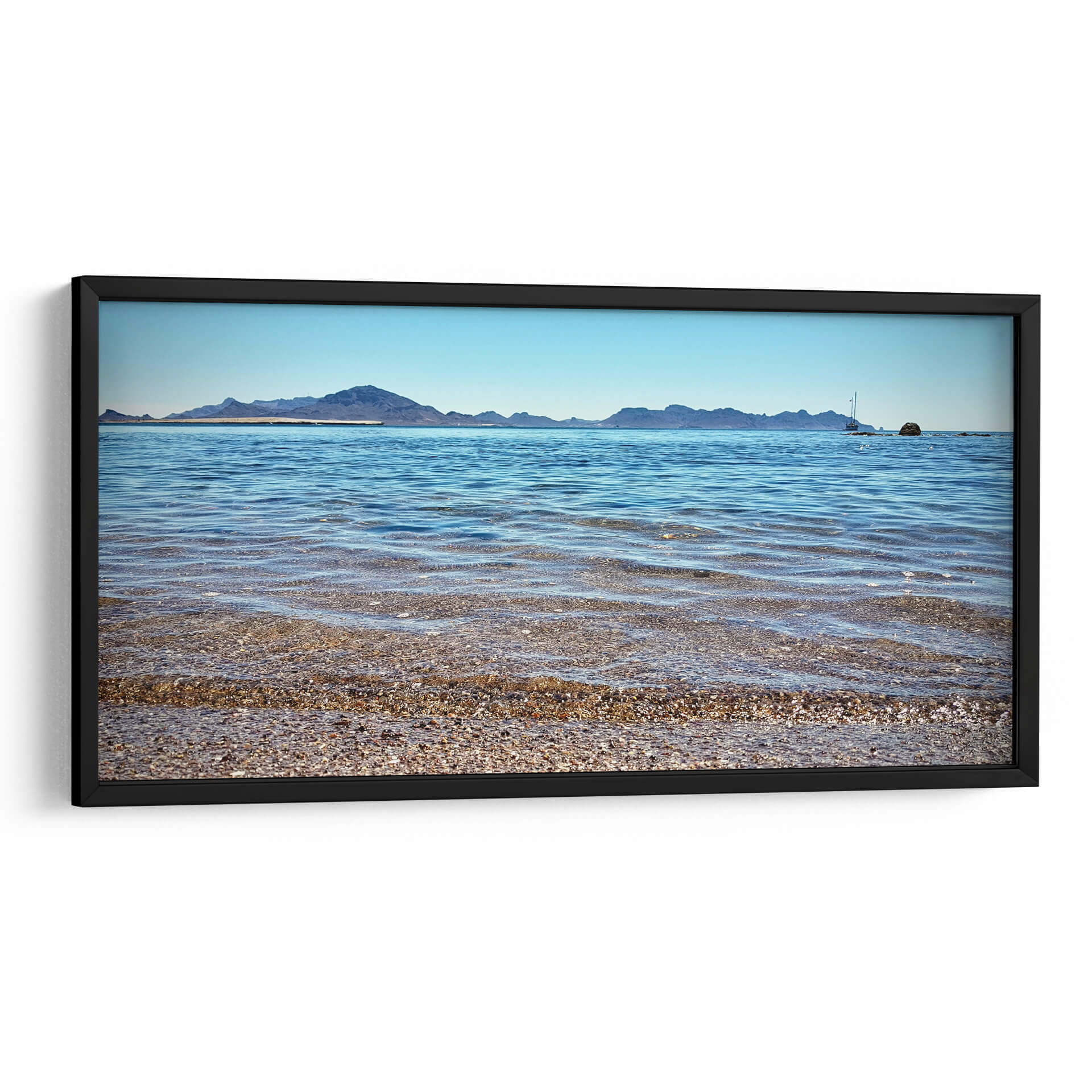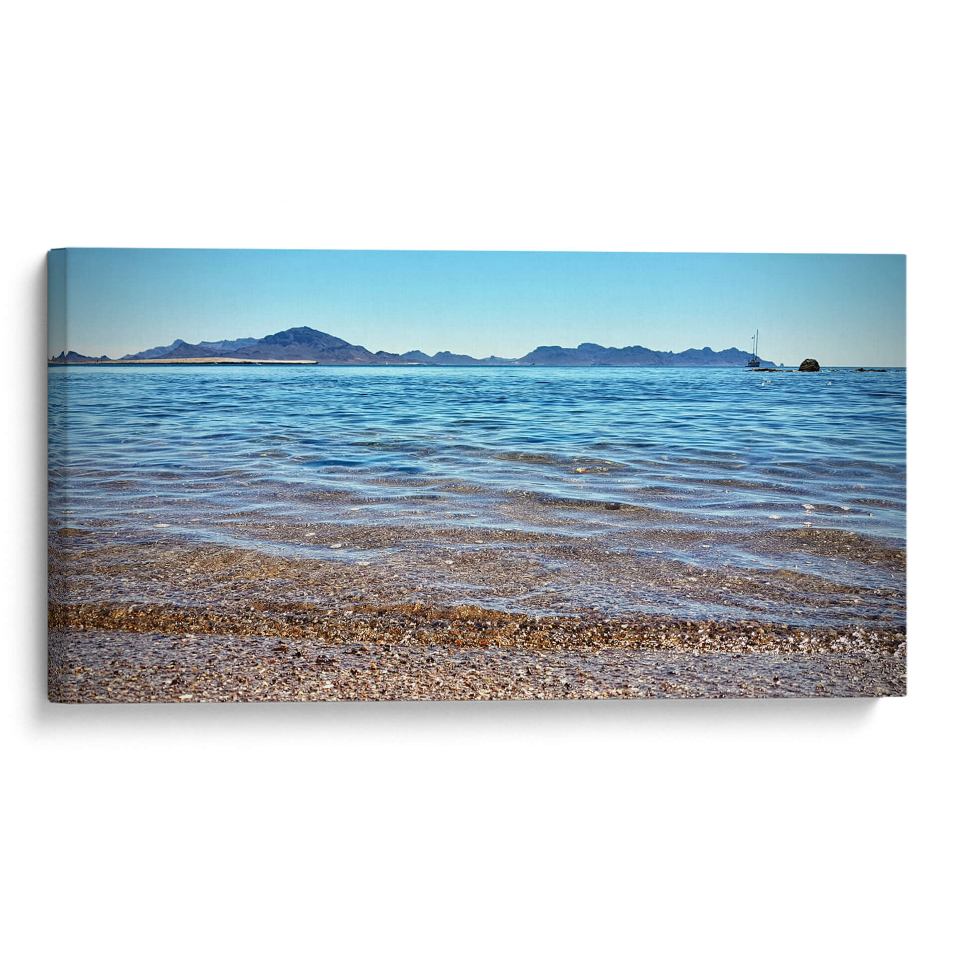 Sumérgete en la serenidad y la inmensidad del mar con nuestro cuadro decorativo "Horizontes Cristalinos". Esta obra de arte captura la esencia de un paisaje costero idílico, donde el azul profundo del océano se encuentra con un cielo despejado, creando una atmósfera de paz y tranquilidad. La composición visual, con sus capas de agua transparente que revelan un lecho de guijarros y conchas, invita a la contemplación. Las suaves olas que rompen en la orilla añaden un toque dinámico pero calmado a la escena. Al fondo, una silueta de montañas se alza majestuosa contra el horizonte, y un velero solitario navega serenamente, evocando sensaciones de aventura y libertad. La paleta de colores, dominada por azules celestes y marinos, con sutiles tonos tierra en la costa, es perfecta para cualquier espacio que busque un oasis de calma. Este cuadro decorativo es ideal para salones, dormitorios o estudios, aportando una conexión directa con la naturaleza y una sensación de amplitud. "Horizontes Cristalinos" no es solo una pieza decorativa, sino una ventana a un mundo de paz y belleza natural, ideal para transformar tu hogar en un refugio de serenidad y estilo contemporáneo. Su estilo fotográfico y realista, con una perspectiva que abarca el vasto paisaje, la convierte en una adición impactante a cualquier colección de arte de pared.