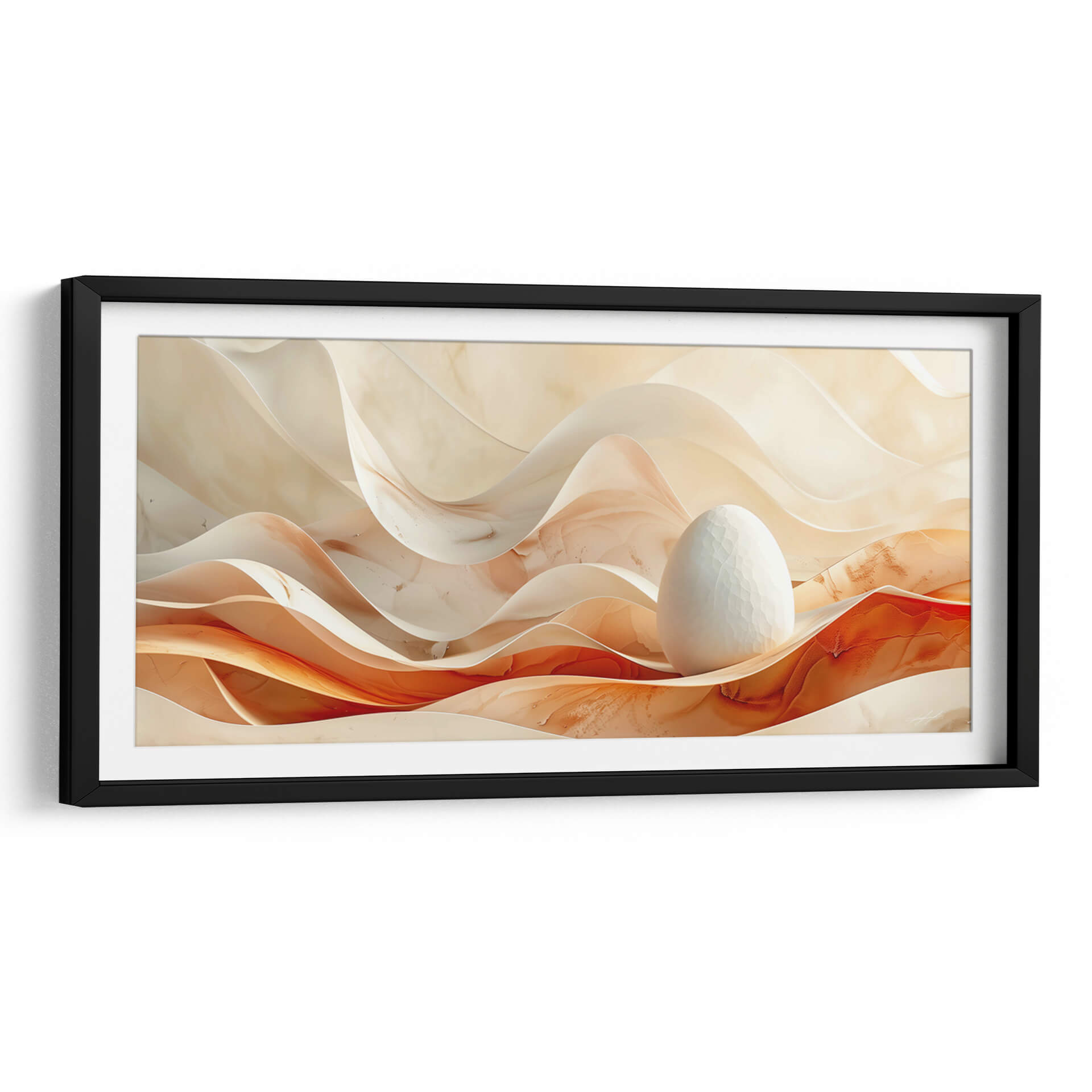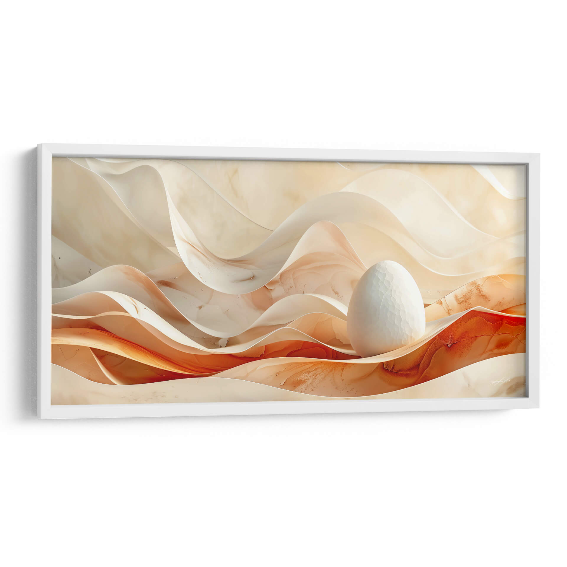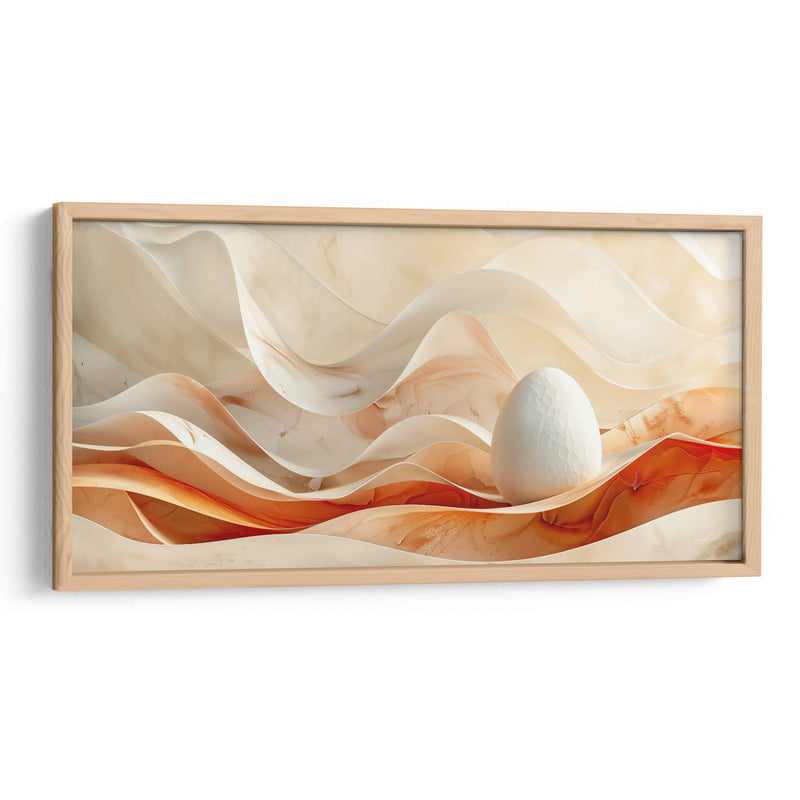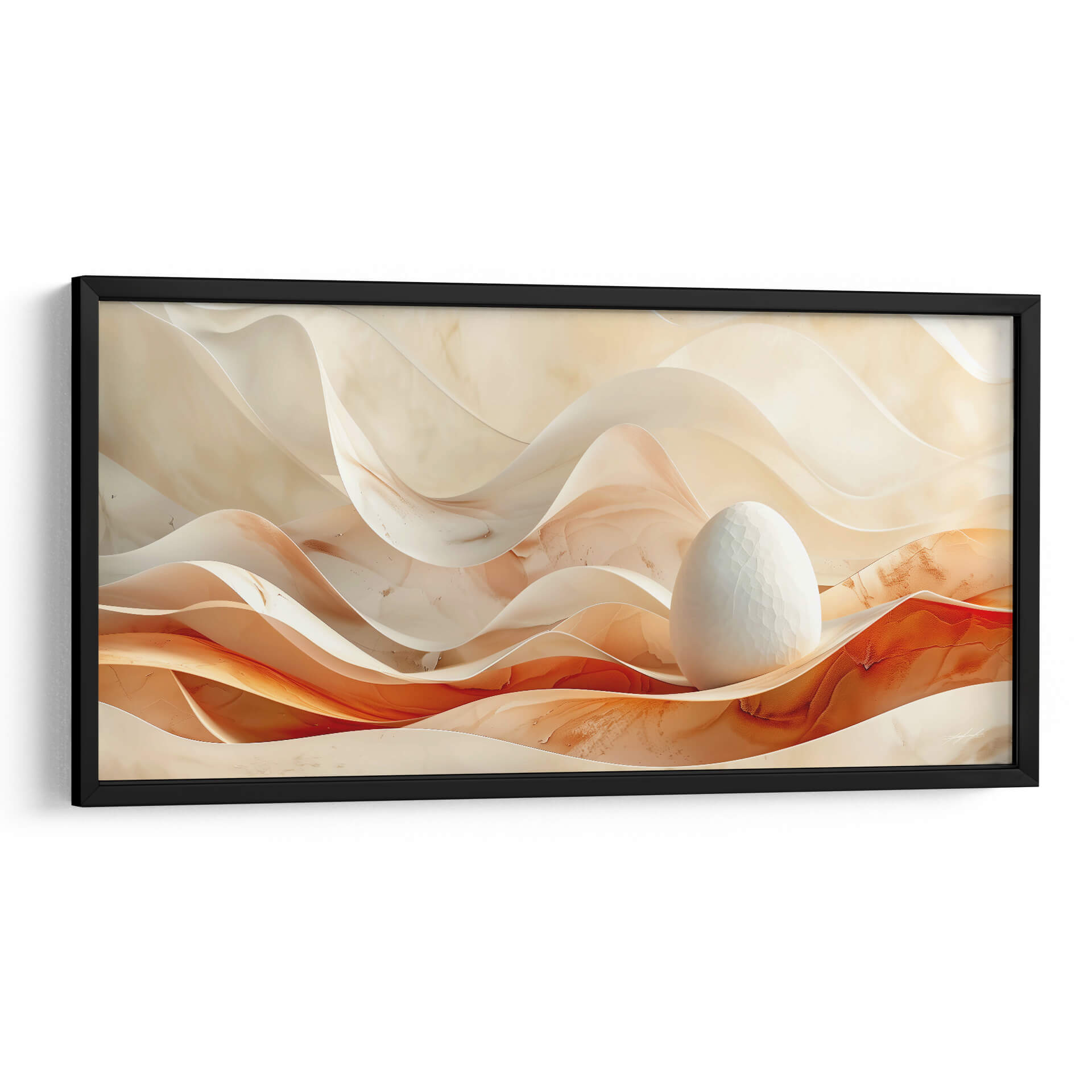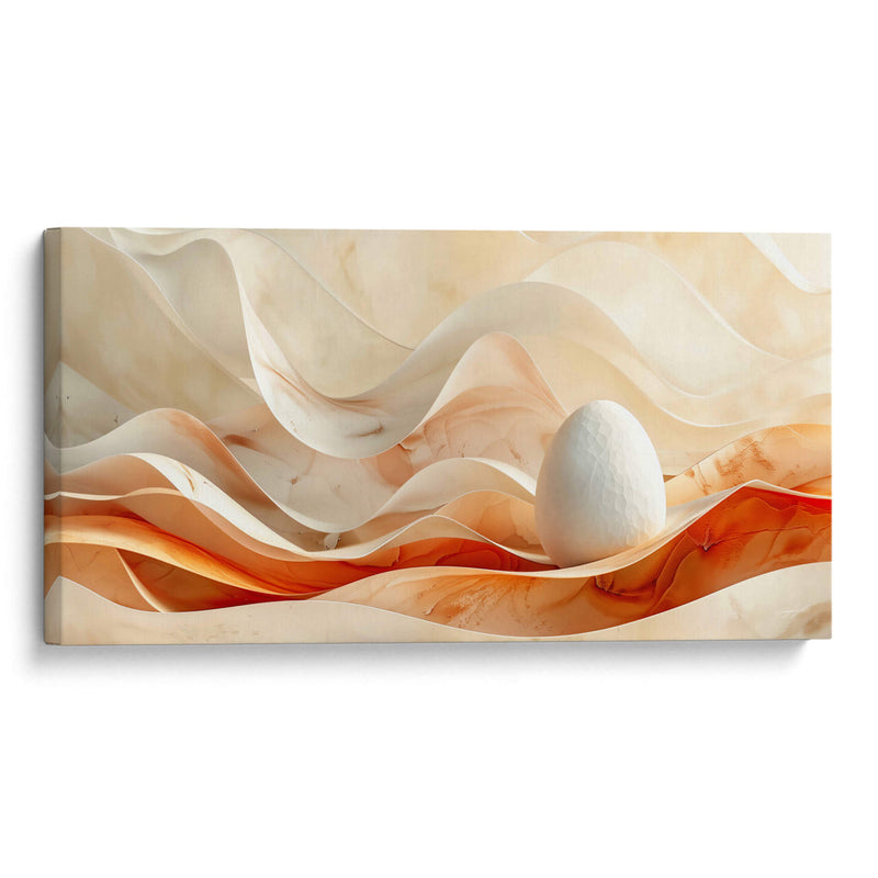 Sumérgete en la serenidad y la elegancia abstracta de "Huevo Abstracto - Mármol - 1", una obra de arte digital que redefine la estética contemporánea. Esta pieza cautiva con sus fluidas formas orgánicas y una paleta de colores cálidos, dominada por tonos marfil, beige y sutiles toques de naranja quemado, evocando una sensación de calma y sofisticación. La composición, centrada en una figura esférica texturizada que recuerda a un huevo o una perla, se balancea sobre capas ondulantes que sugieren dunas de arena o telas etéreas, creando un juego visual de luz y sombra. El estilo abstracto minimalista de DeLaVegaGaming invita a la contemplación, permitiendo que cada espectador interprete su propio significado. Este cuadro decorativo es ideal para espacios que buscan un punto focal de sutileza y distinción, como un salón moderno, una oficina tranquila o un dormitorio que aspire a la paz. Su diseño versátil y su atmósfera de serenidad lo convierten en una adición perfecta para aquellos que aprecian el arte que combina la belleza conceptual con una ejecución visual impecable, aportando un toque de refinamiento orgánico a cualquier ambiente.