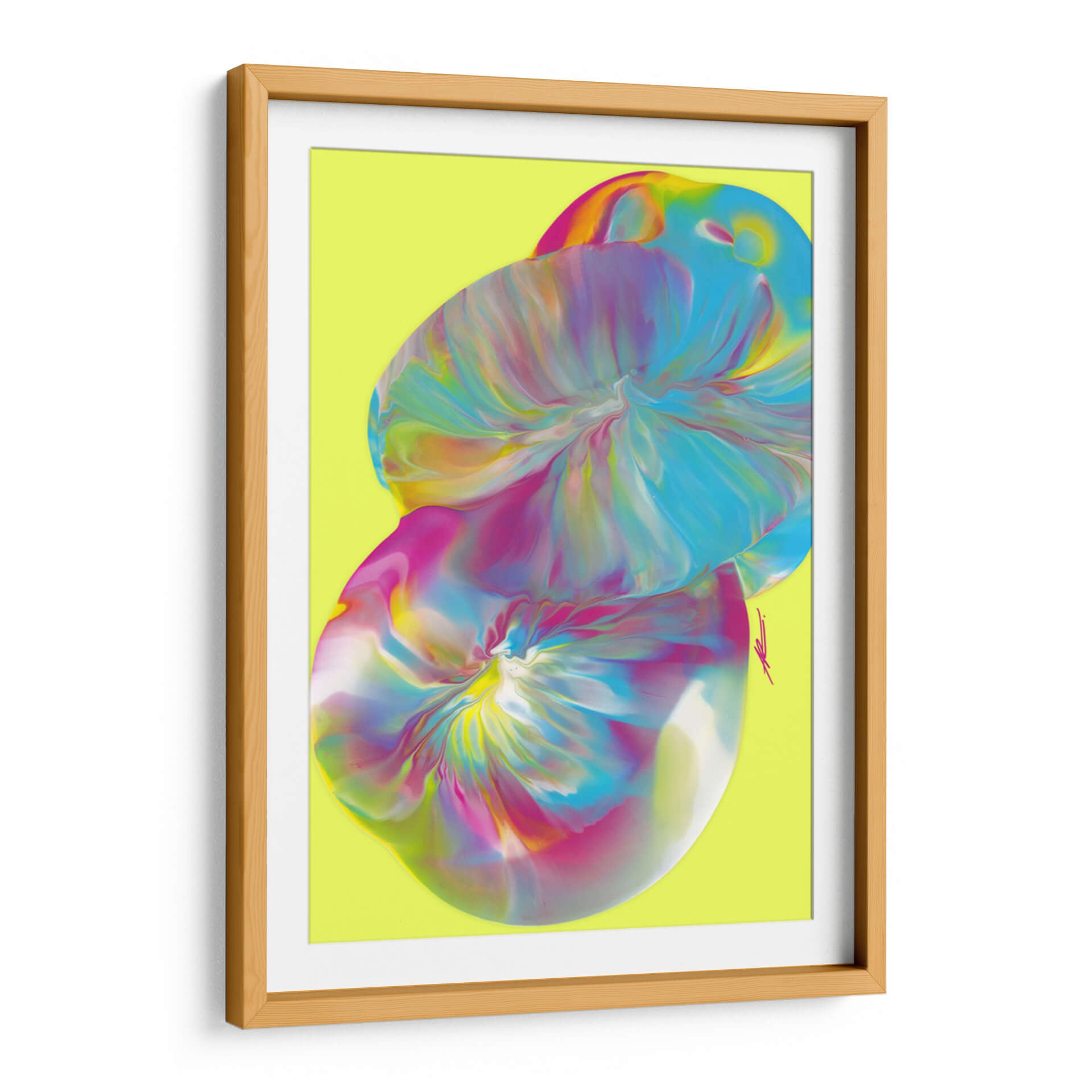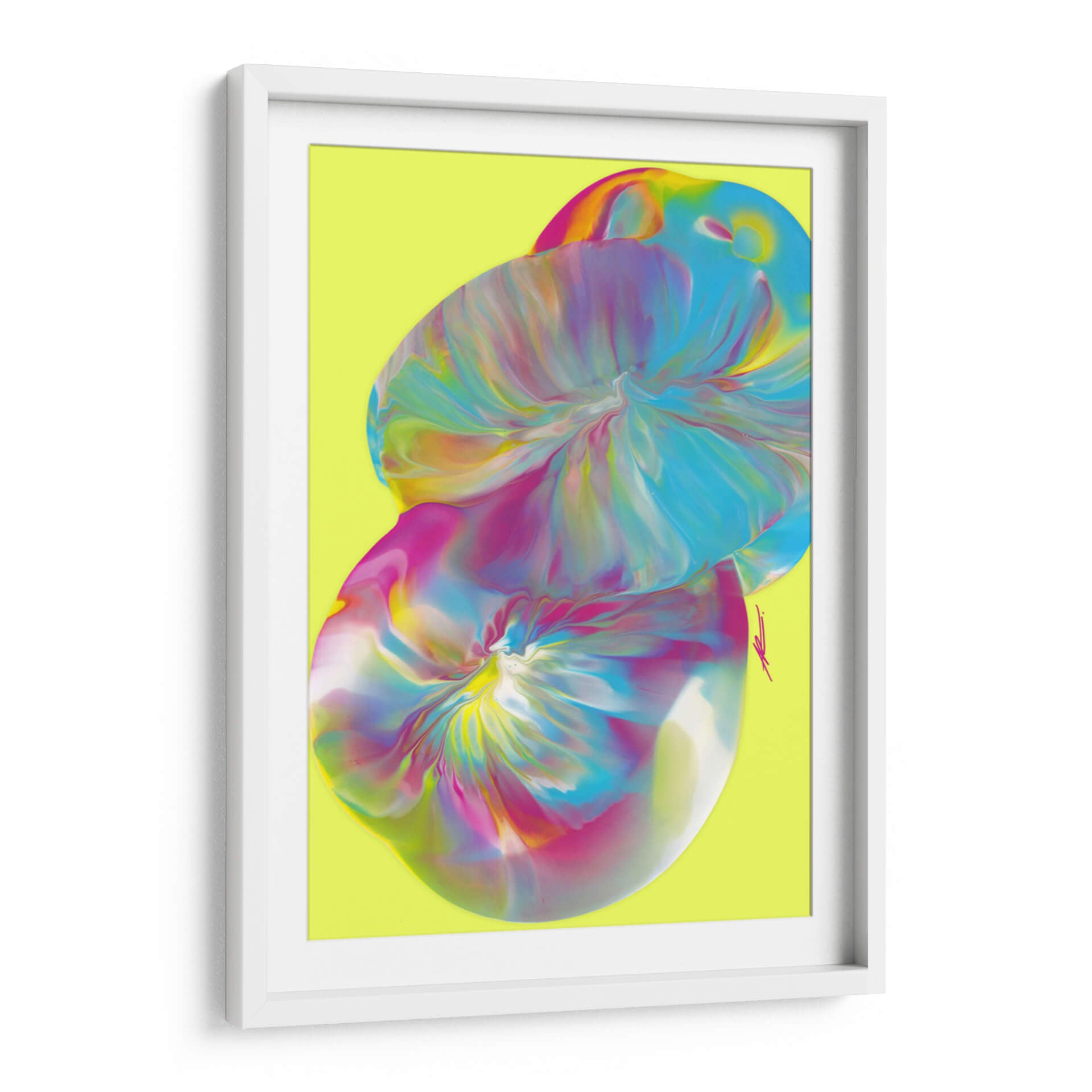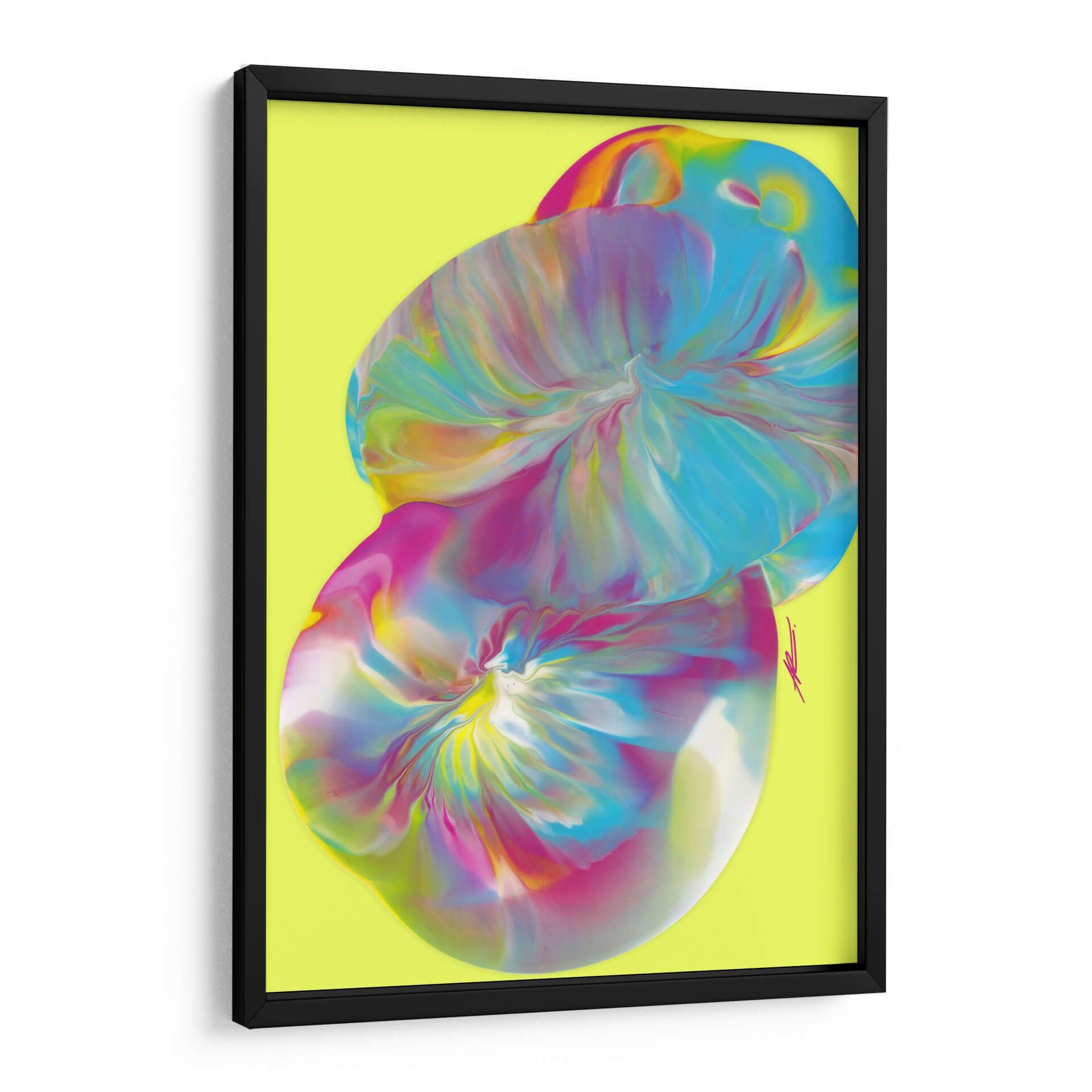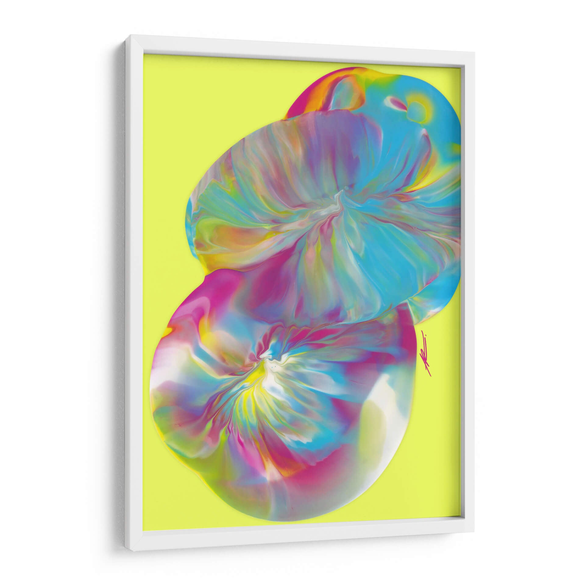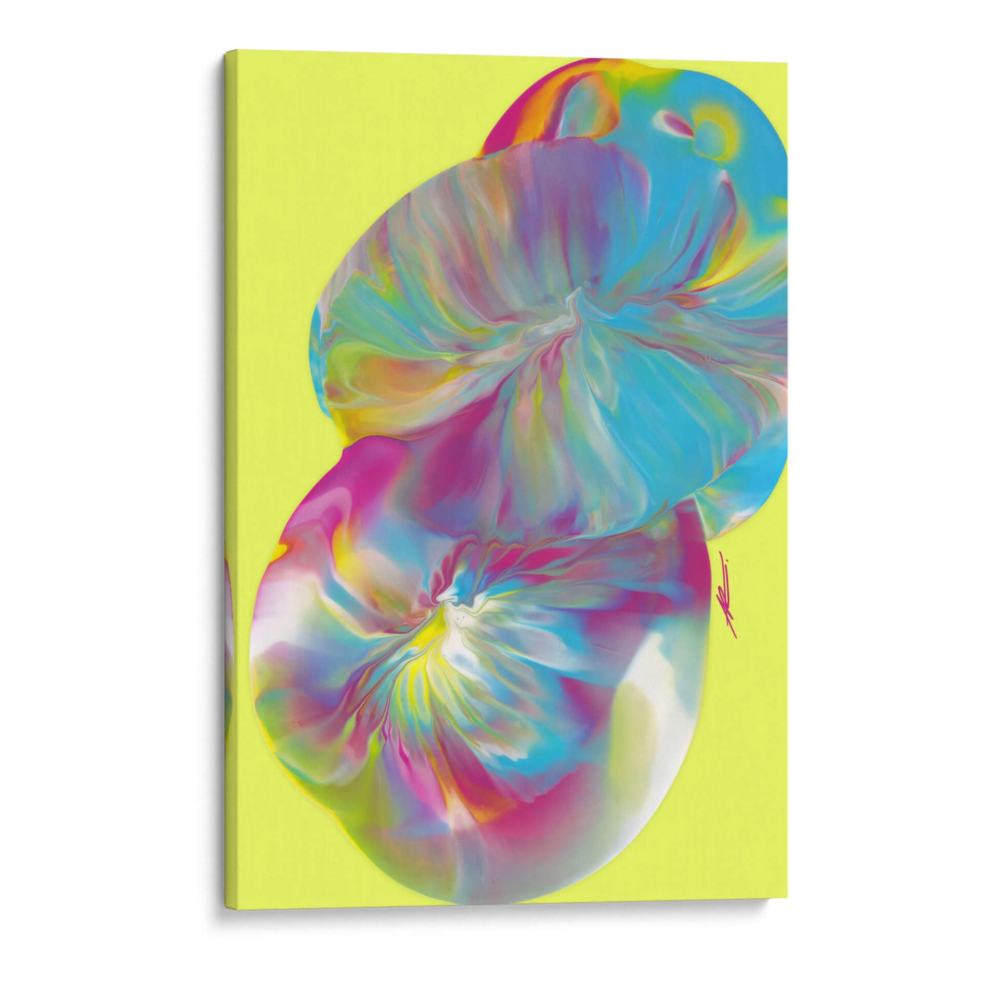 Sumérgete en la vibrante explosión de color y forma con "Huevos de Pascua", una cautivadora obra de arte abstracto de Alicia Rodríguez. Esta pieza evoca una sensación de dinamismo y alegría, con sus remolinos fluidos de tonos vibrantes que parecen danzar sobre un fondo luminoso de color lima. El estilo de vertido (pour painting) utilizado crea texturas visuales fascinantes y transiciones de color suaves, invitando al espectador a explorar las profundidades de su composición. Los azules eléctricos, rosas intensos y toques de amarillo y blanco se entrelazan de manera orgánica, creando un efecto etéreo y moderno. Este cuadro decorativo es perfecto para inyectar energía y sofisticación en cualquier espacio, ya sea una sala de estar contemporánea, un estudio creativo o una oficina que busque inspiración. "Huevos de Pascua" no es solo una obra de arte, es una experiencia visual que estimula la imaginación y aporta un toque de audacia y originalidad a tu decoración. Su estética única y su energía positiva lo convierten en un punto focal ideal para transformar ambientes y reflejar una personalidad vibrante.