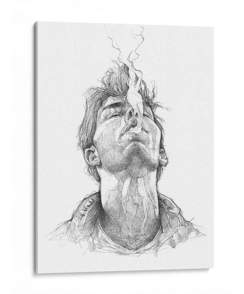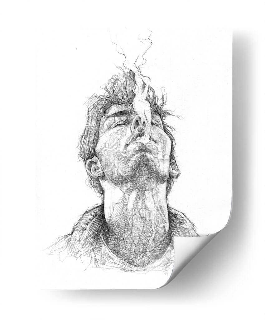 Sumérgete en la profundidad emocional de "Img436", una obra maestra del artista Efraín Malo que captura un momento de introspección y trascendencia. Este exquisito cuadro decorativo, realizado en un estilo de dibujo a lápiz con un detallado sombreado, presenta un primer plano de un hombre con los ojos cerrados, exhalando humo que se eleva en volutas etéreas. La técnica de Efraín Malo resalta la textura de la piel y la intensidad de la expresión, creando una atmósfera de calma melancólica y profunda reflexión. La paleta de colores monocromática, dominada por el blanco y negro del grafito, otorga a la pieza una elegancia atemporal y una versatilidad excepcional para integrarse en diversos estilos decorativos, desde el moderno hasta el contemporáneo o minimalista. Este cuadro es ideal para añadir un toque de sofisticación y misterio a tu sala de estar, estudio u oficina, invitando a la contemplación y al diálogo. Su composición centrada y la fuerza de la figura principal lo convierten en un punto focal cautivador que resonará con aquellos que aprecian el arte figurativo con una carga emocional significativa. "Img436" no es solo una imagen, es una invitación a explorar la complejidad de las emociones humanas a través del arte.